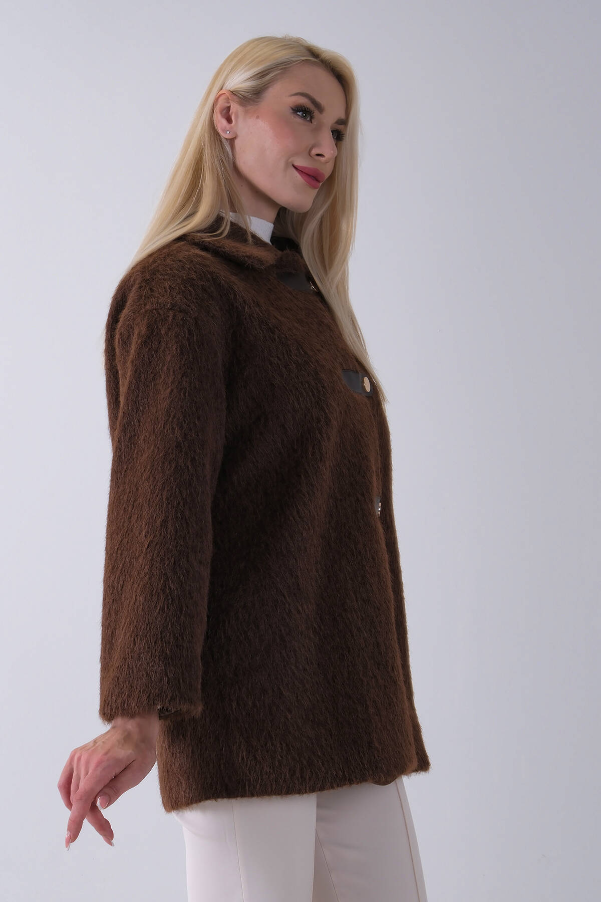 Kahve Yarım Balıkçı Yaka 4 Düğmeli Kaşe Yün Ceket 5307121.05