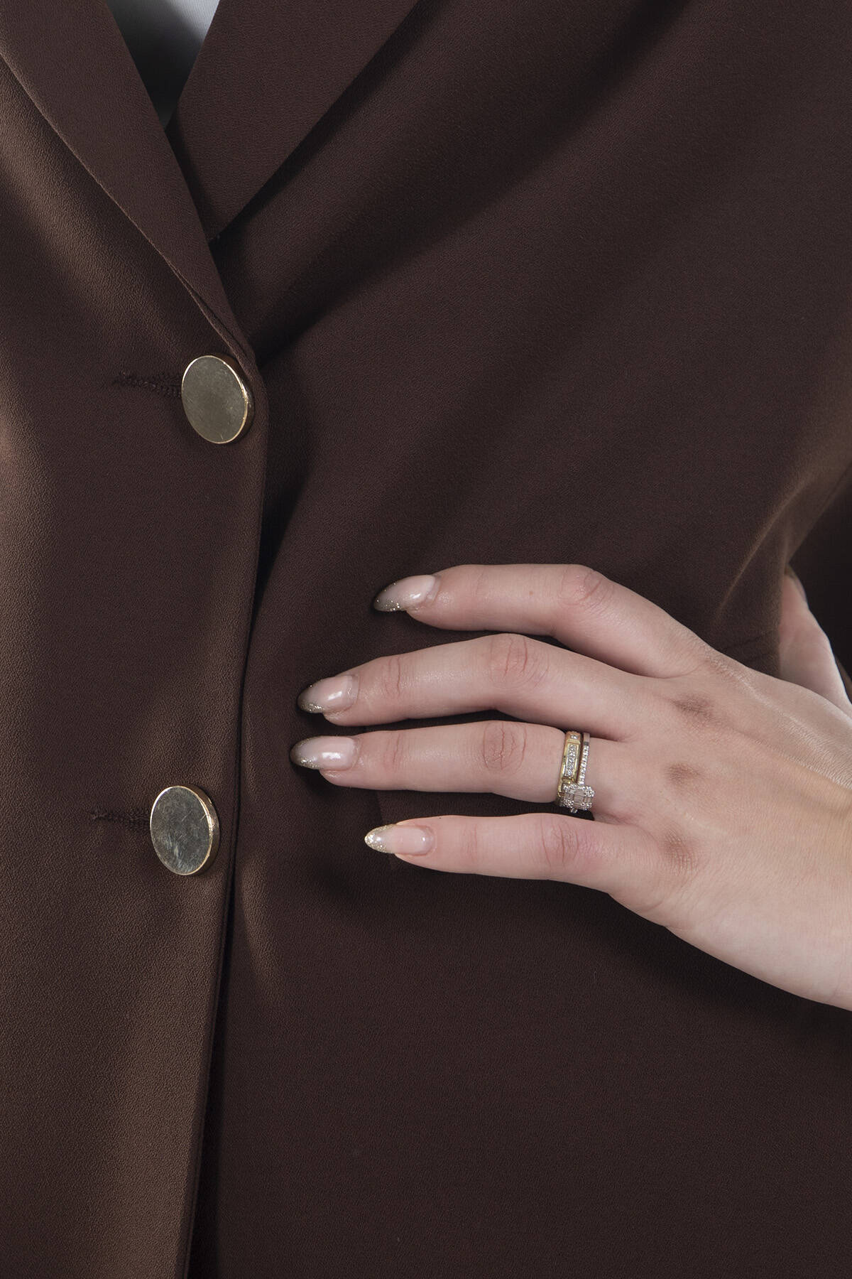Yaka ve omuz yapısıyla şık bir duruş sağlar
