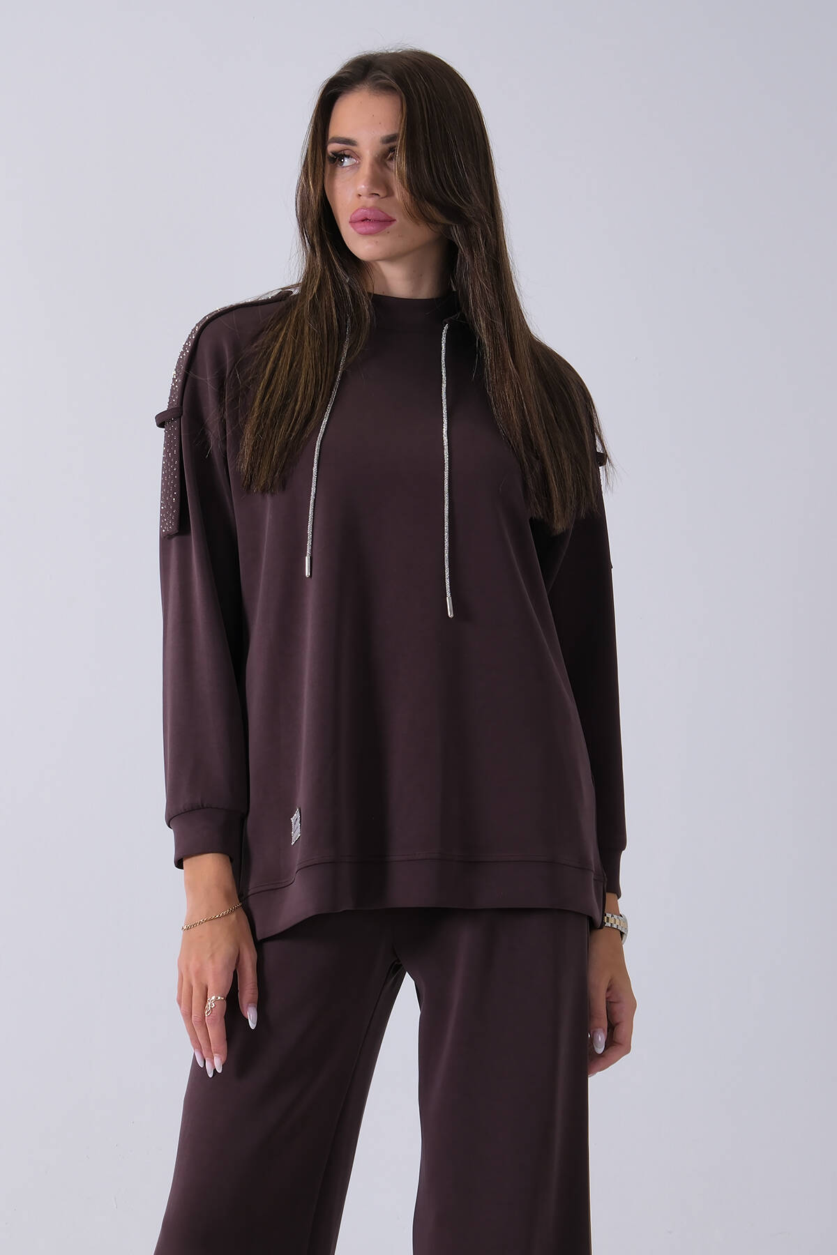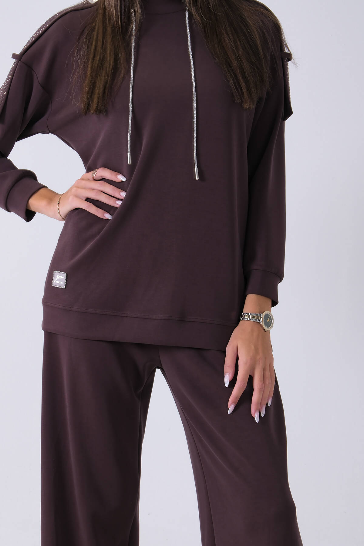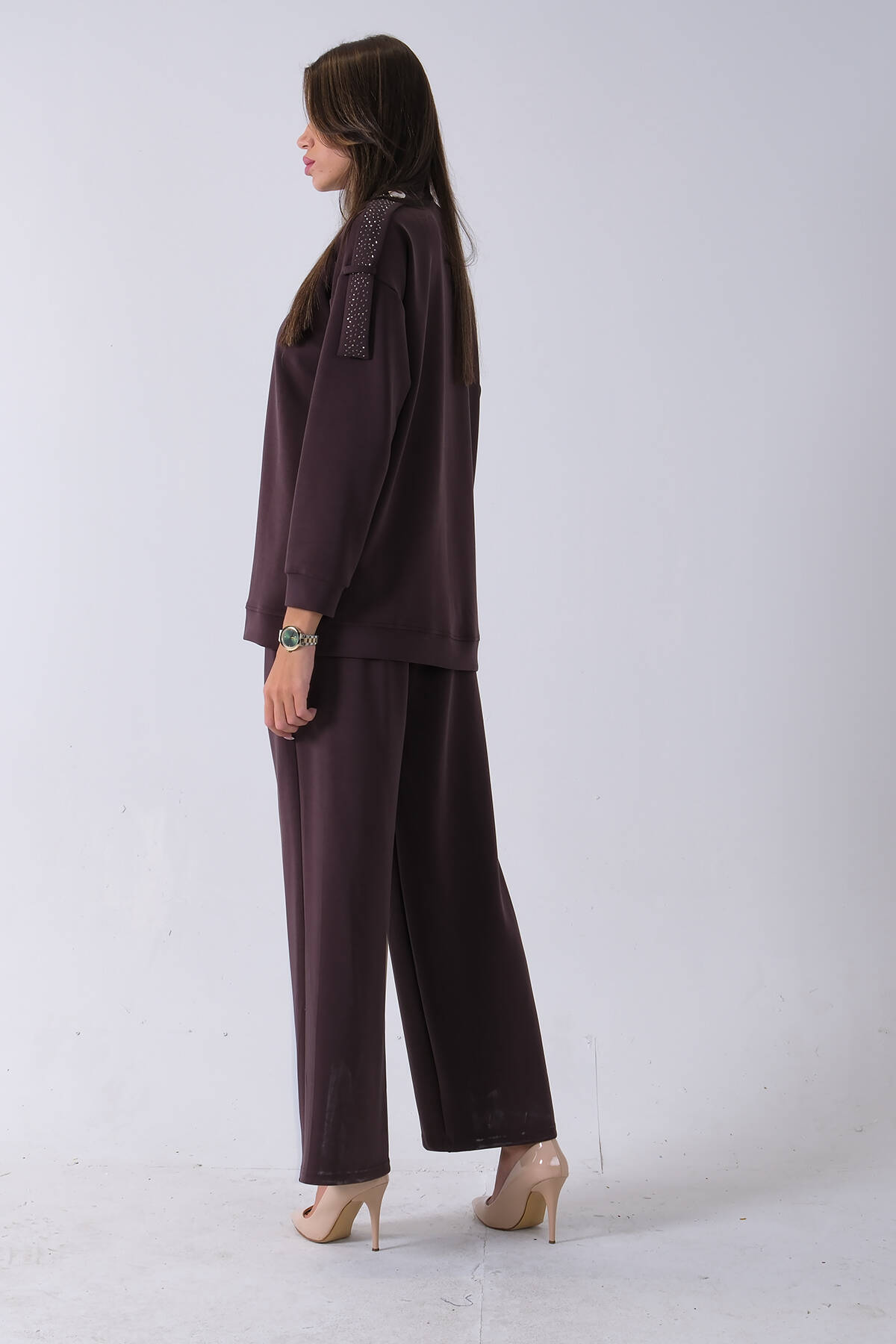 Kahve Omuz Apolet Detaylı Yakası İpli Tunik Pantolonlu Takım 4577281.05