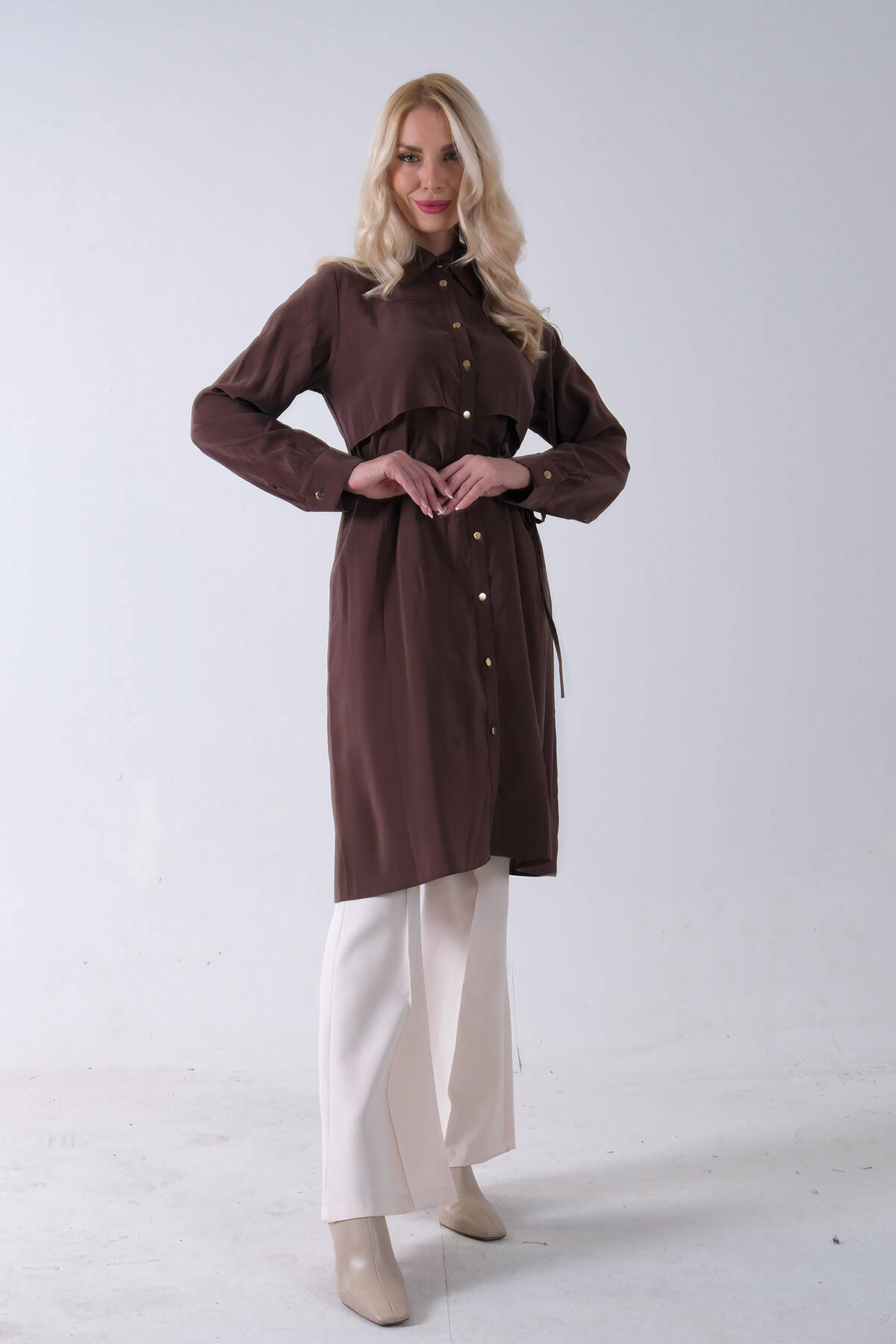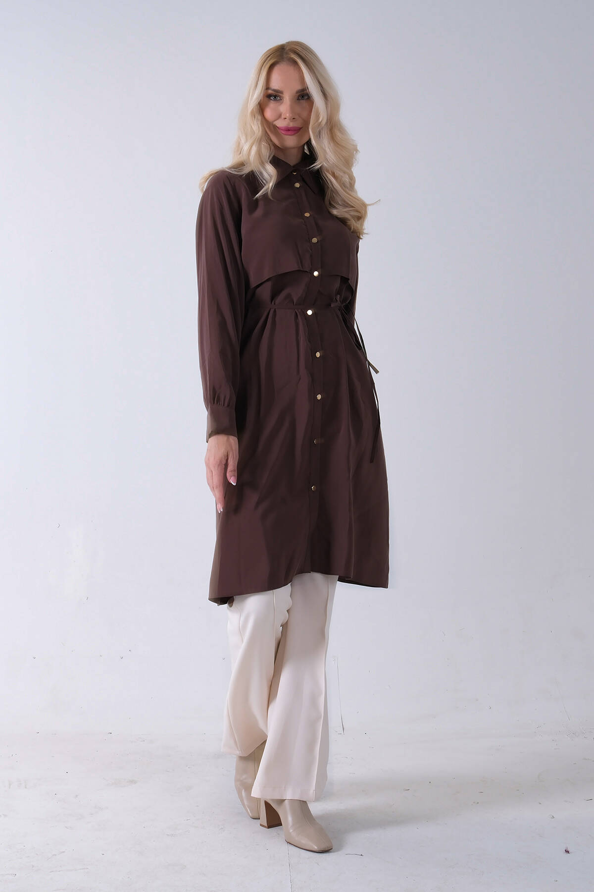 Ekru Üzeri Taş Detaylı Gizli Düğmeli Tunik 44510646.147