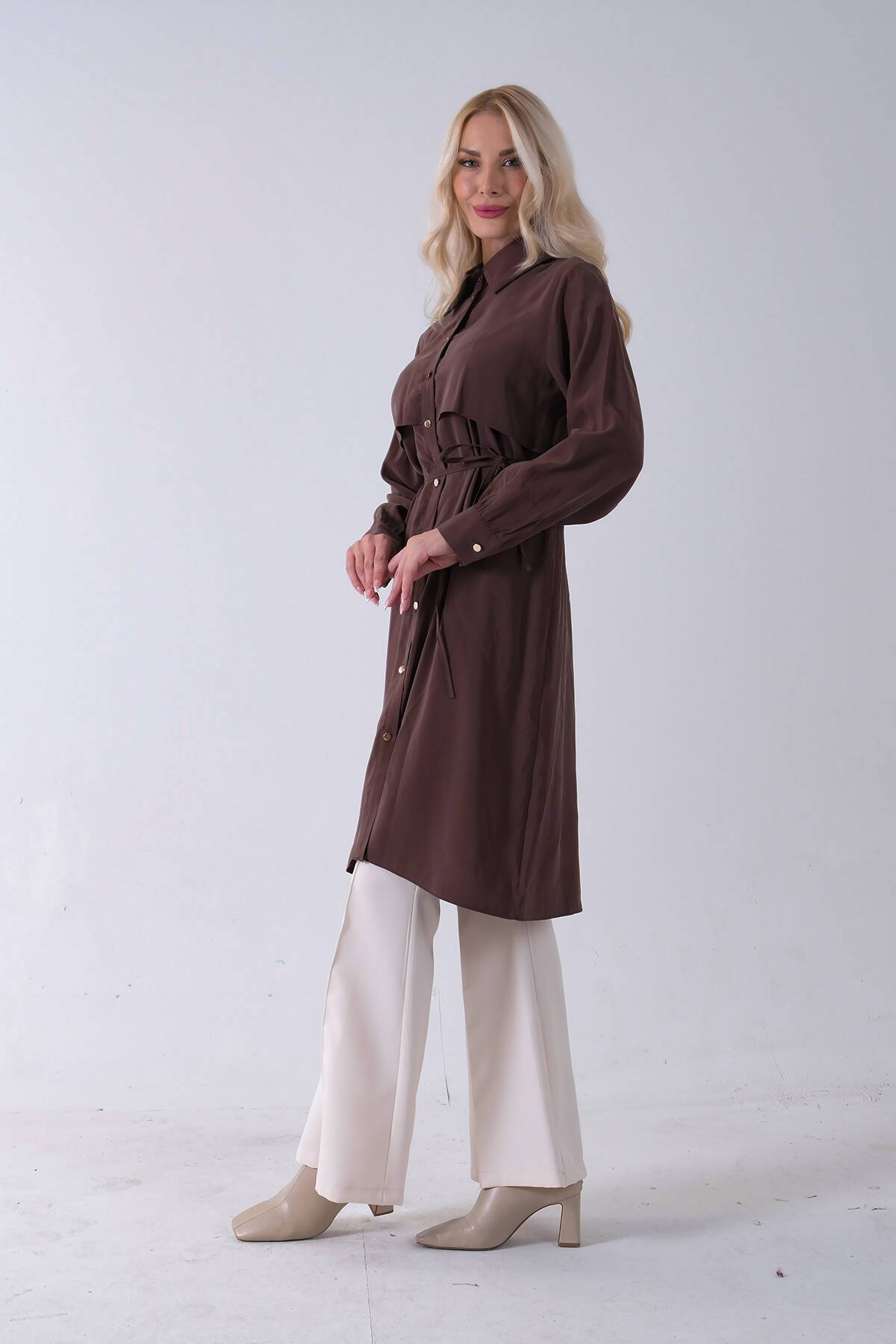 Kahve Önü Aller Detaylı Bağcıklı Modal Tunik 31050762.05