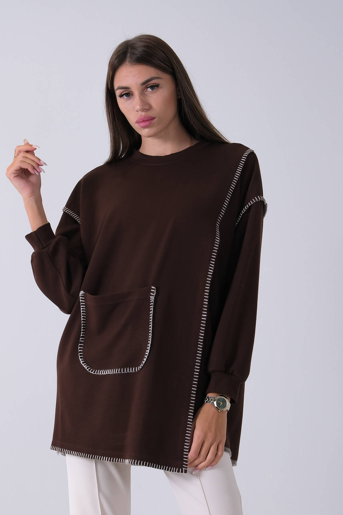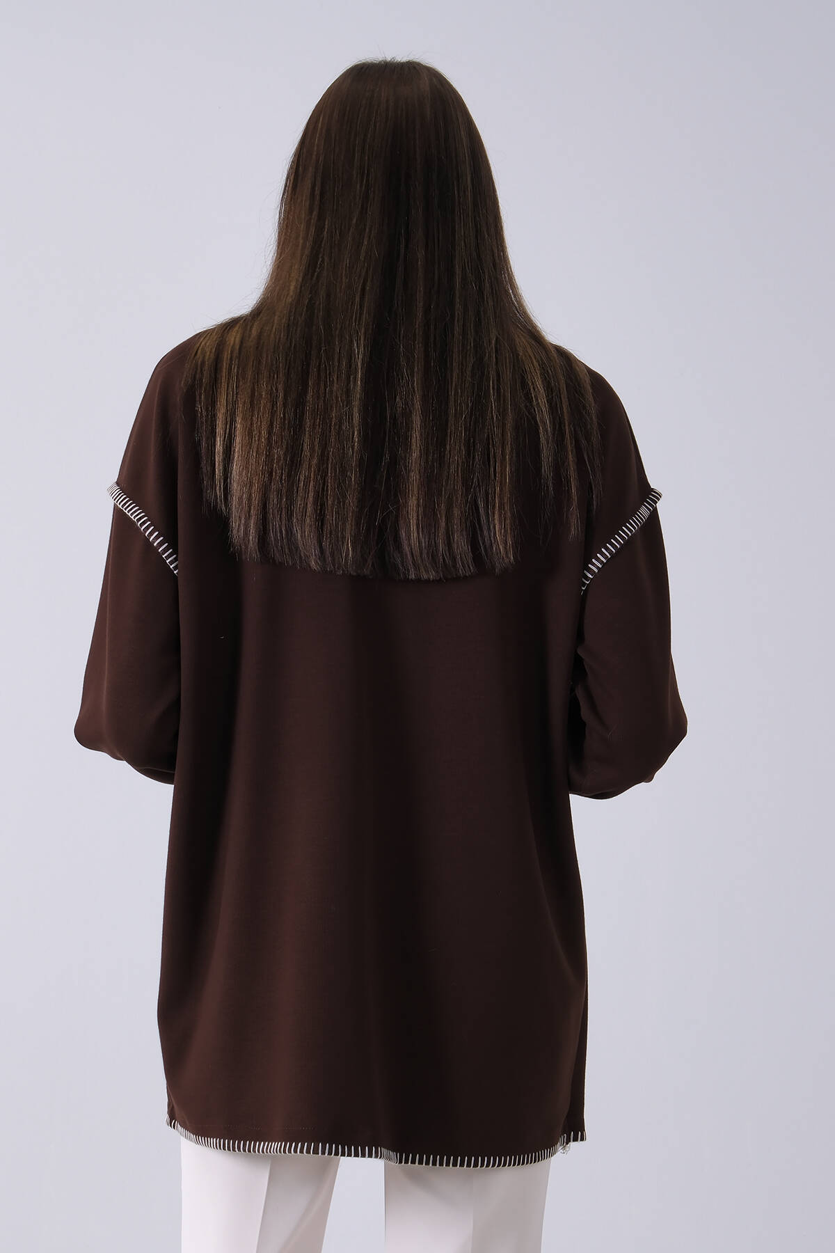 Kahve Önü Kanguru Cep Detaylı Çizgi Dikişli Bisiklet Yaka Tunik 940170263.05