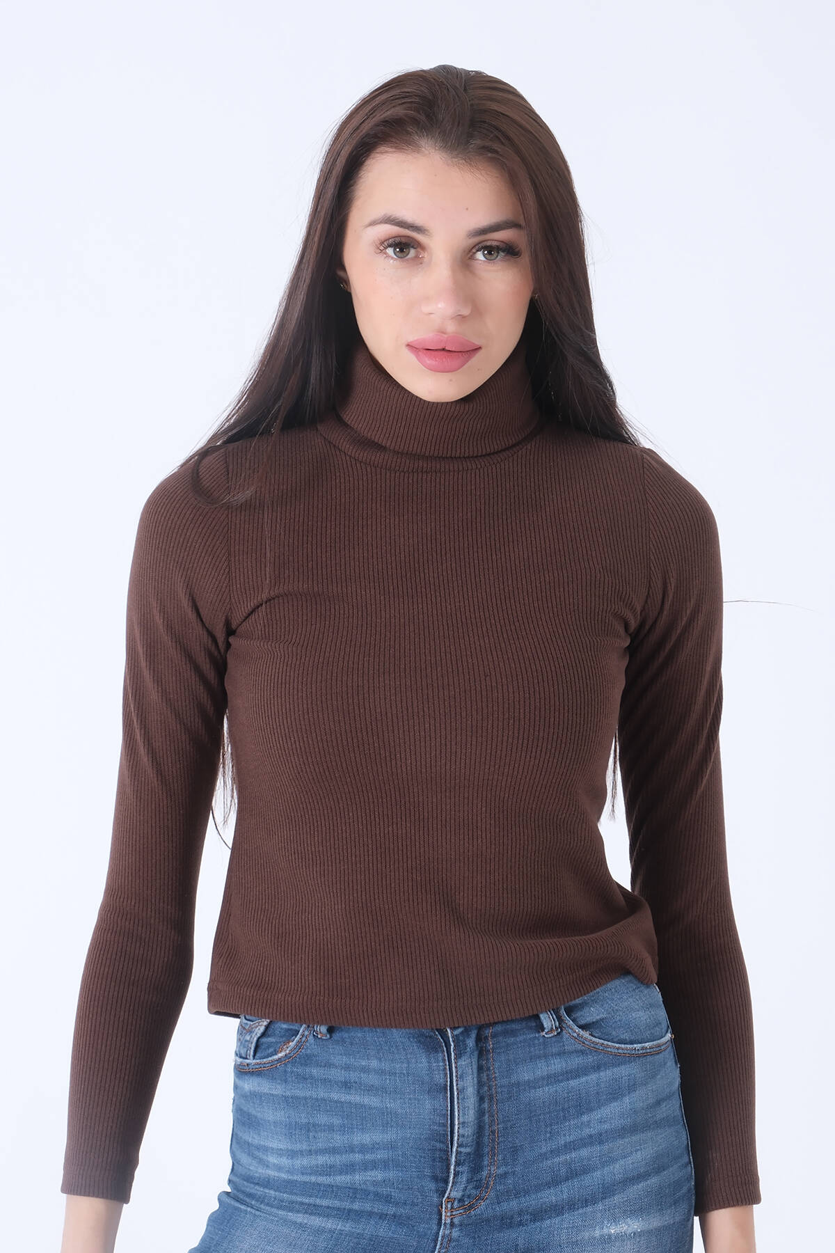 Kahve Örme Boğazlı Kazak 0103011.05