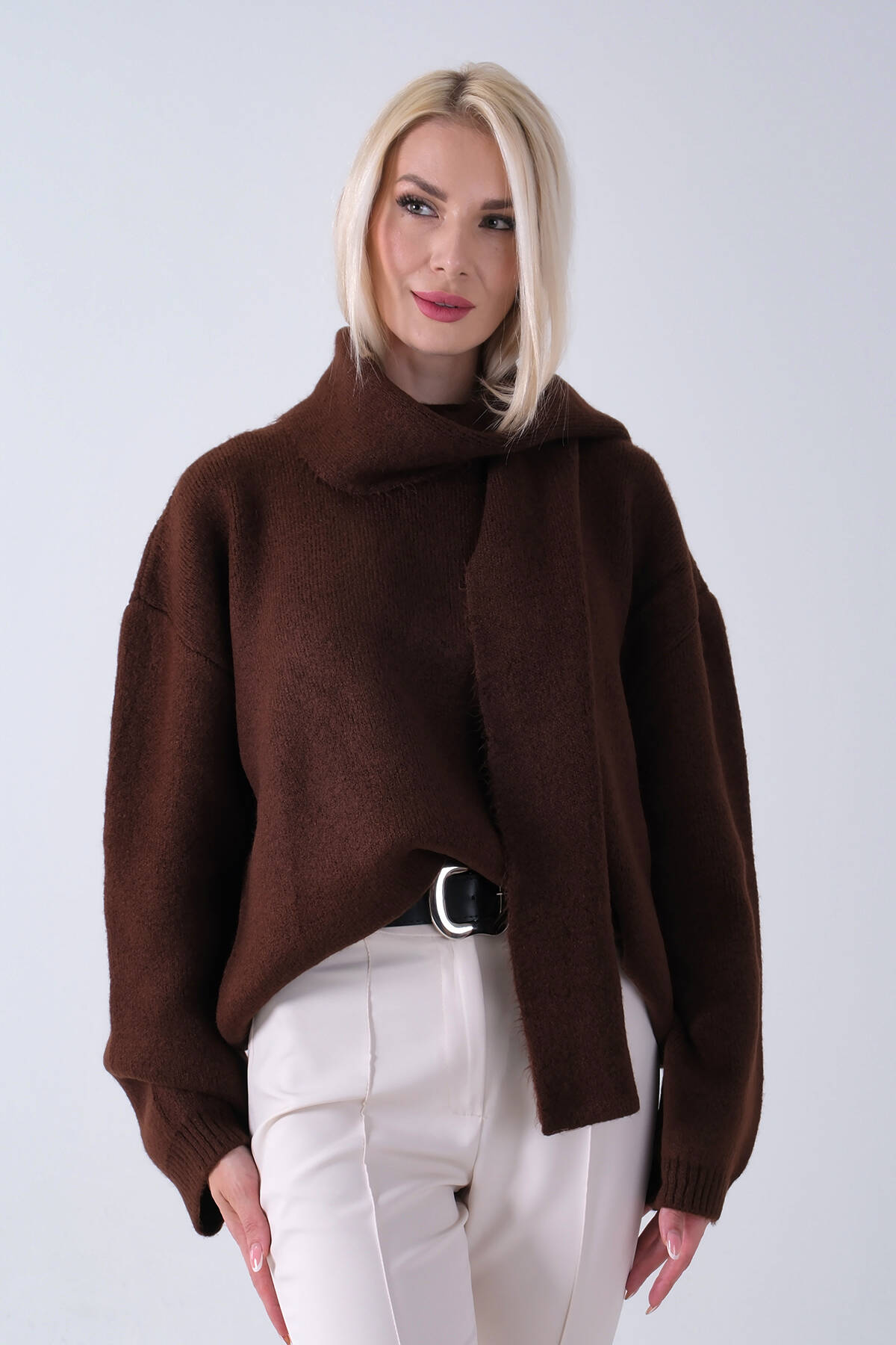 Kahve Şal Aksesuarlı Bisiklet Yaka Triko Kazak 46892633.05