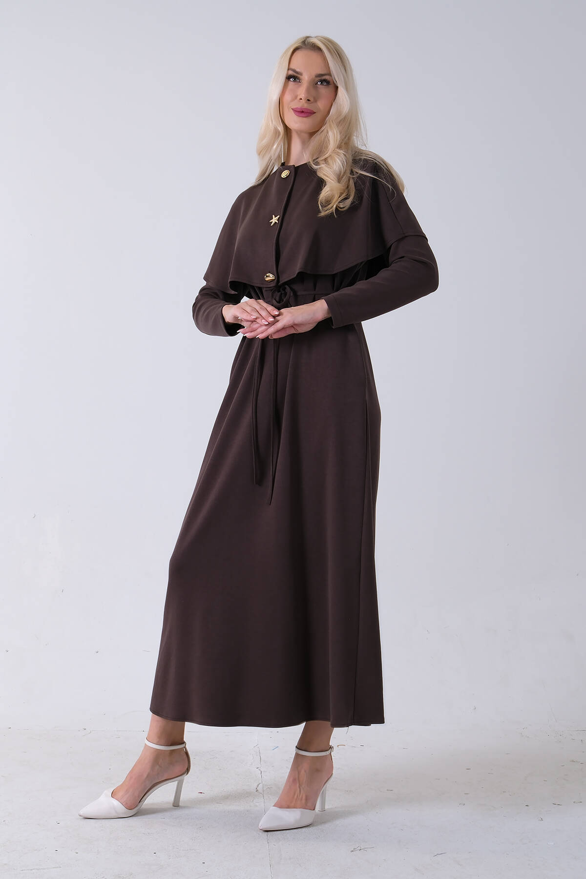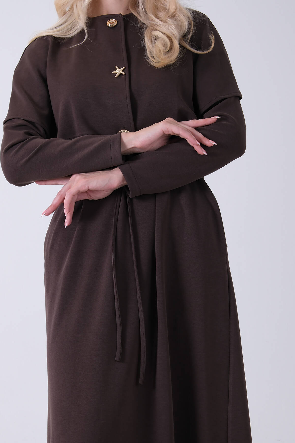 Kahve Boydan Düğme Kapamalı Bileği Lastikli Beli Kemerli Elbise 4593459.05