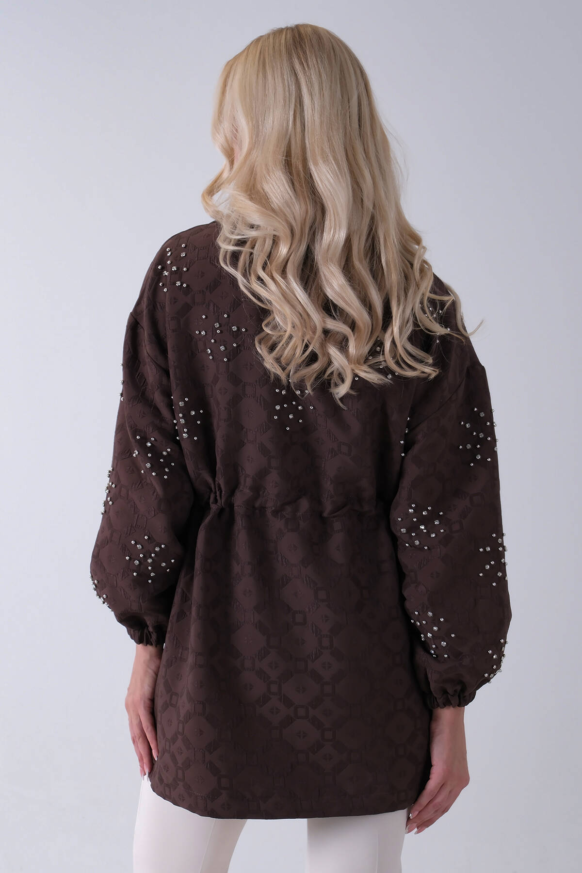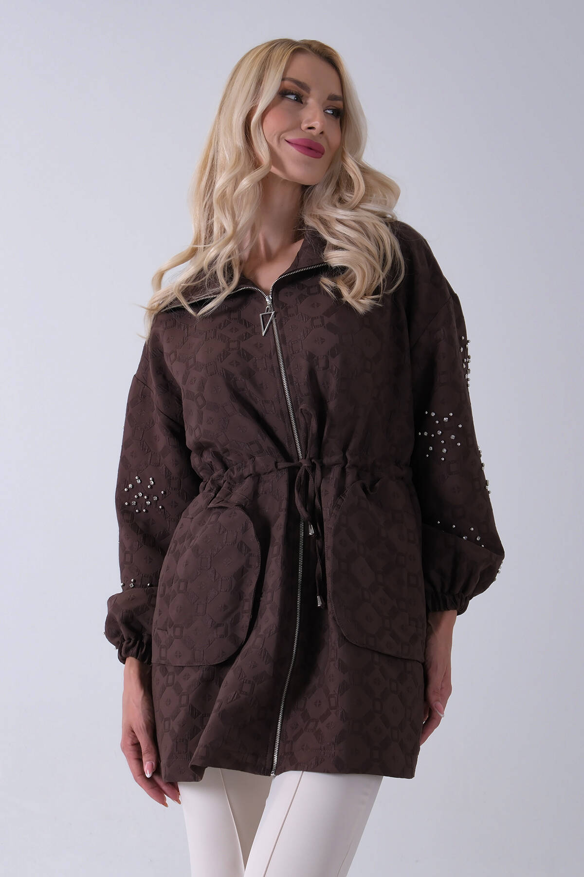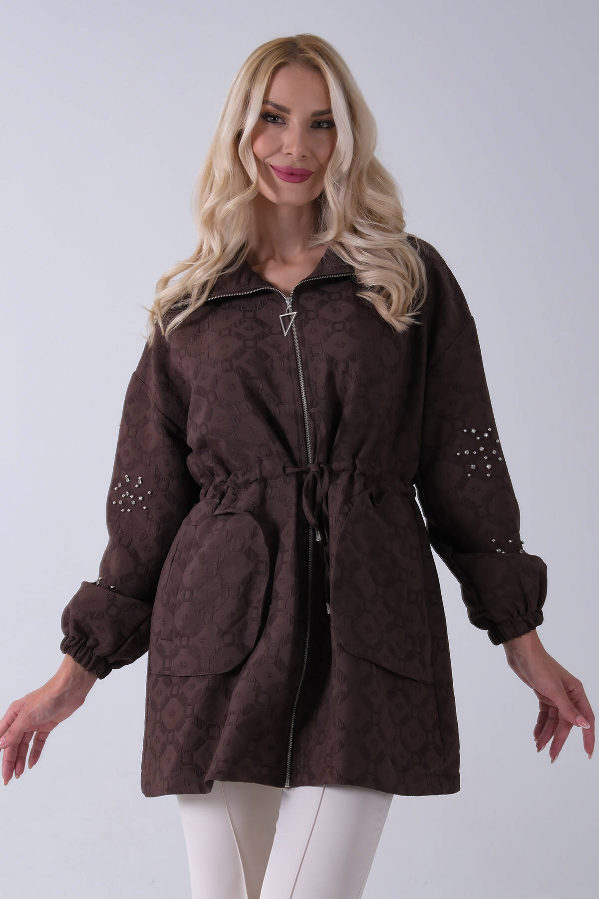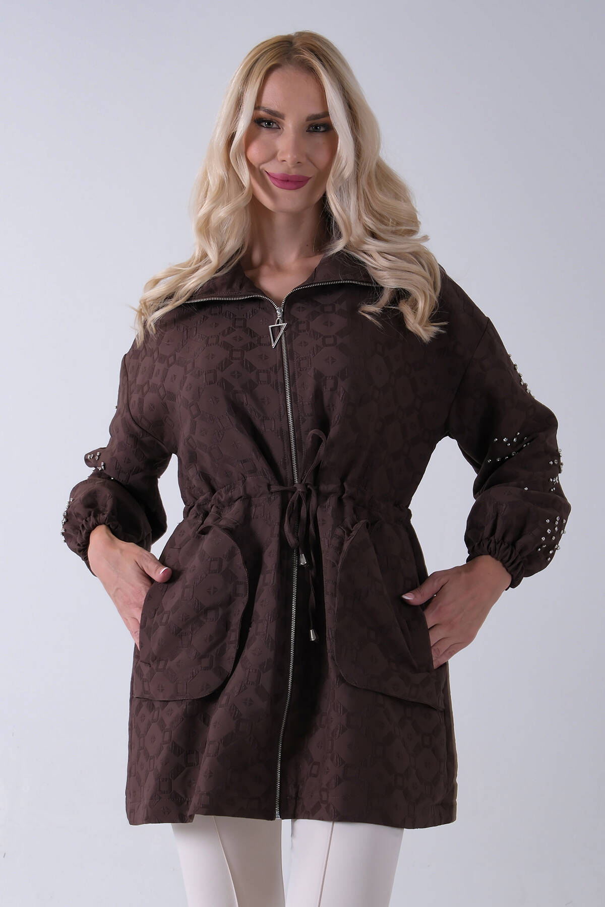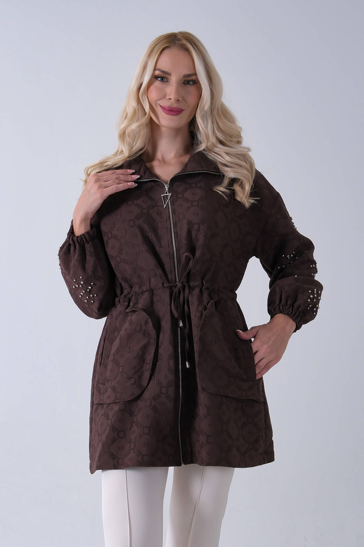Kahve Üzeri Taş Detaylı Yandan Cepli Trenç 940140177.05