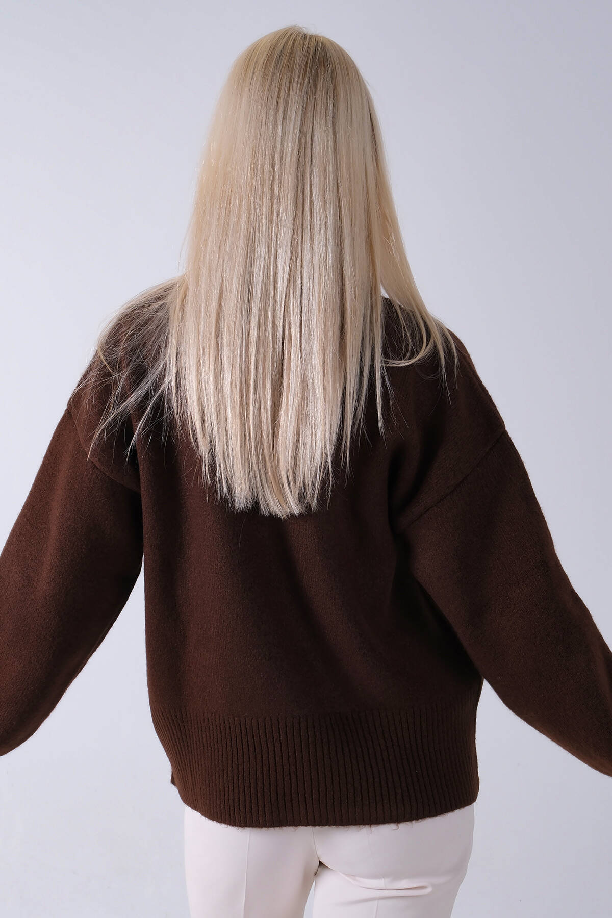 Kahve Şal Aksesuarlı Bisiklet Yaka Triko Kazak 46892633.05