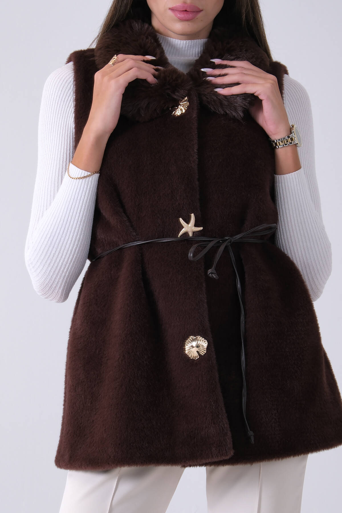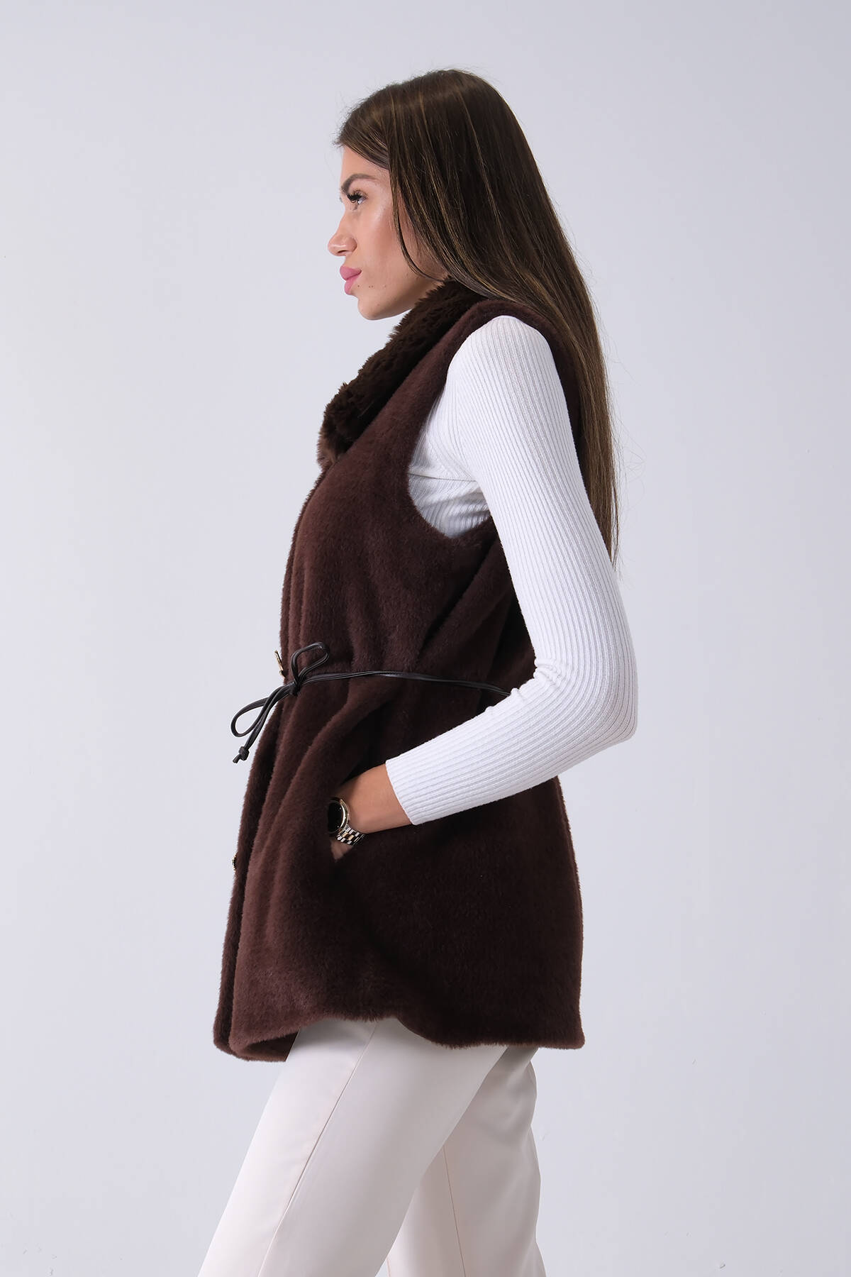 Kahve Yakası Peluşlu Tek Düğme Kapamalı Yelek 4579035.05
