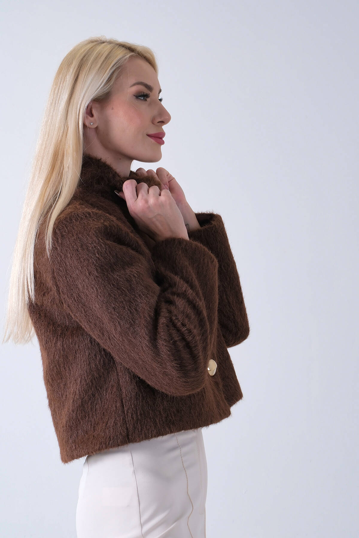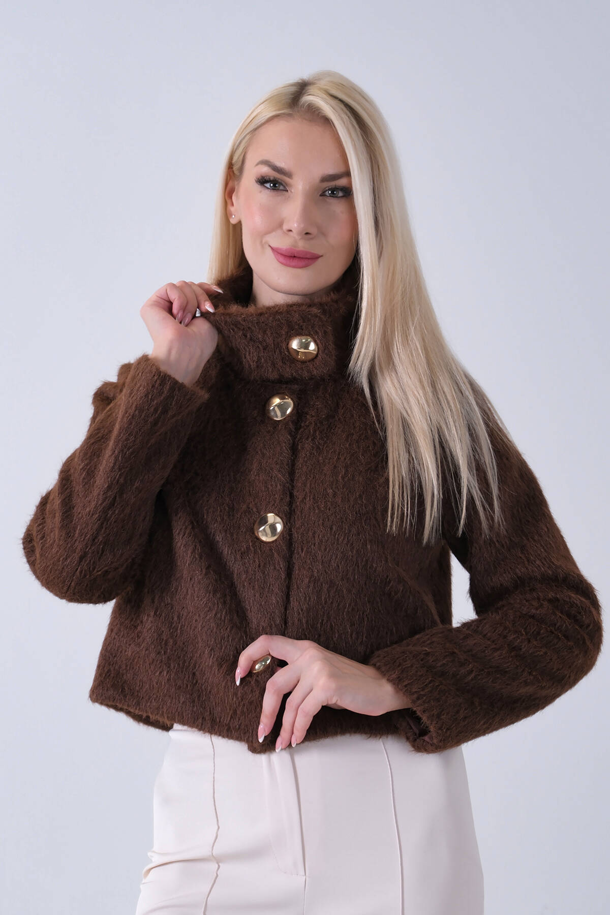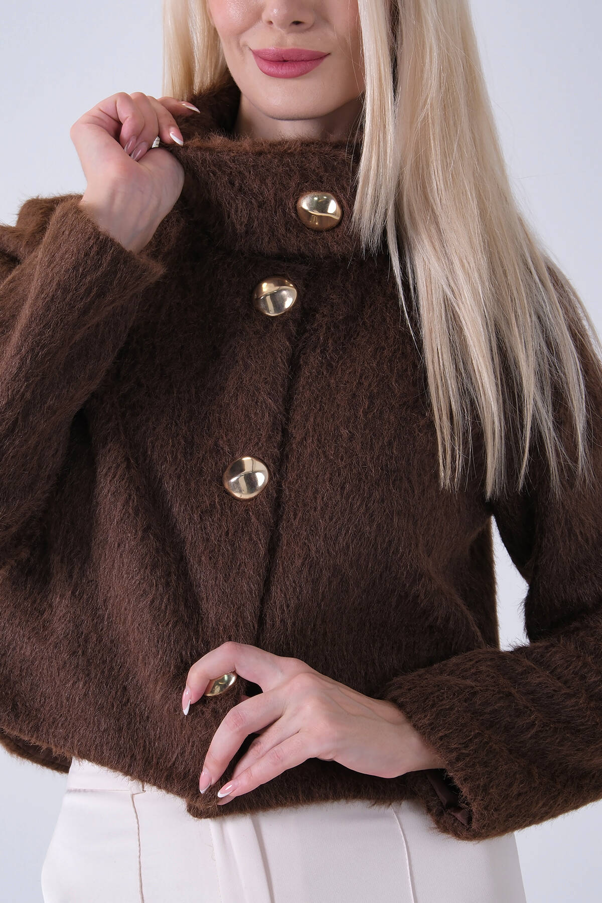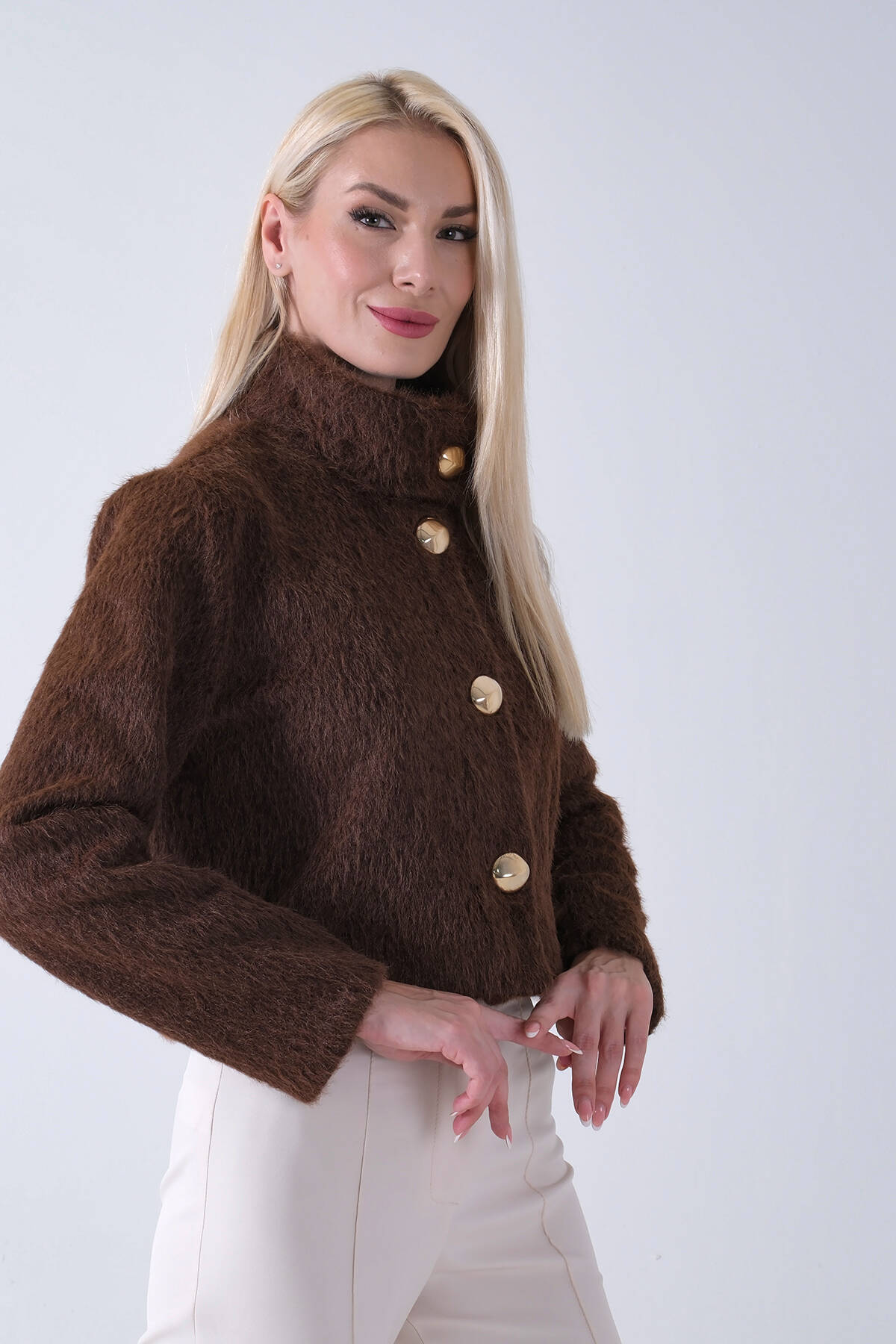 Kahve Yarım Balıkçı Yaka 4 Düğmeli Kaşe Yün Ceket 5307121.05