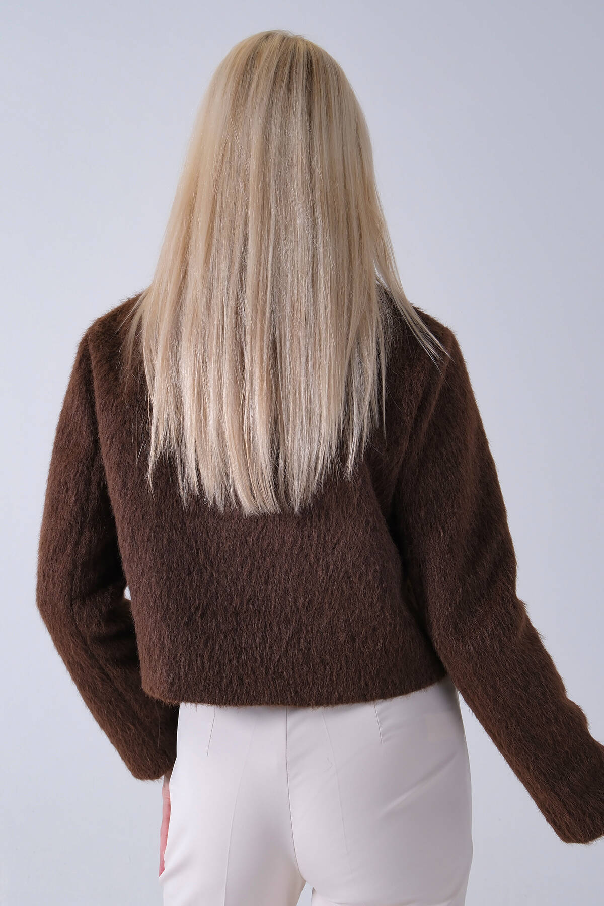 Ekru Yakası Kürk Detaylı Kemerli Fermuar Kapamalı Kaşe Ceket 5307098.147