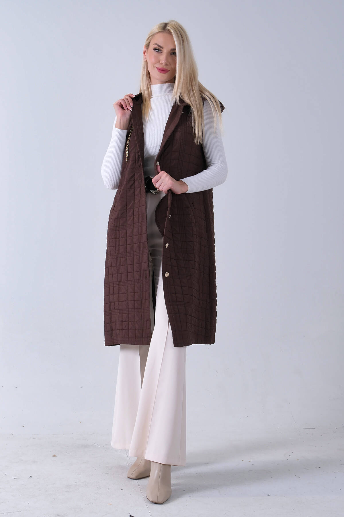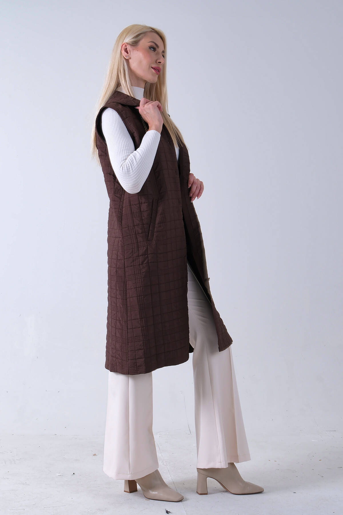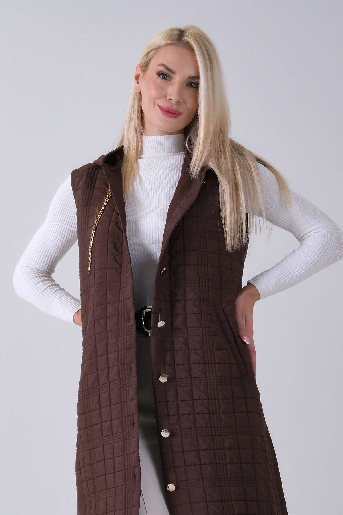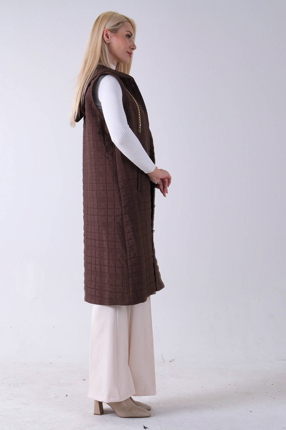 Kahve Zincir Detaylı Fleto Cepli Kapitone Yelek 31070195.05