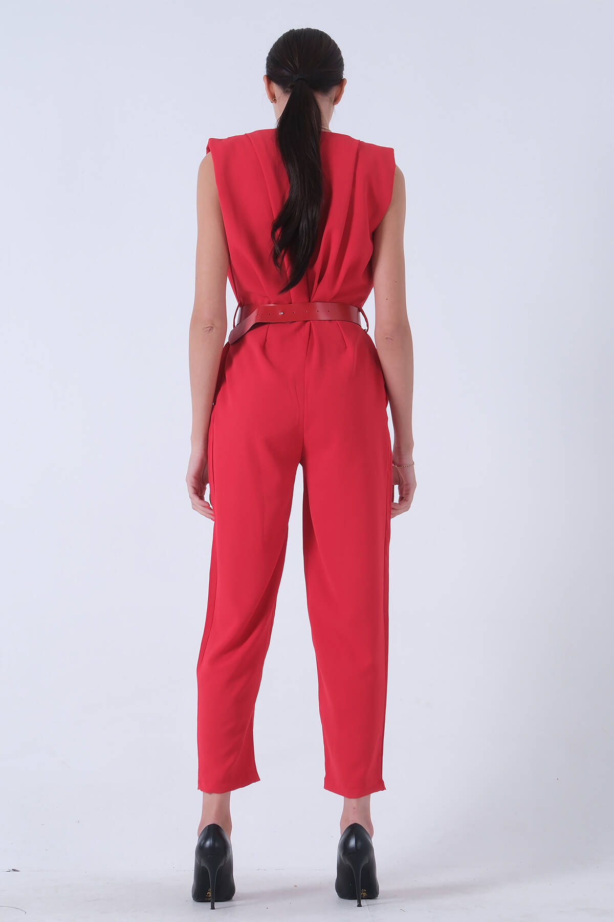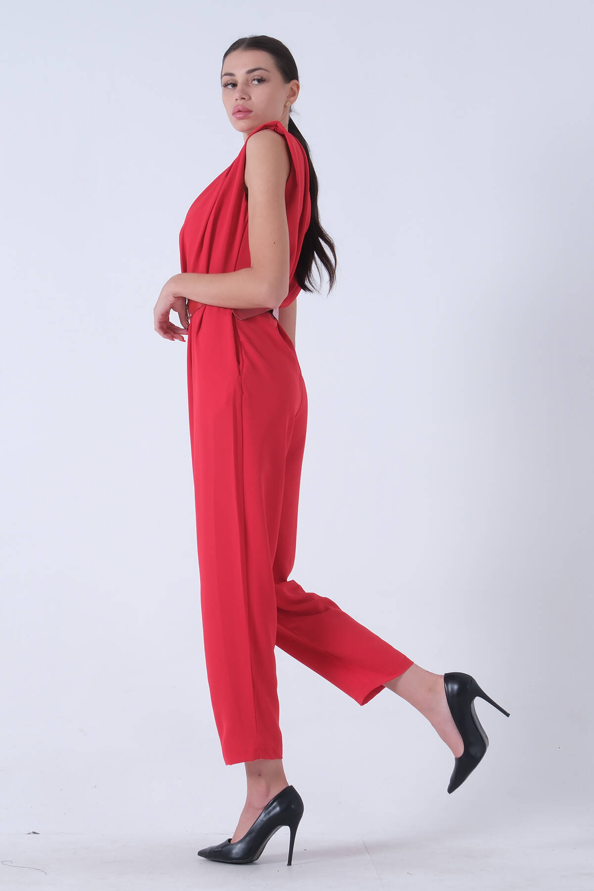 Kırmızı Degaje Yaka Tulum 4203453.08