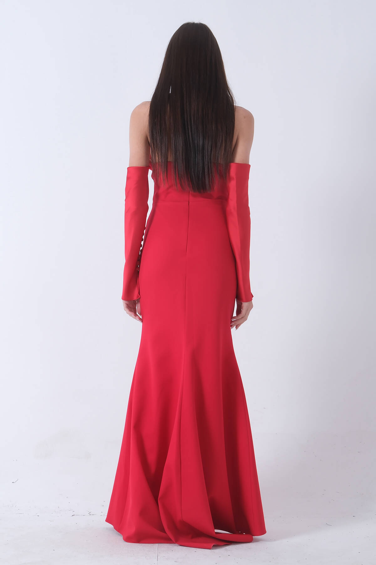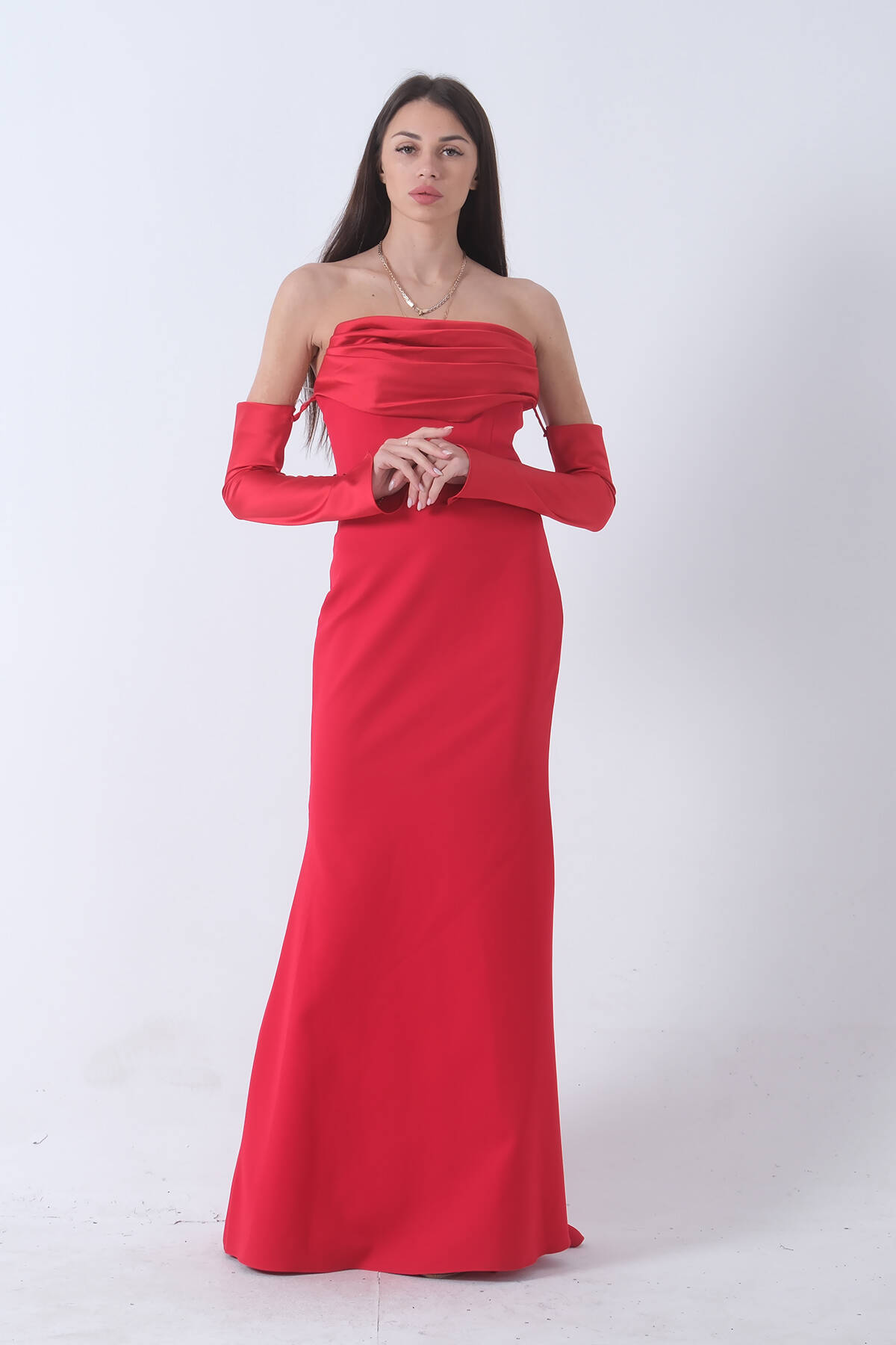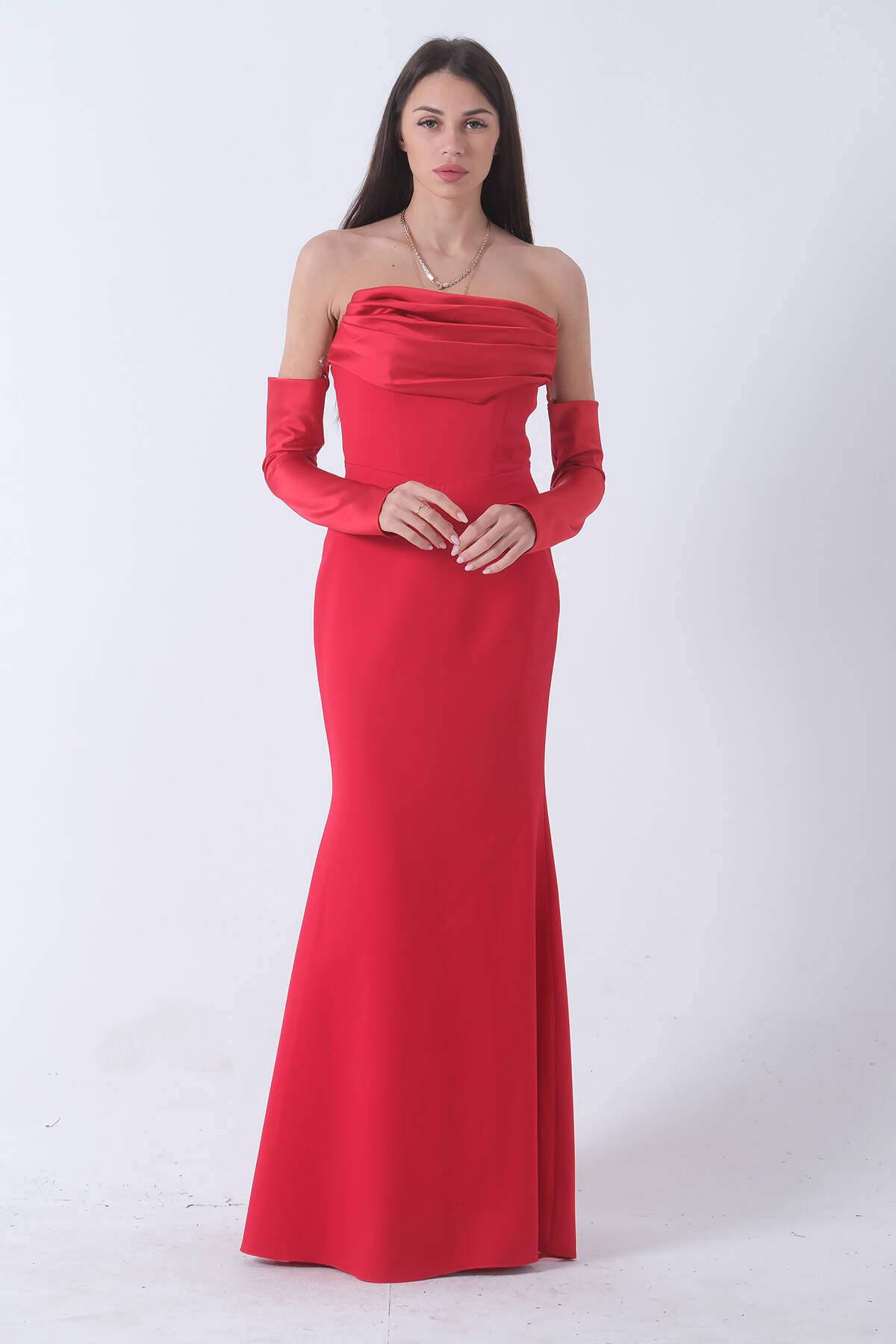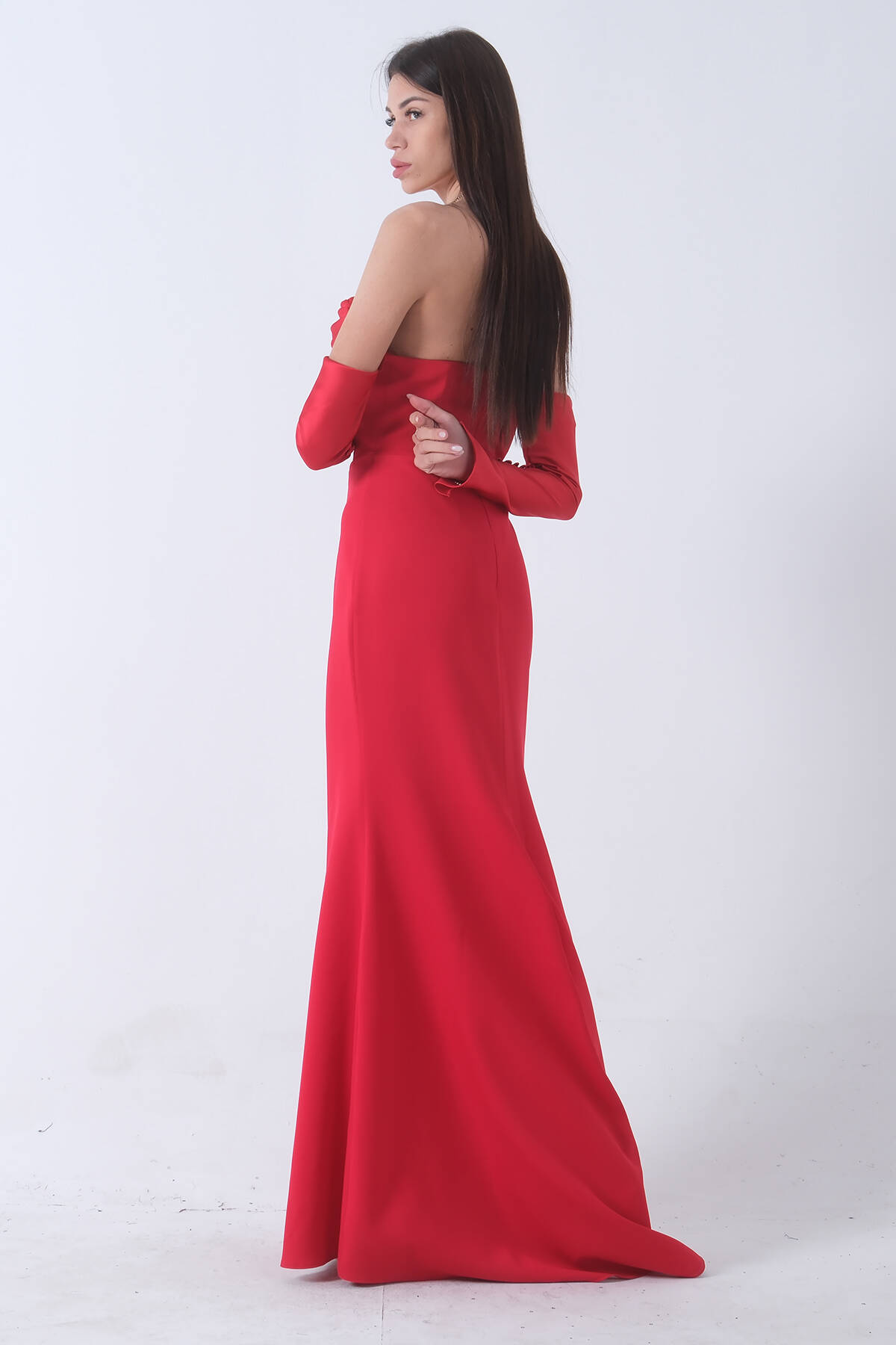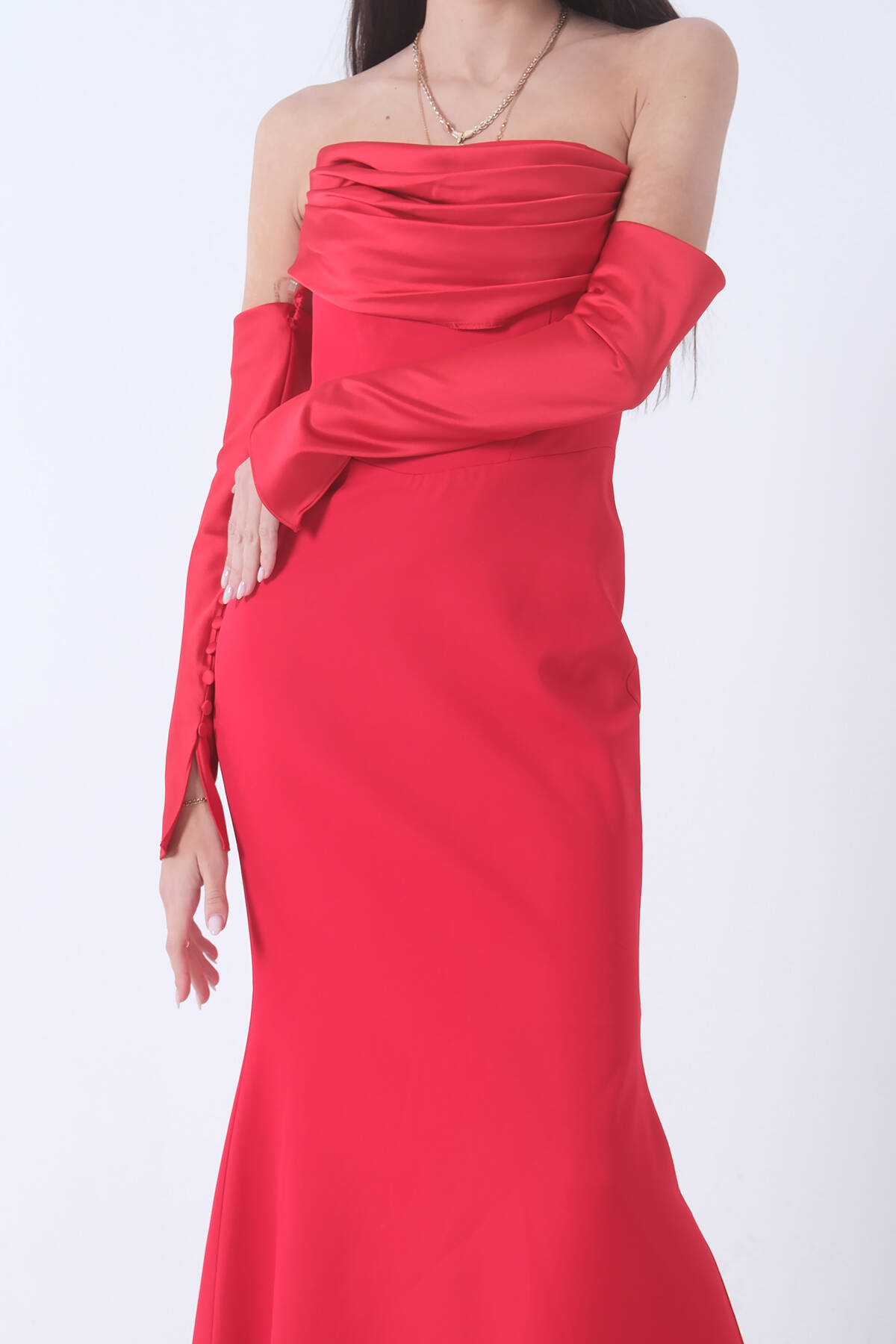 Kırmızı Drapeli Düğme Detaylı Uzun Abiye 9705361.08