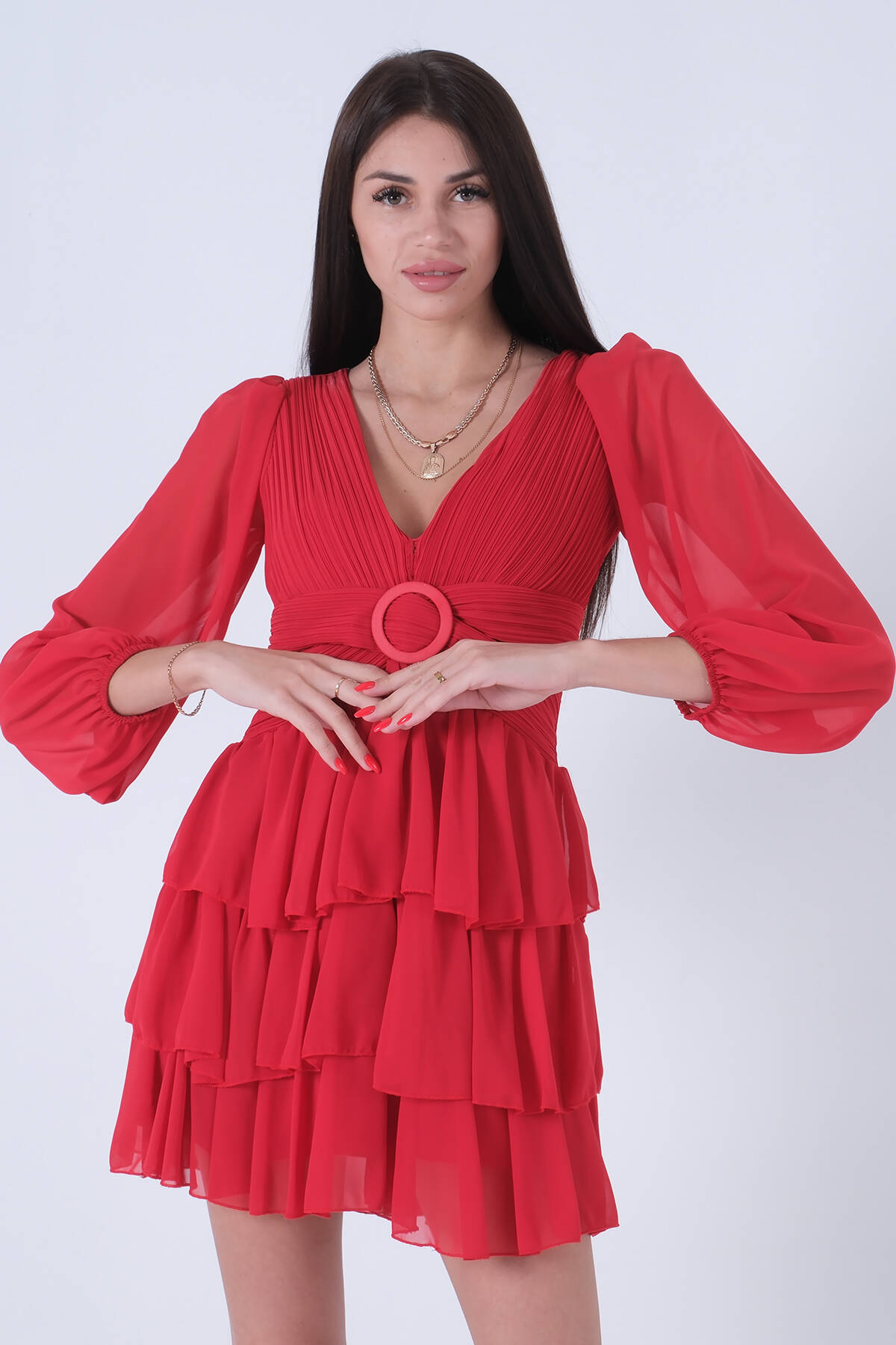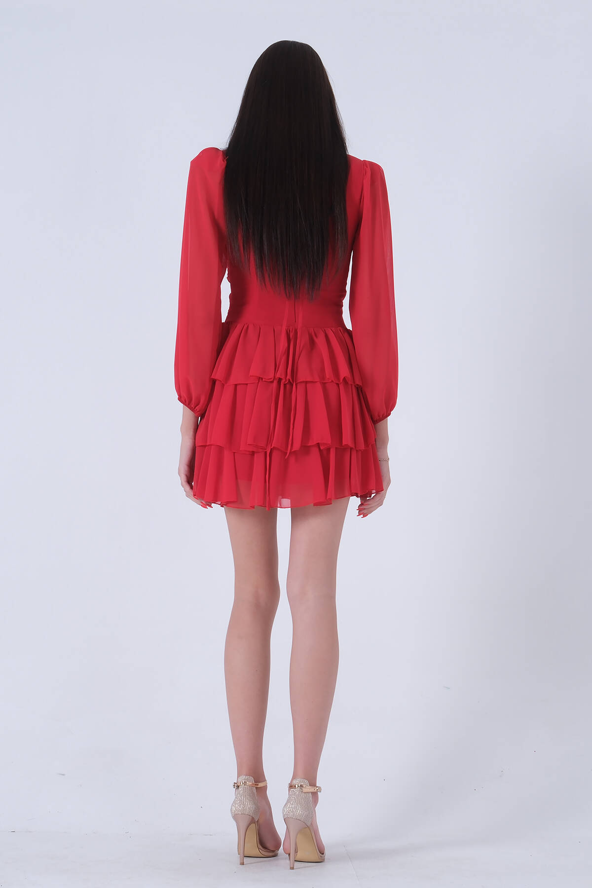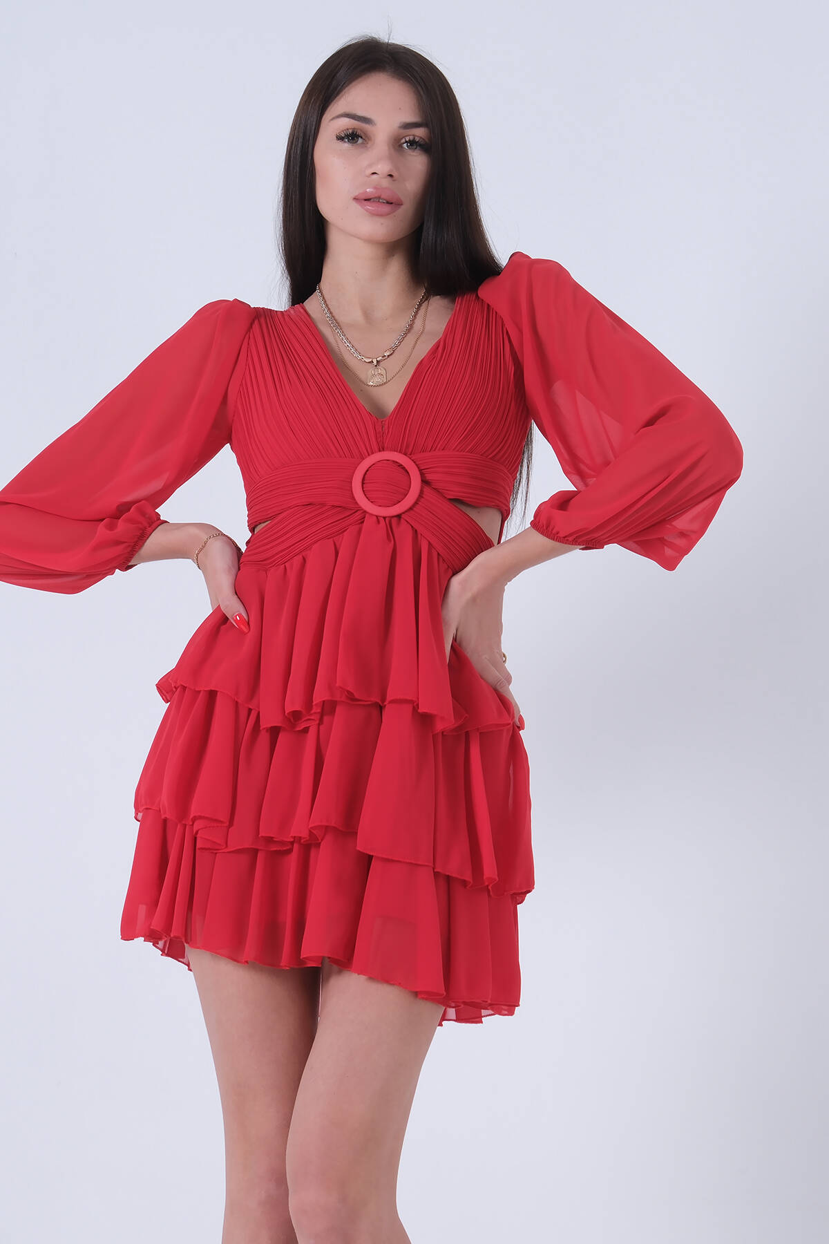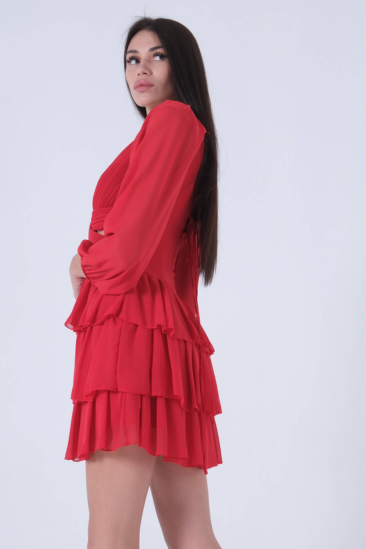 Kırmızı Fırfırlı Dekolteli Mini Şifon Abiye Elbise 9705278.08