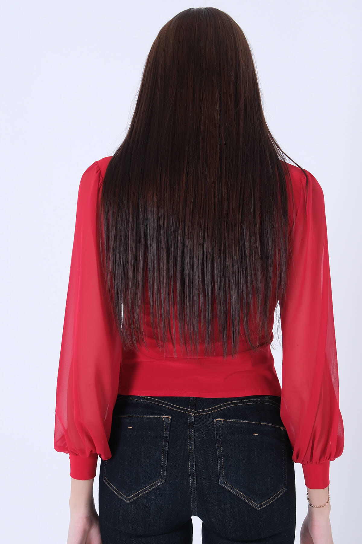 Kırmızı Kolları Şifon Gömlek 4202643.08
