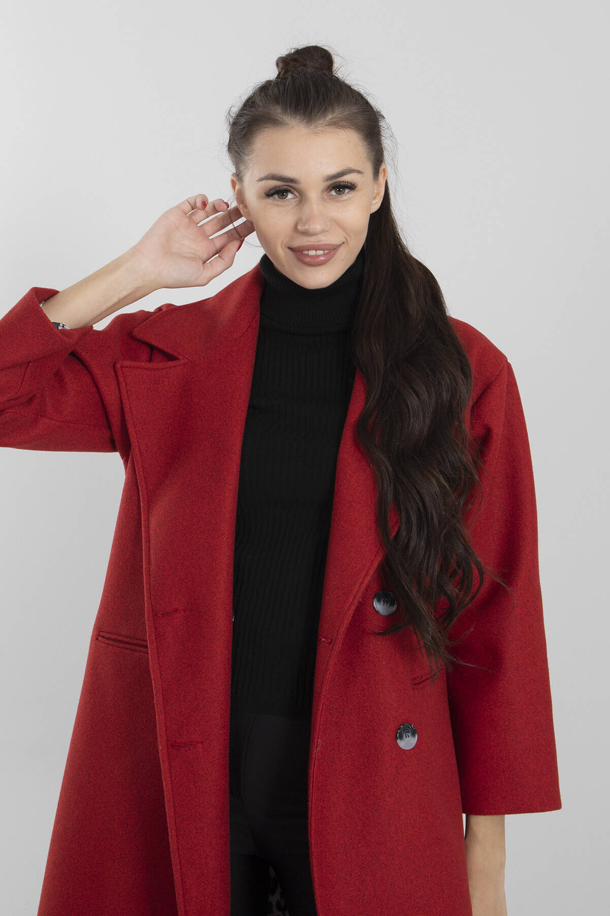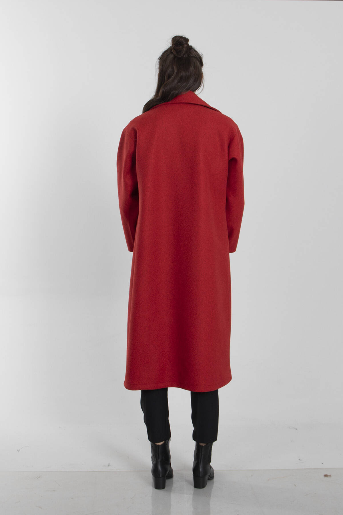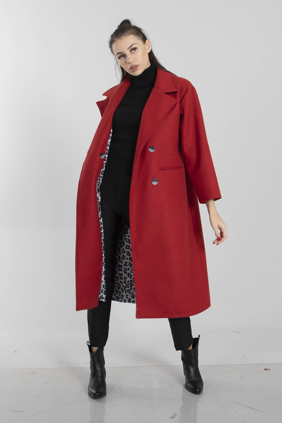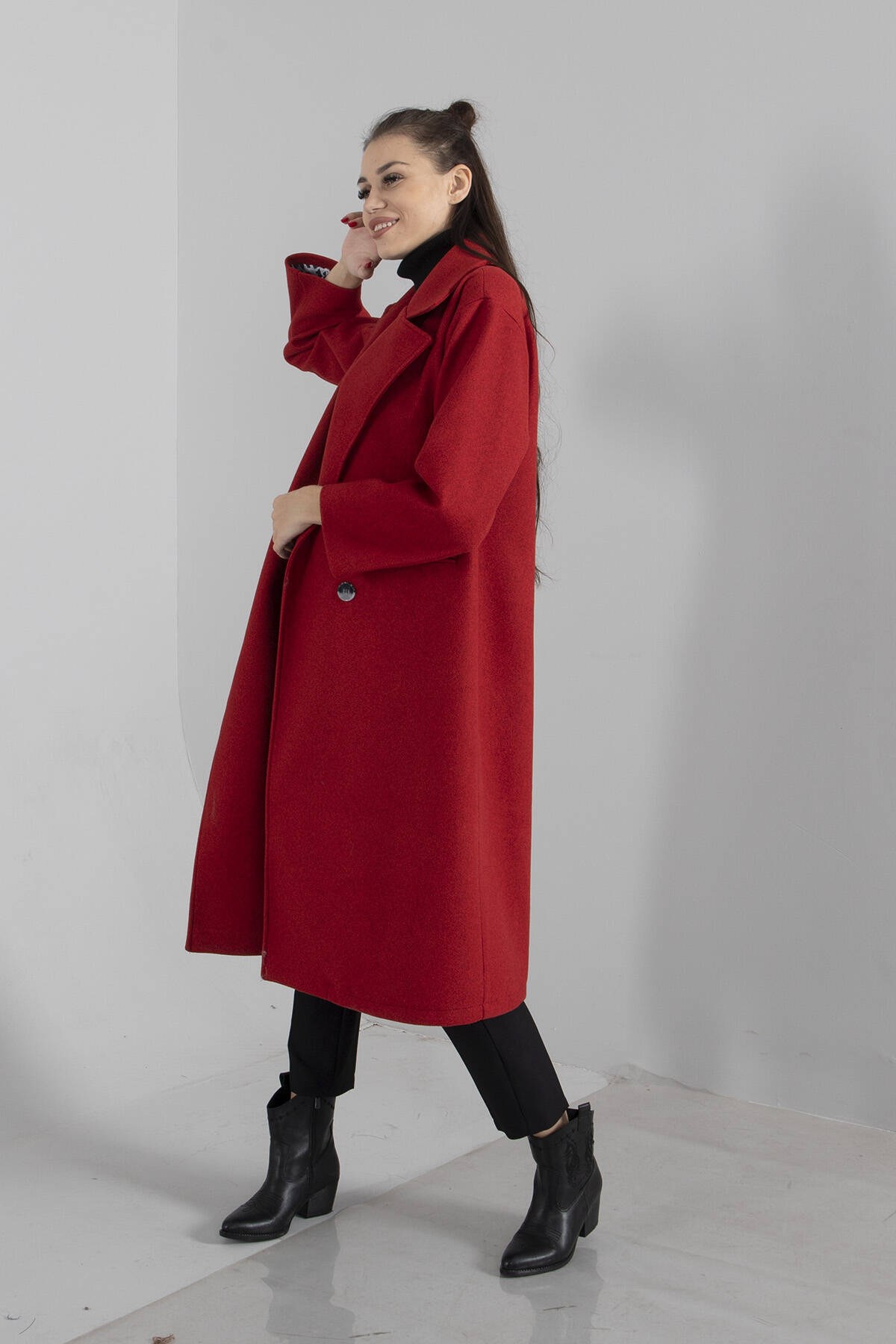 Kırmızı Önden Düğmeli Oversize Örme Kaşe Kaban 0108068.08