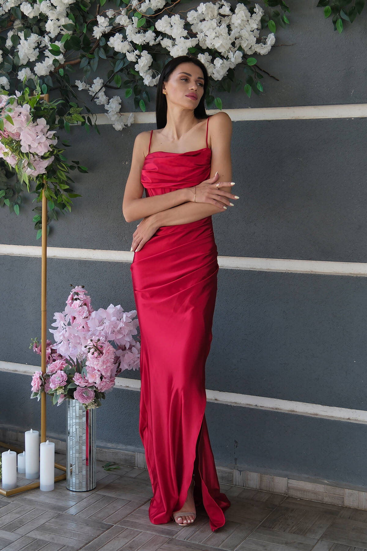 Kırmızı Sırtı Bağlamalı Yırtmaçlı Abiye 4522018.08
