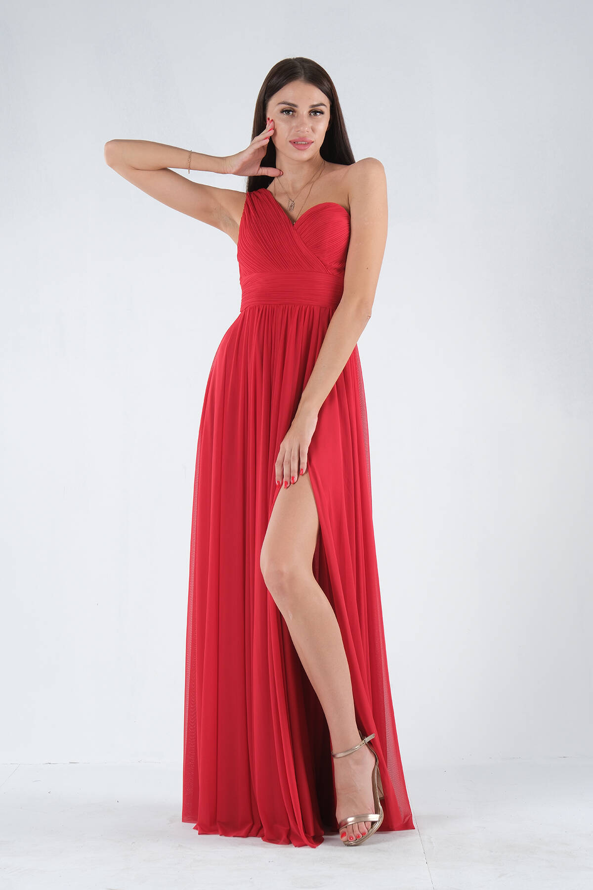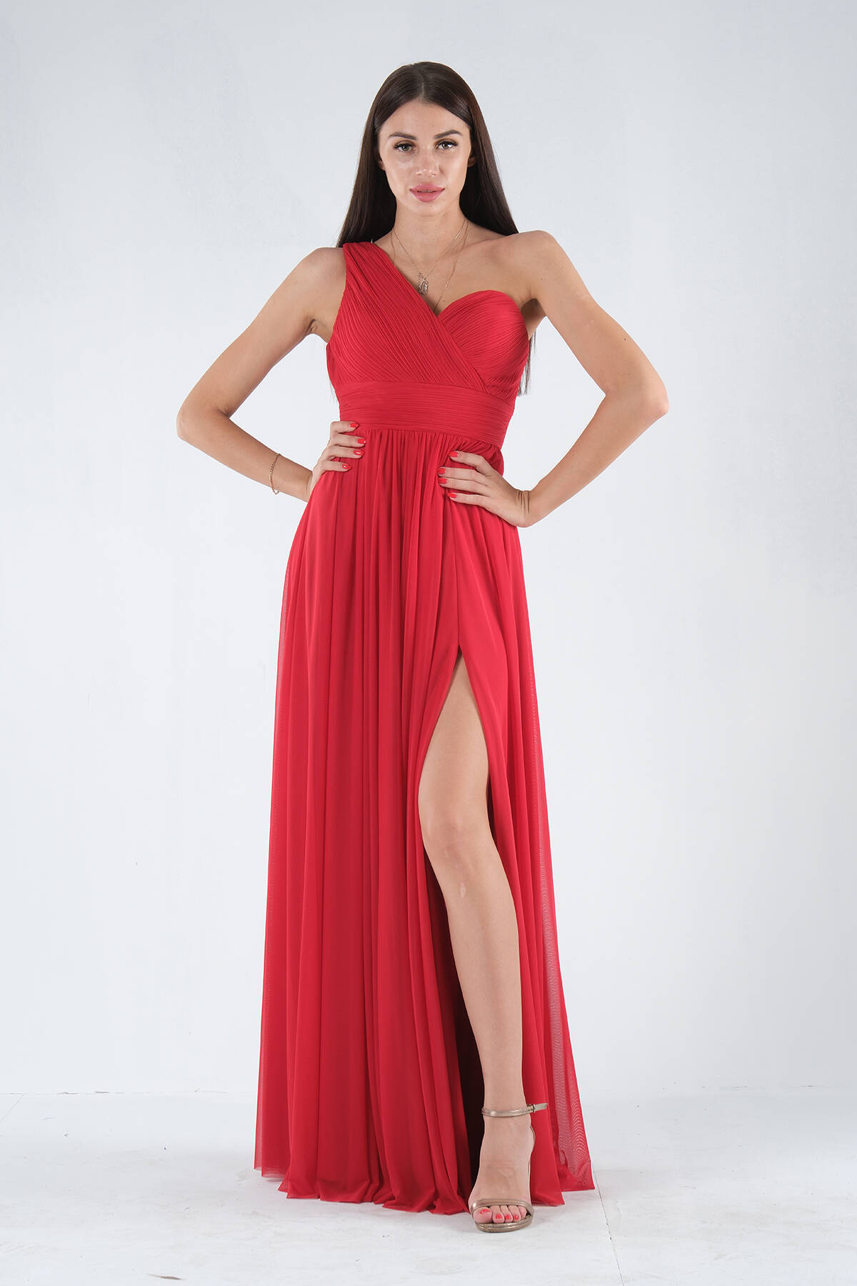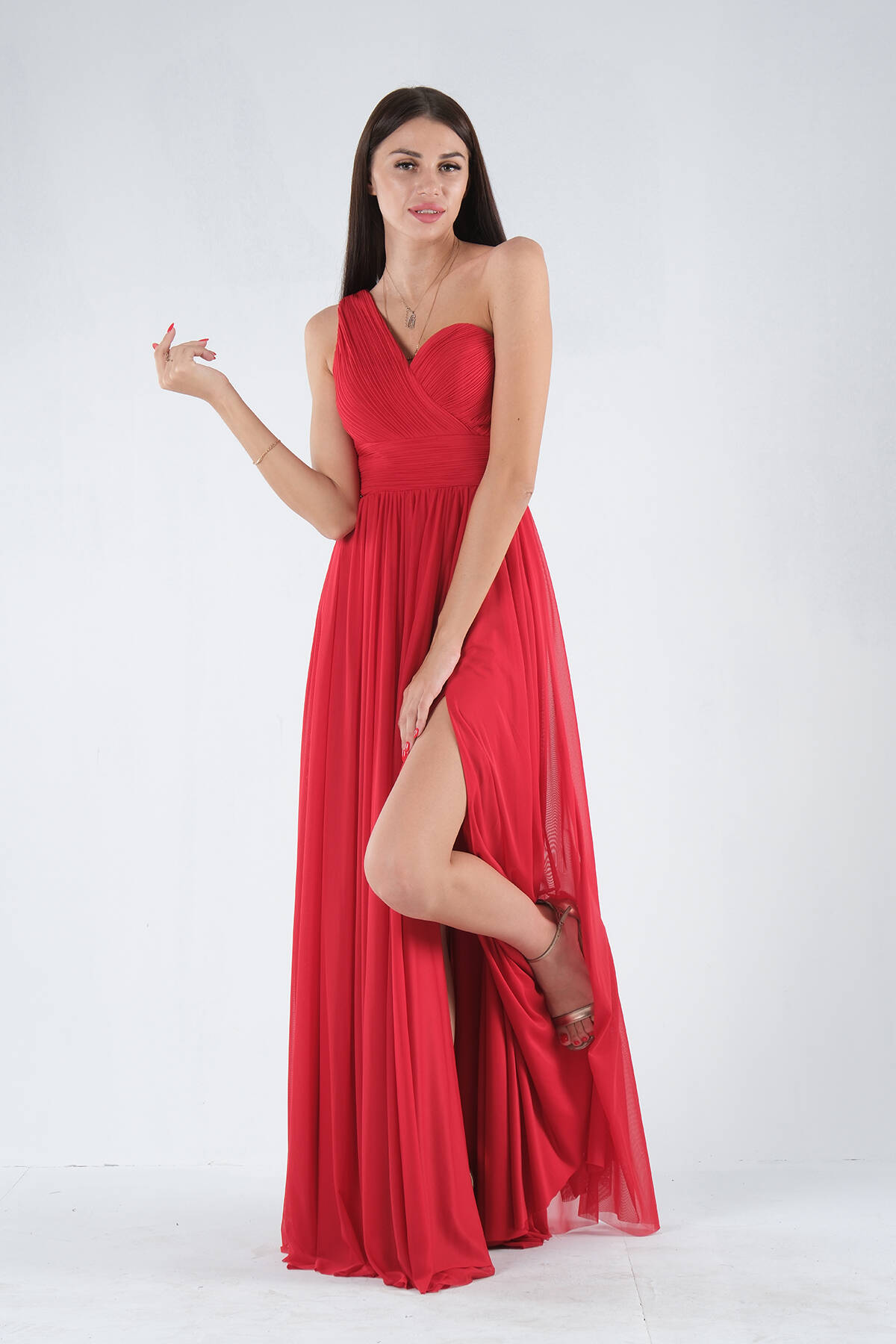 Kırmızı Tek Omuz Yırtmaçlı Abiye 9705155.08