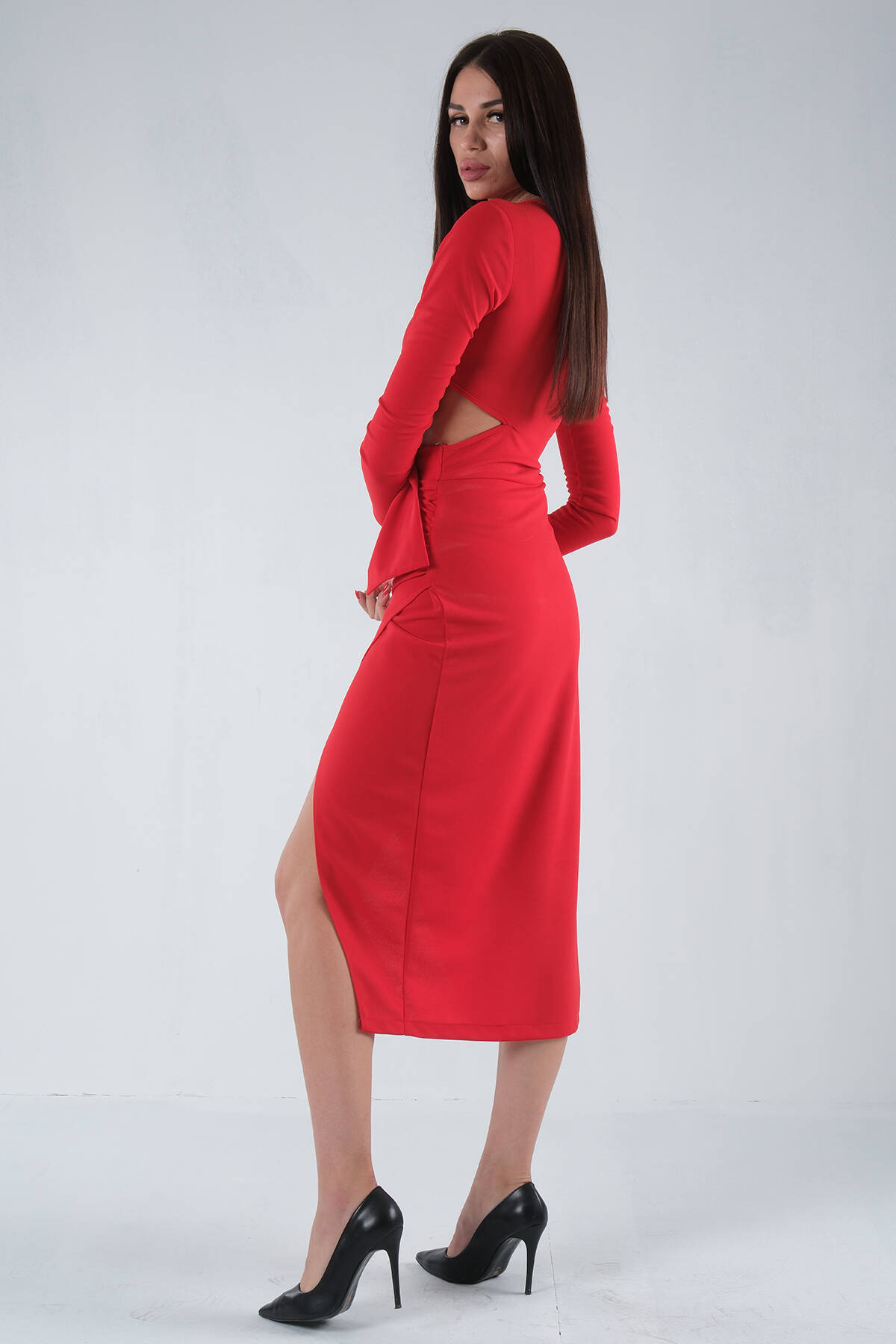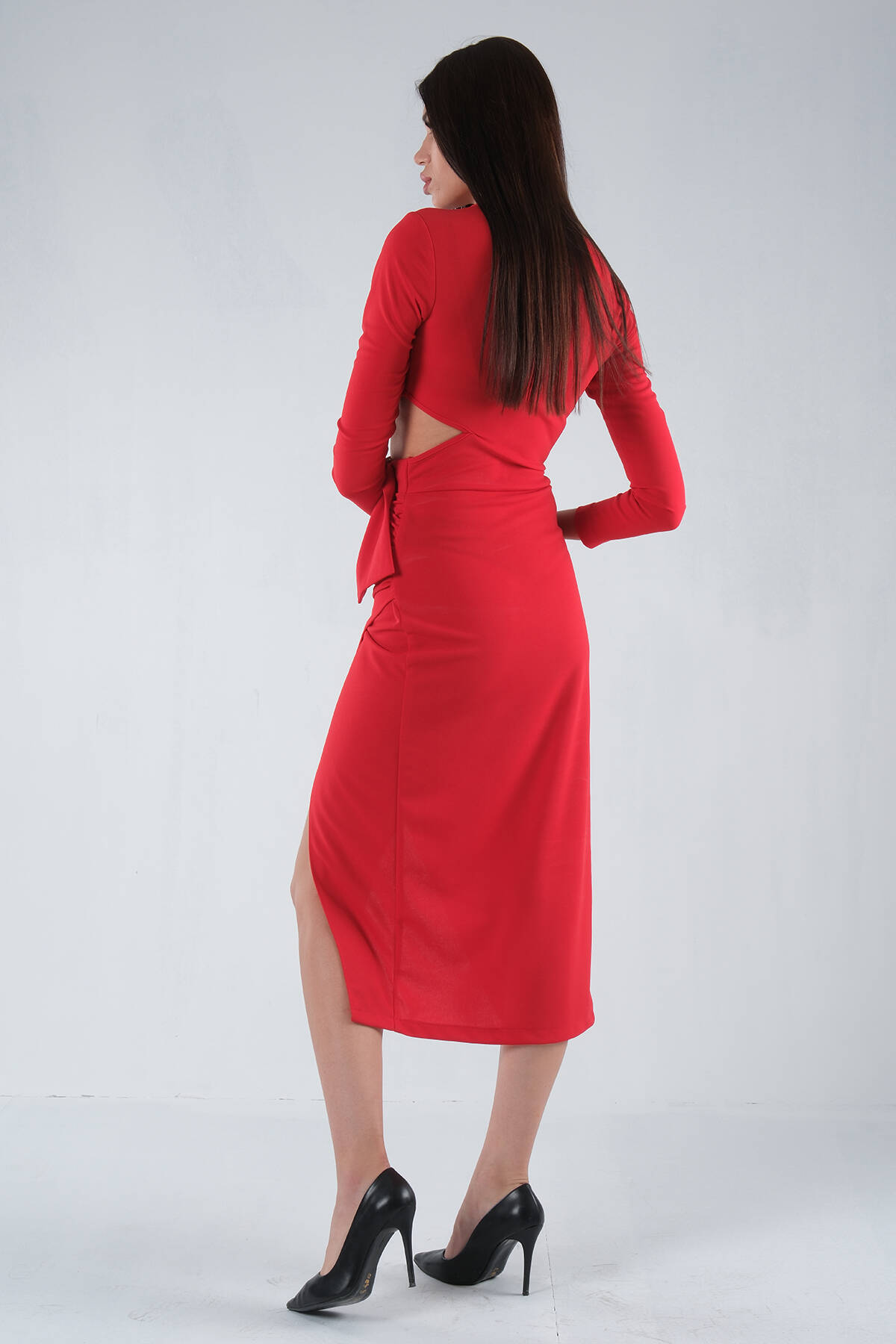Kırmızı Yırtmaçlı Tokalı Elbise 0104025.08