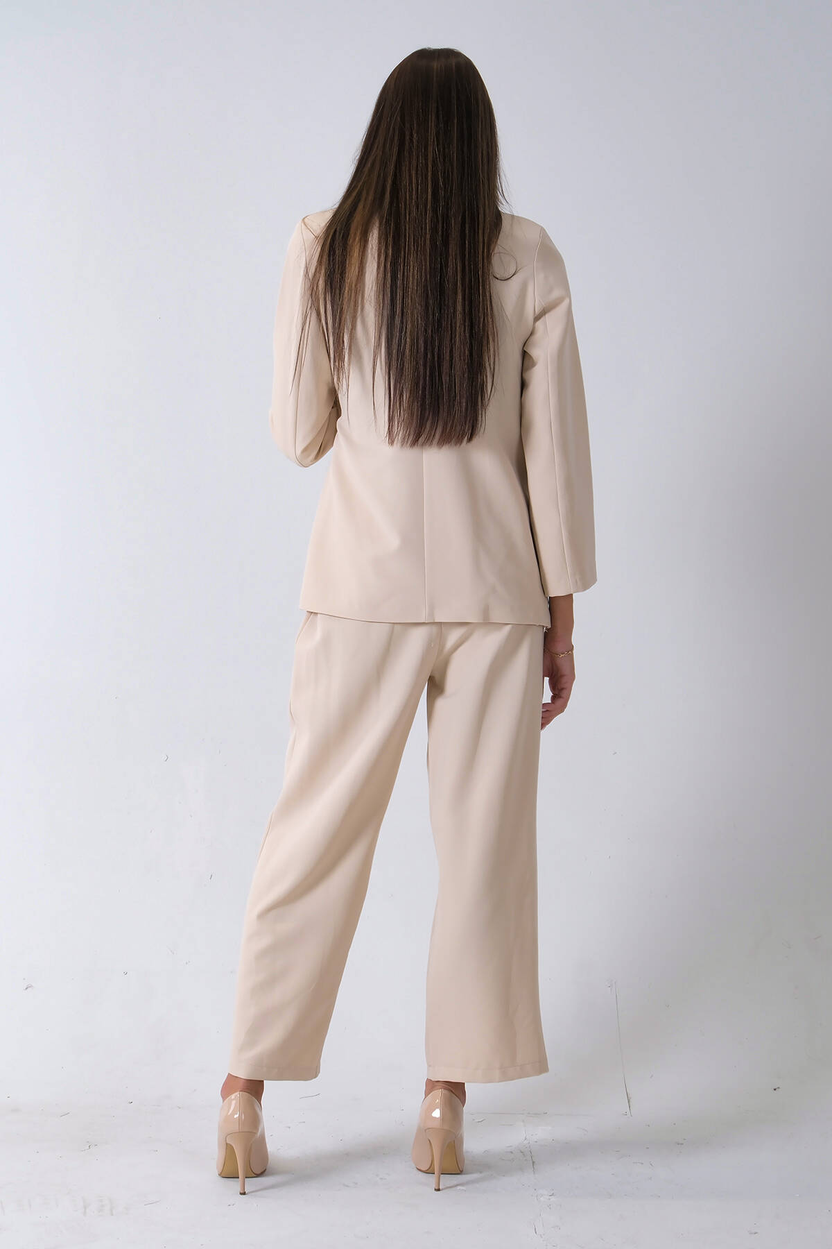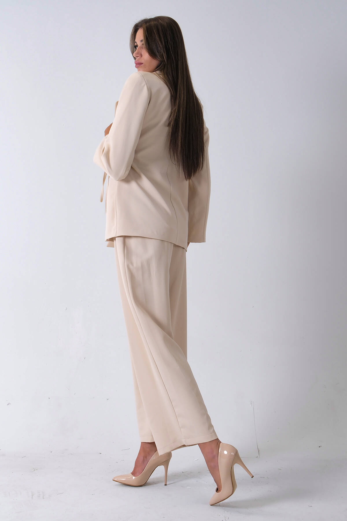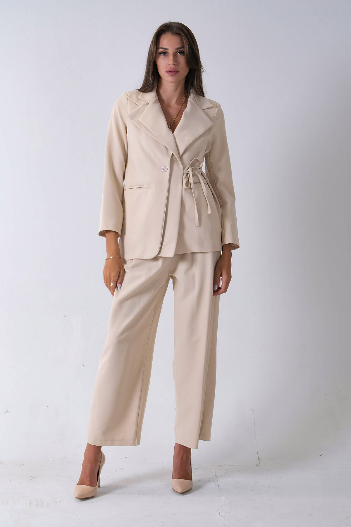 Krem Çift Cep Yandan Bağlamalı Ceket Pantolonlu Takım 4592259.19