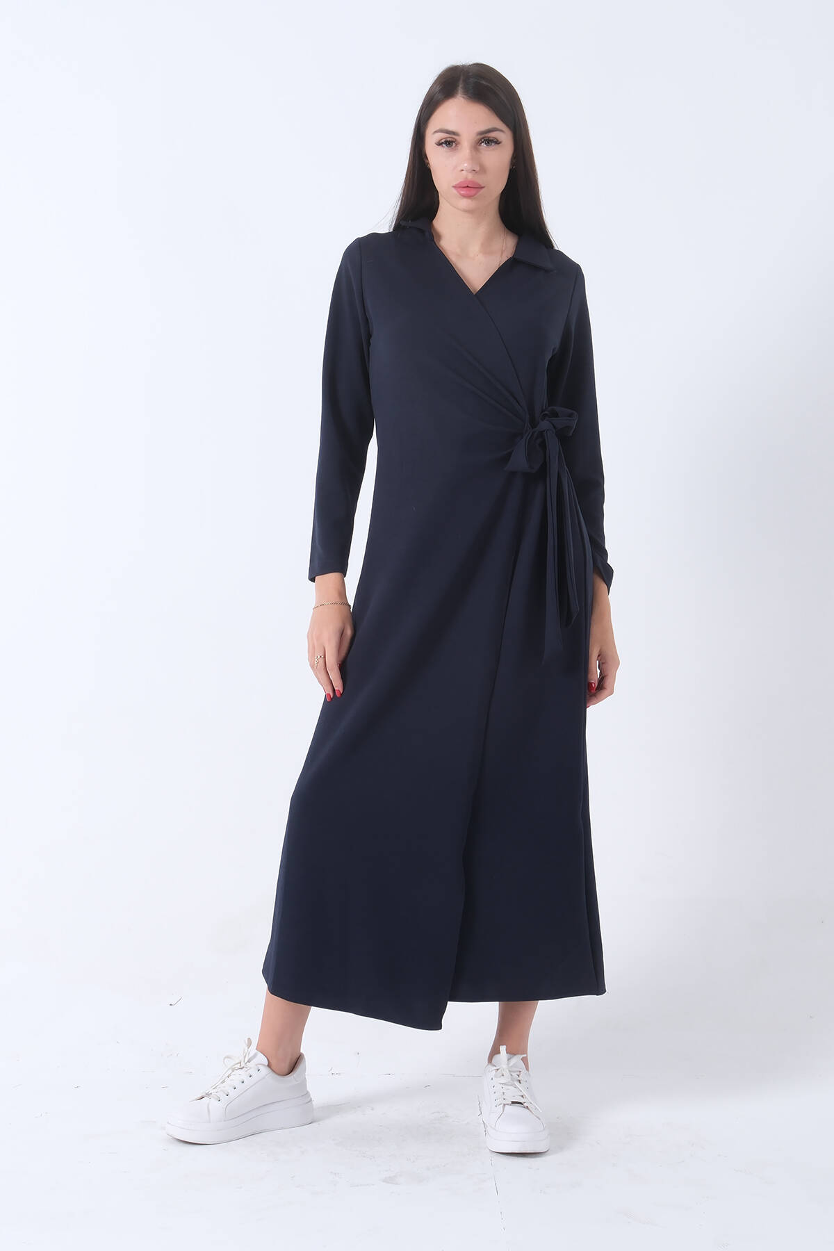 Lacivert Anvelop Yandan Bağlamalı Örme Elbise 31061509.02