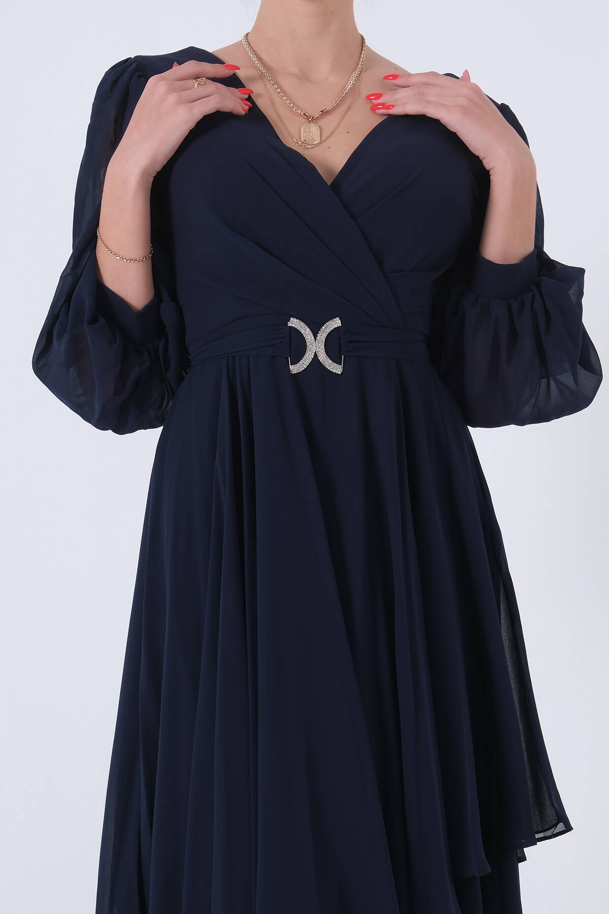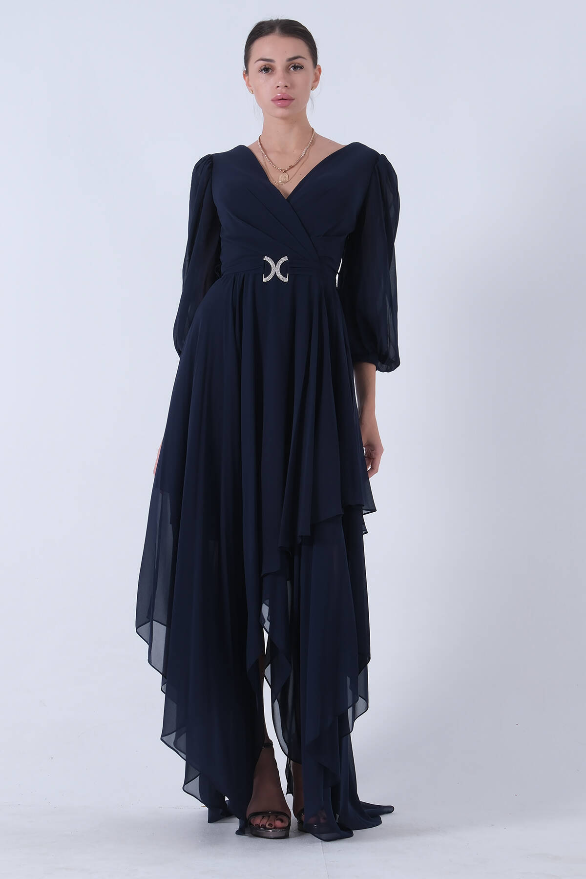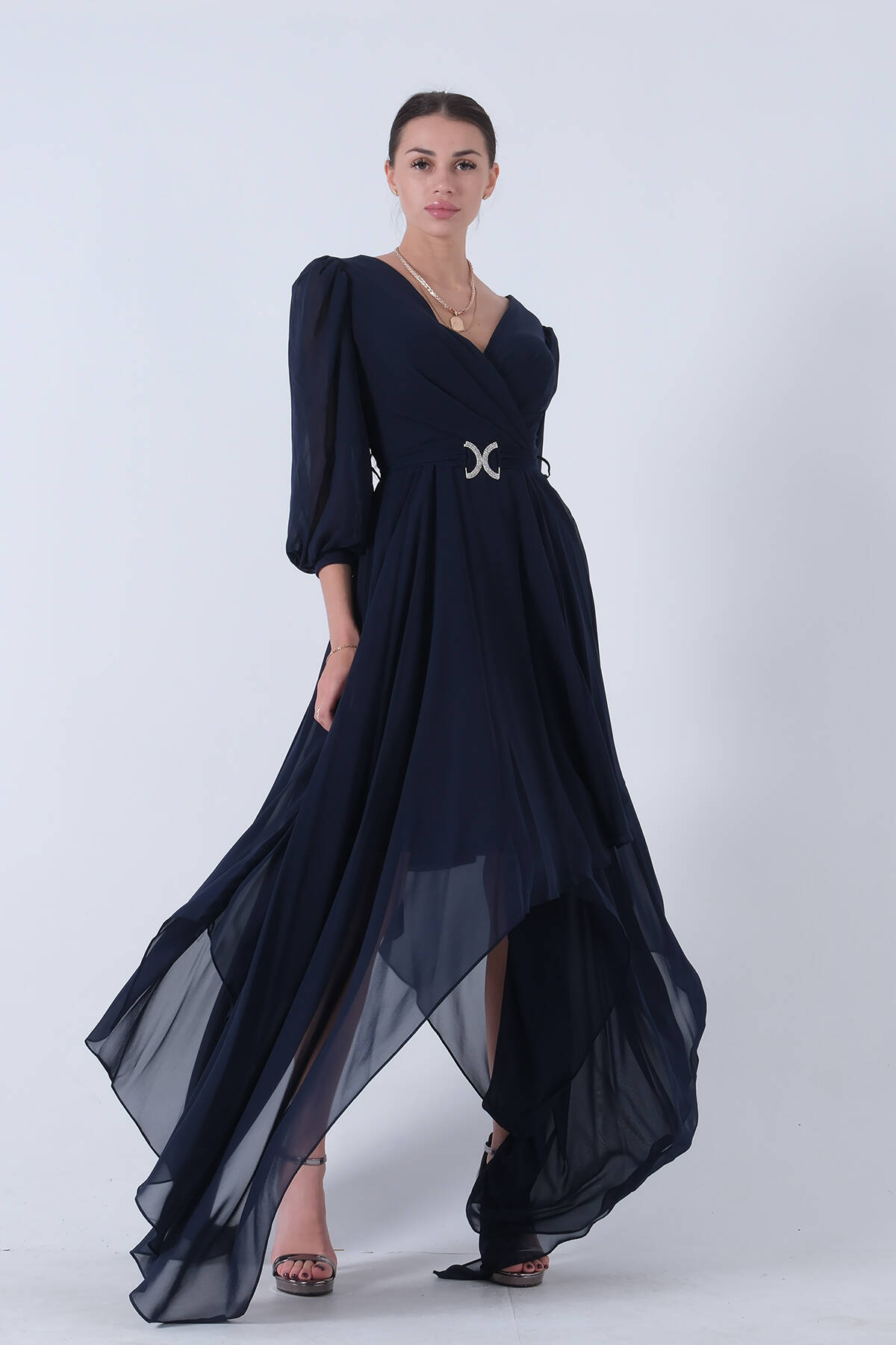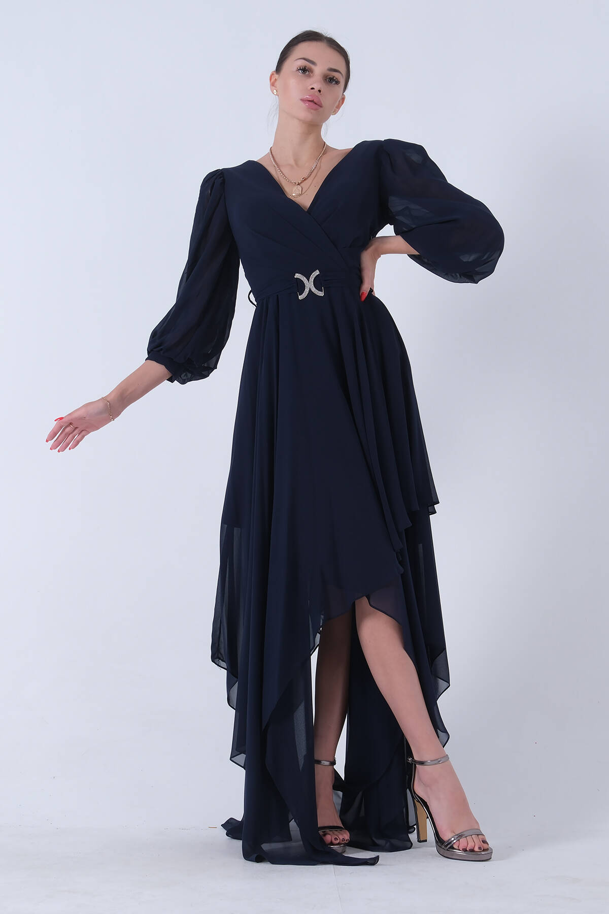 Modelin Ölçüleri : Boy: 1.80 cm / Göğüs: 88 cm / Bel: 69 cm /Basen : 94 cm Mankenin Üzerindeki Ürün 38/M Bedendir %100 Polyester Uzun Balon Kol Kruvaze Yaka Seyyar Kemerli Eteği Asimetrik Kesim Şifon Abiye Elbise Ürün Boyu : En uzun :178 En kısa : 105 cm Stüdyo Çekimlerinde Renkler Işık Farklılıgından Dolayı Değişiklik Gösterebilir (Dikkat! Ürünlerimiz güvenlik bandı ile gönderilmektedir . Güvenlik bandı olmayan ürünlerin iadesi kabul edilmeyecektir)