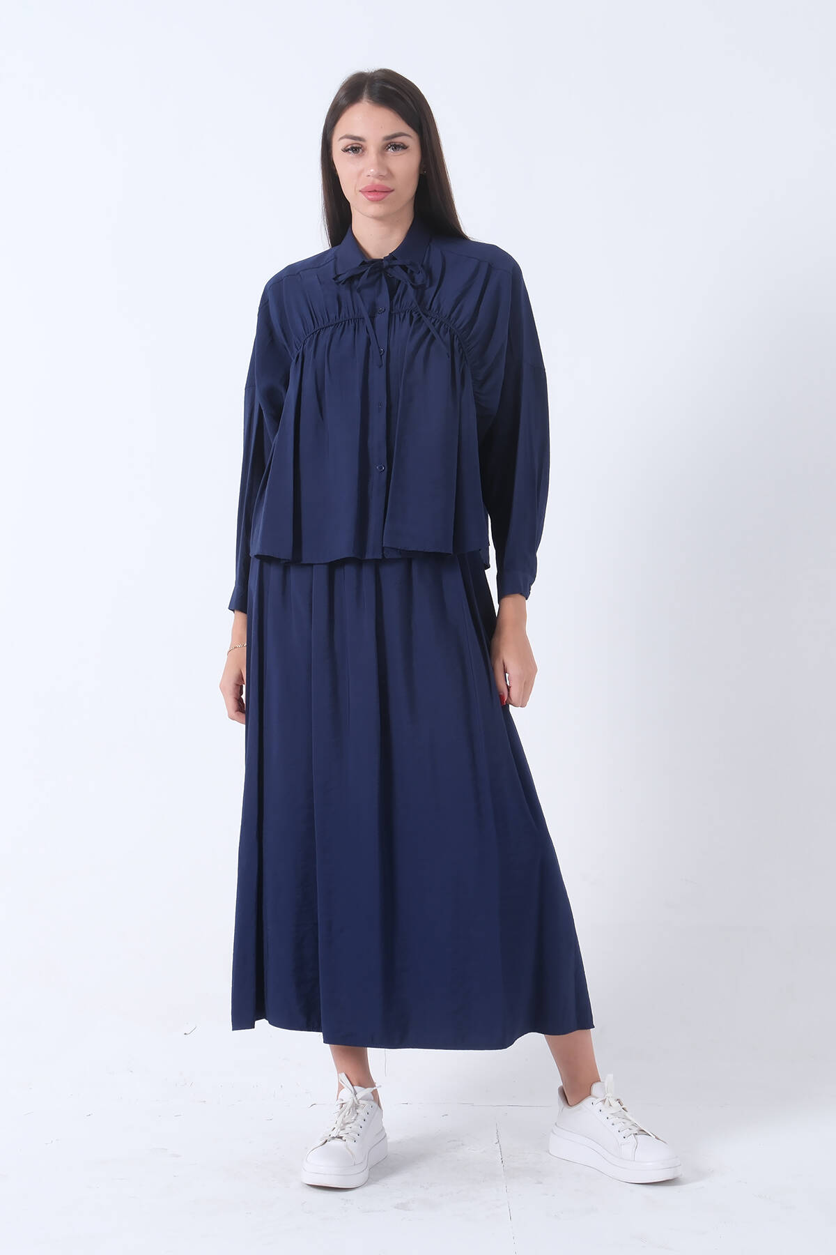 Lacivert Bel Bağlama Detaylı Etekli Rahat Takım 422138.02