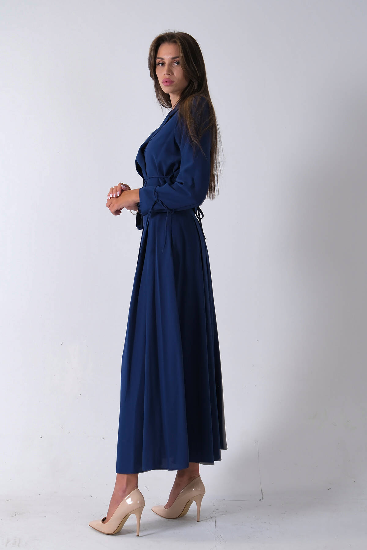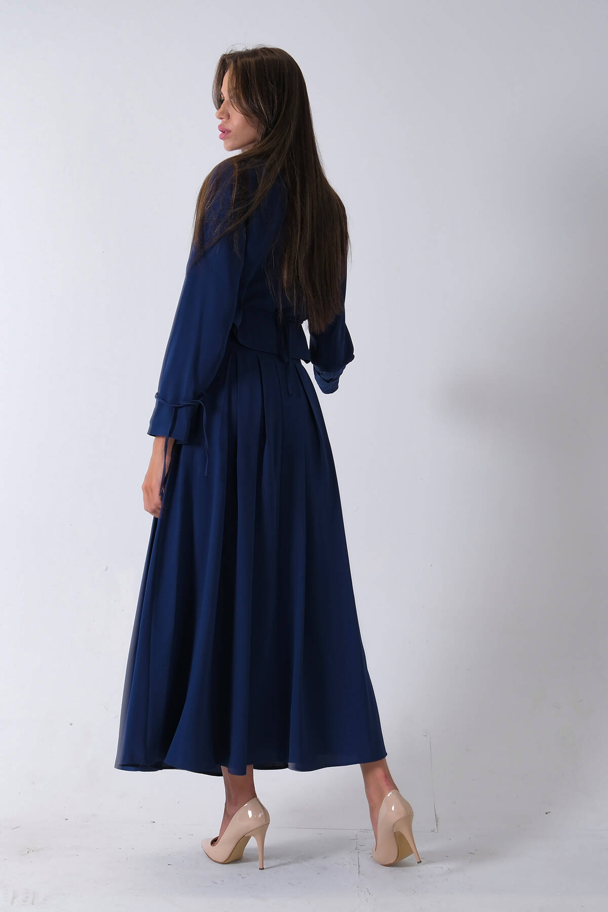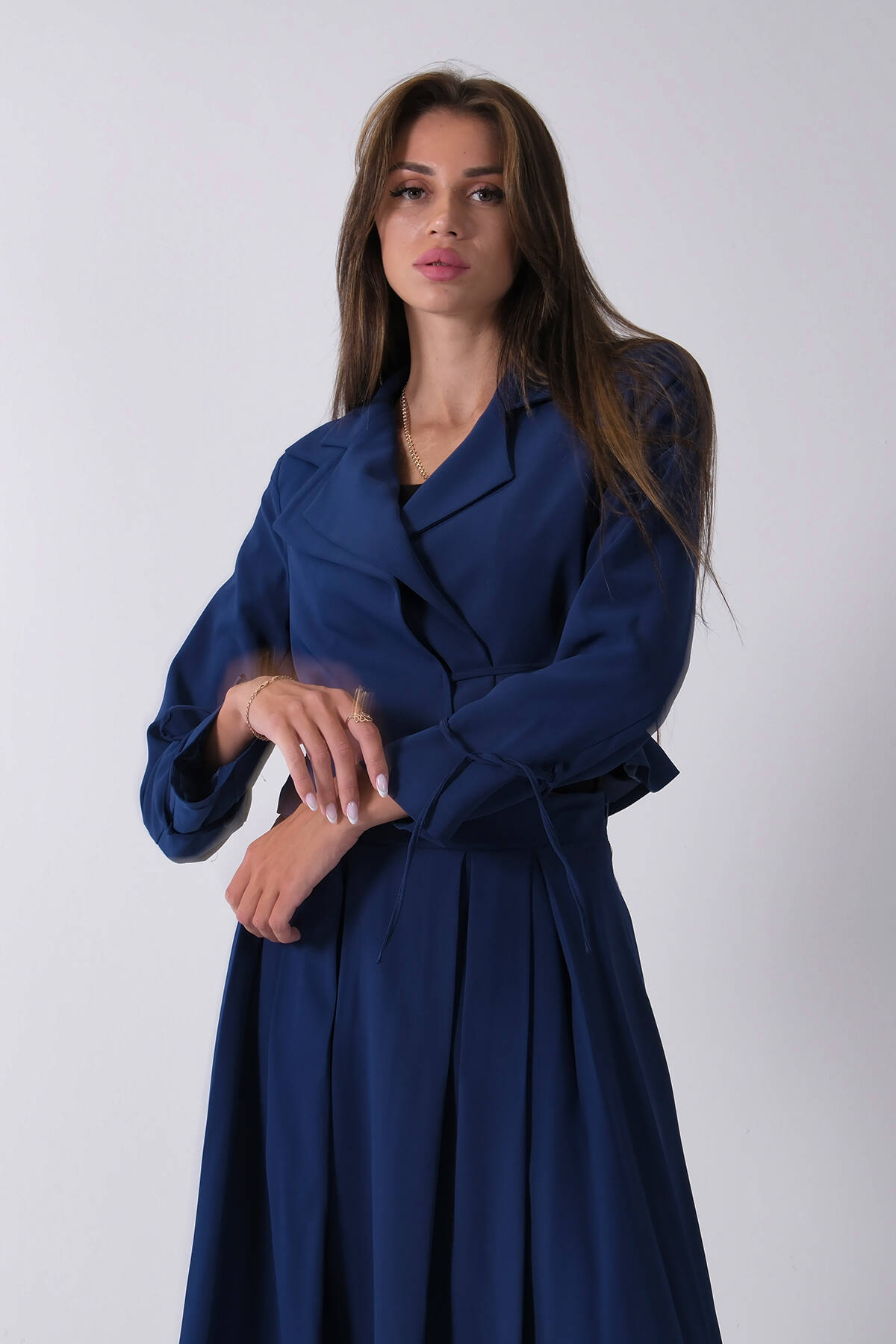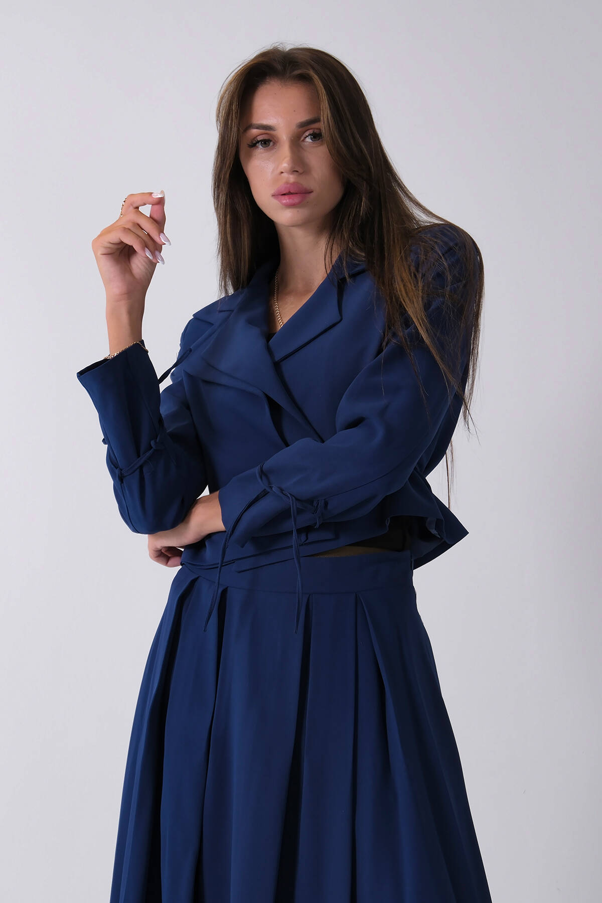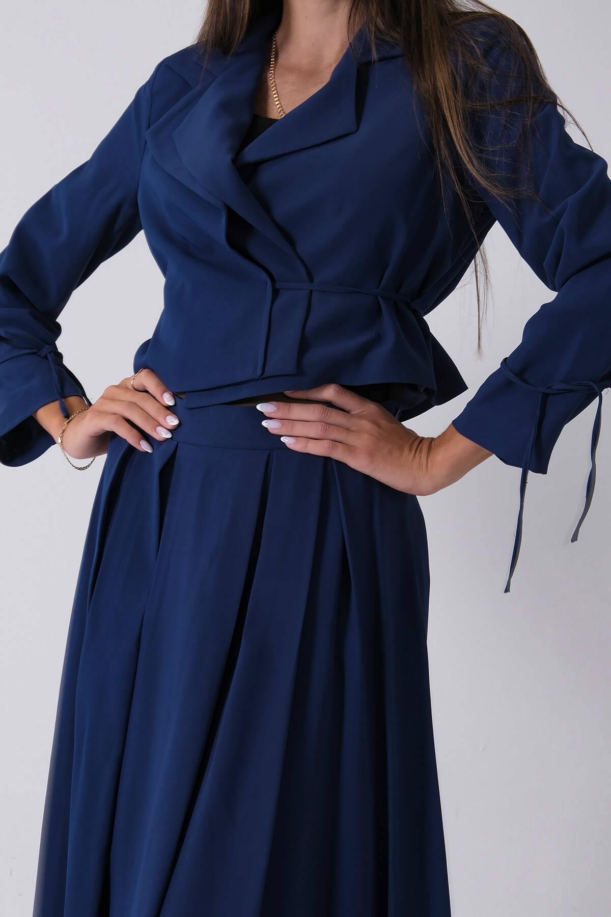 Lacivert Bel ve Bilek Bağlama Detaylı Crop Ceket Etekli Takım 4592249.02