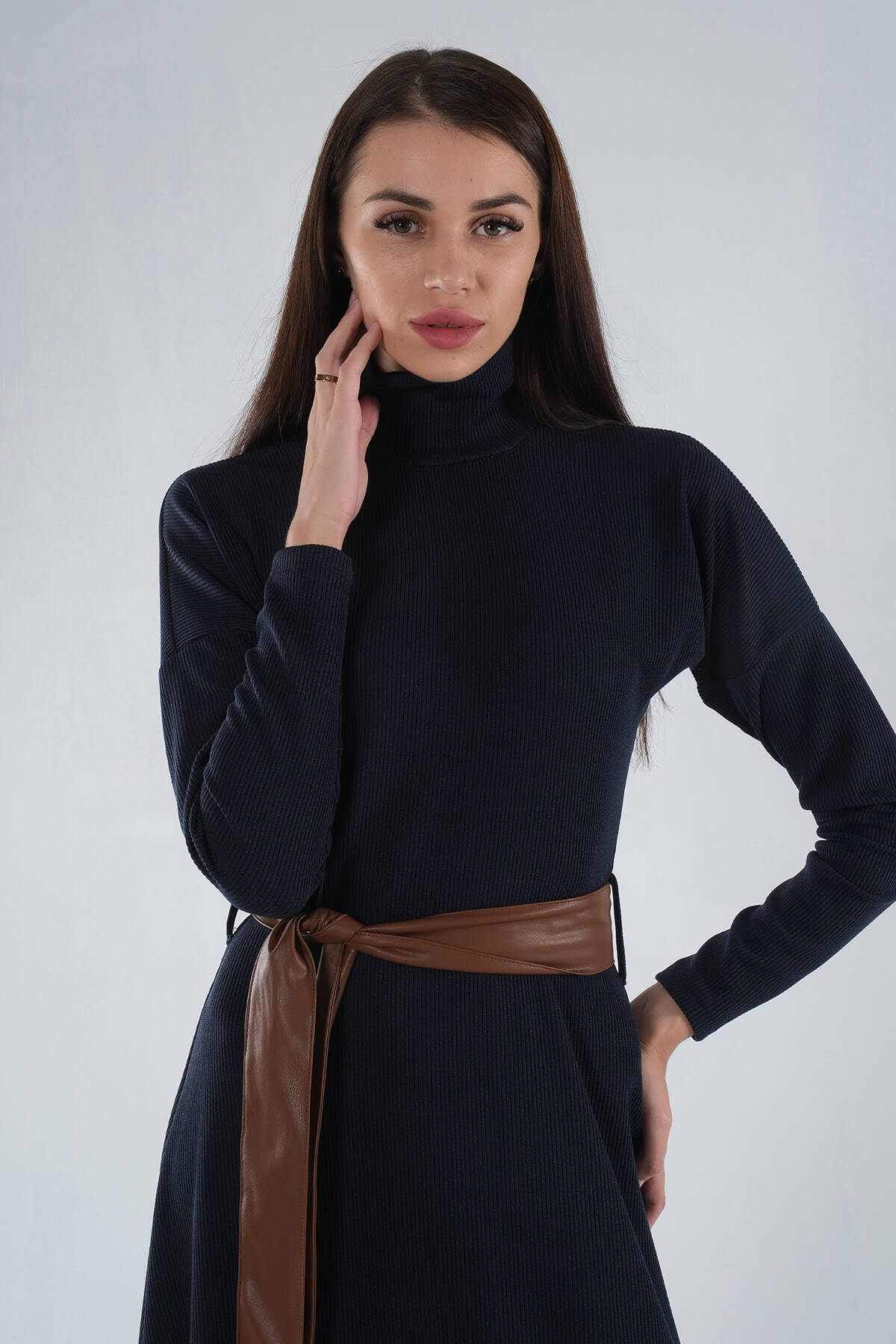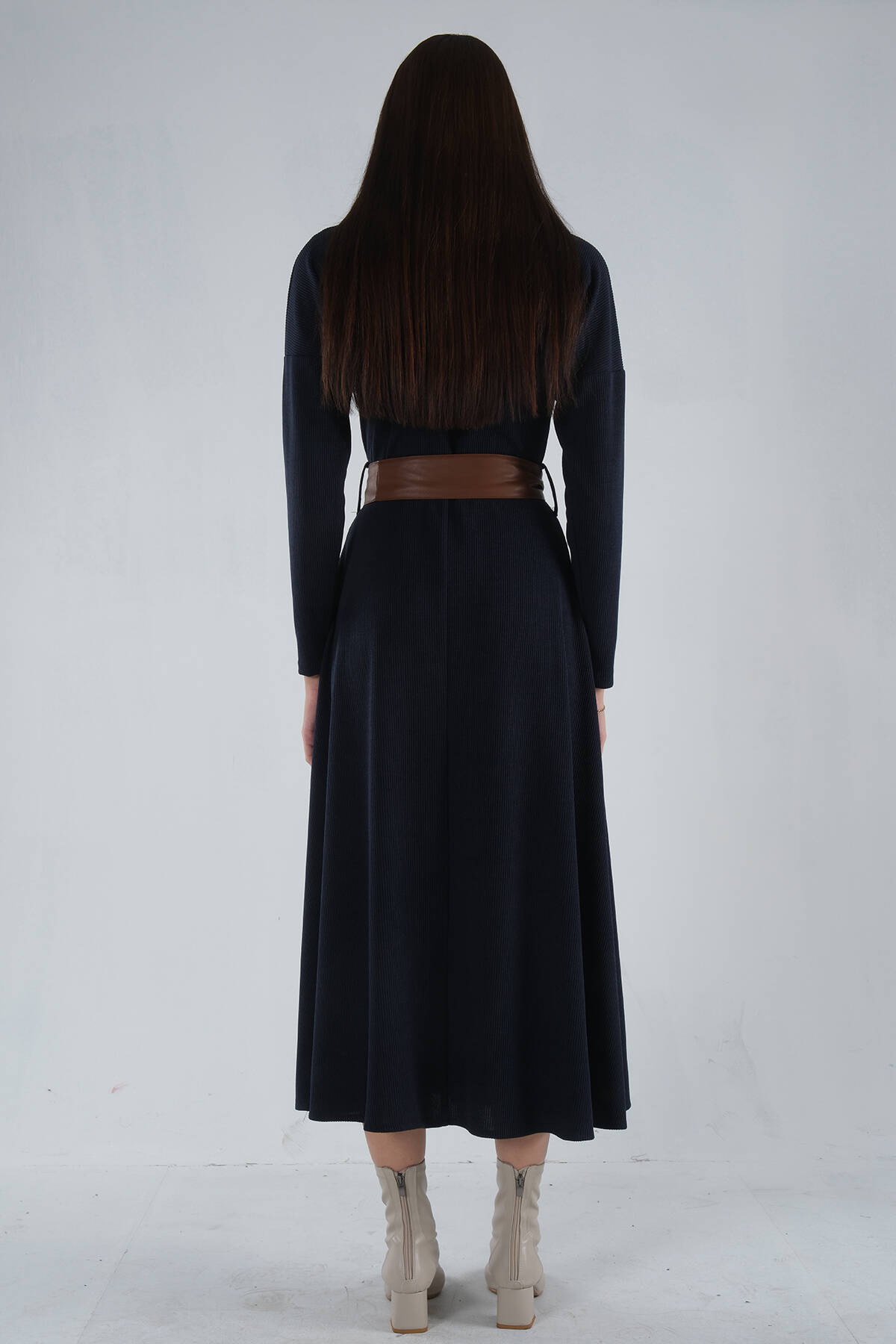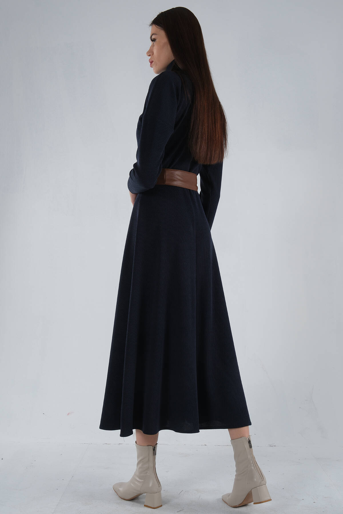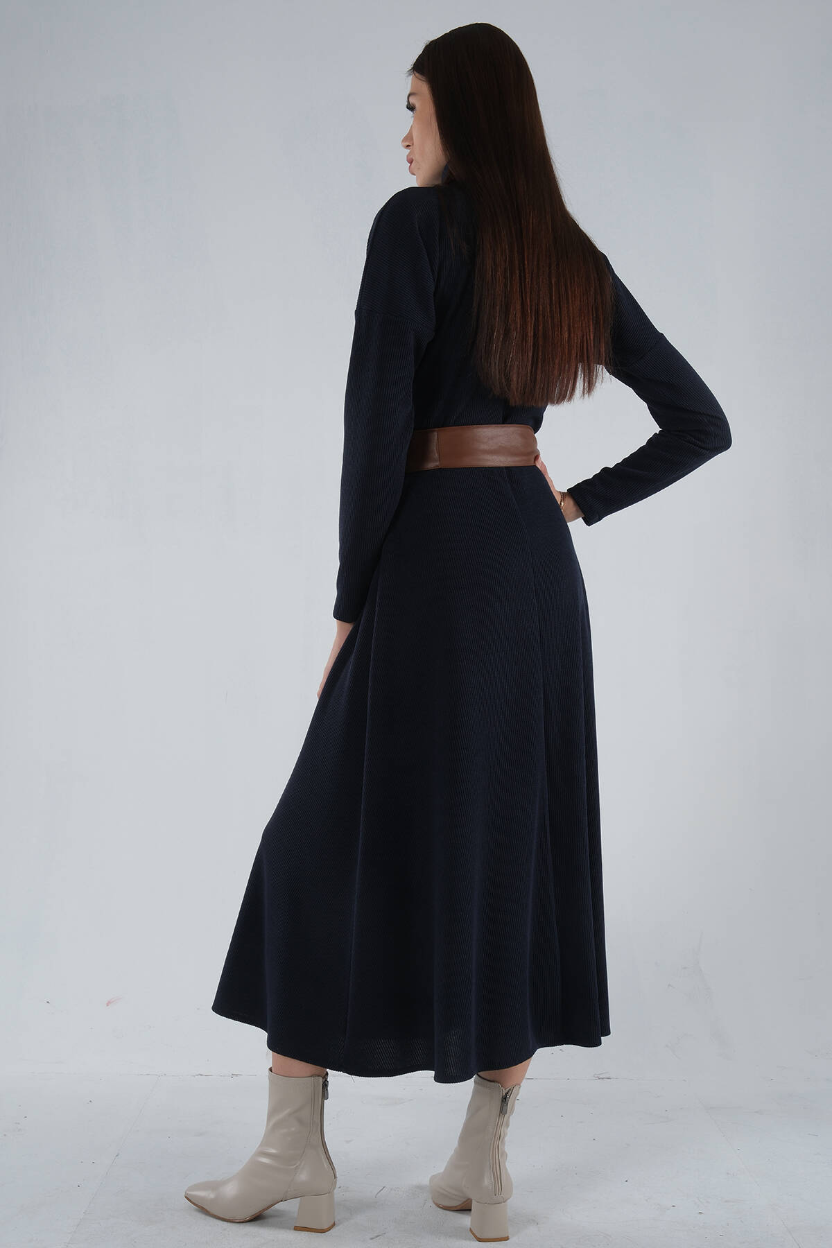 Lacivert Beli Kemerli Örme Elbise 0104030.02
