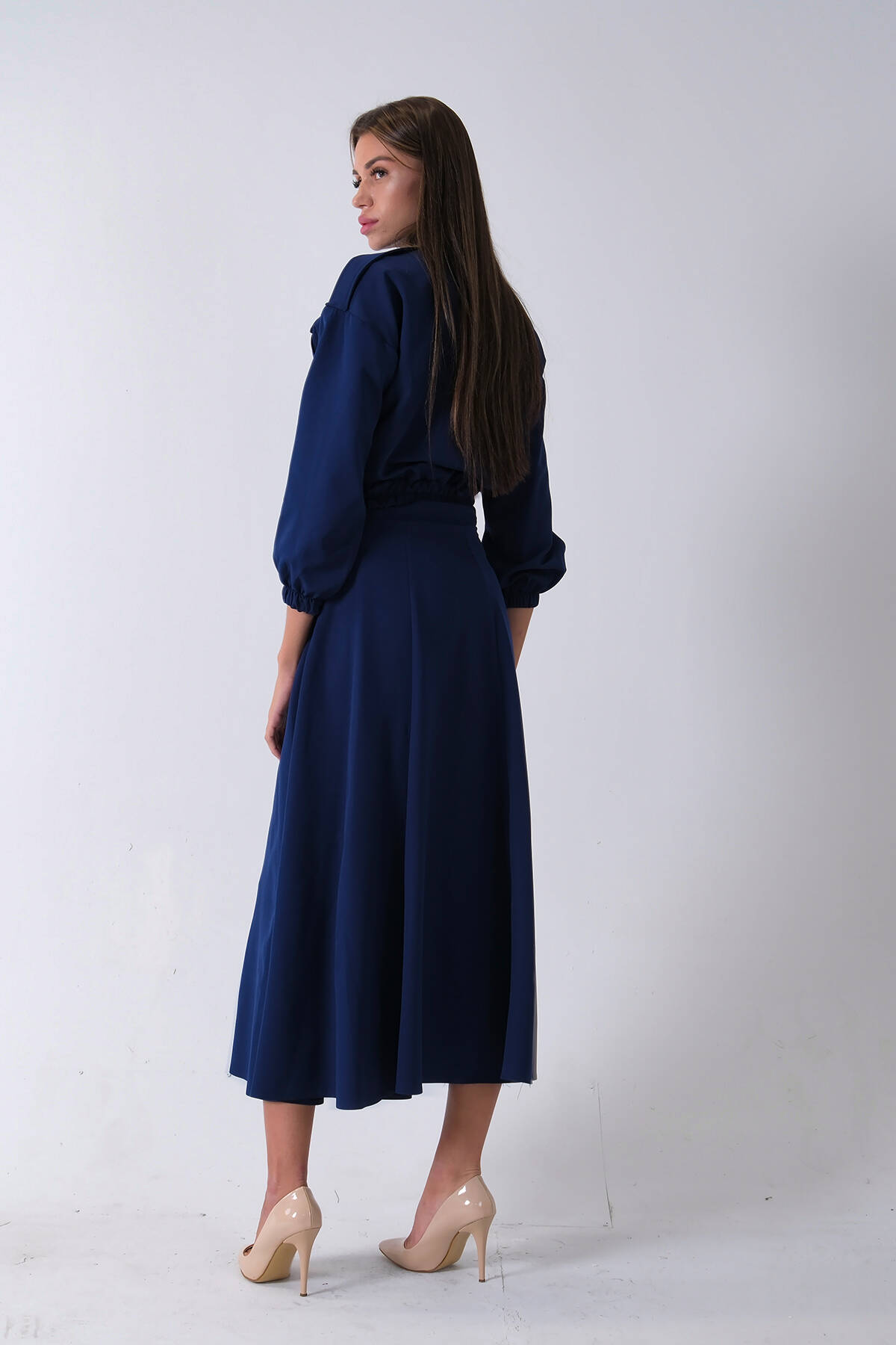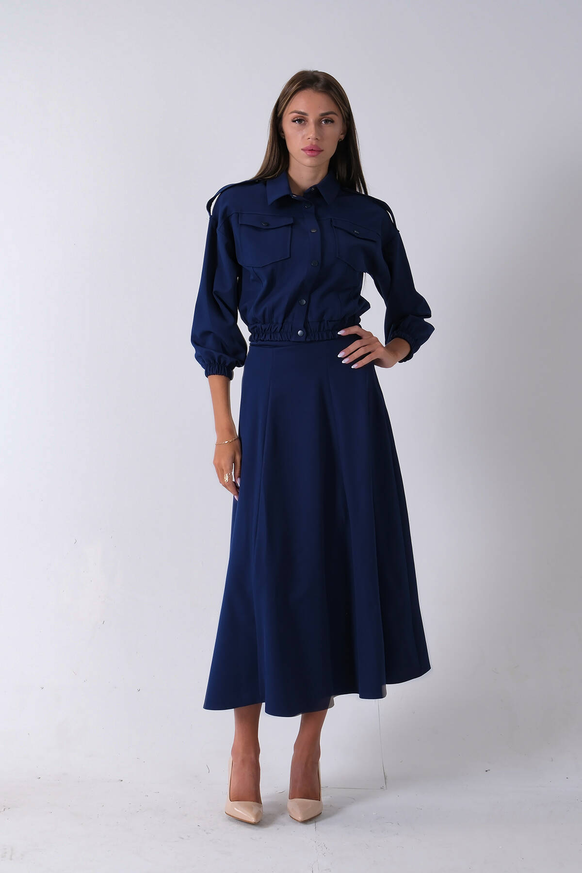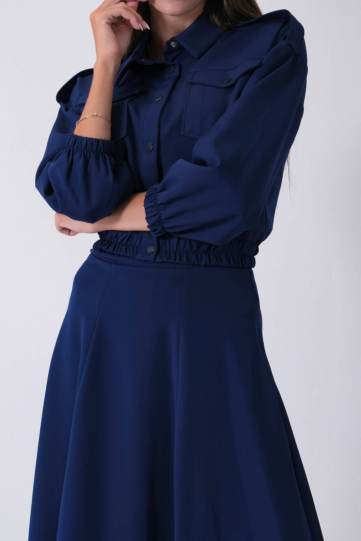 Lacivert Beli Lastikli Cepli Ceket ve Etek İkili Takım 4595053.02