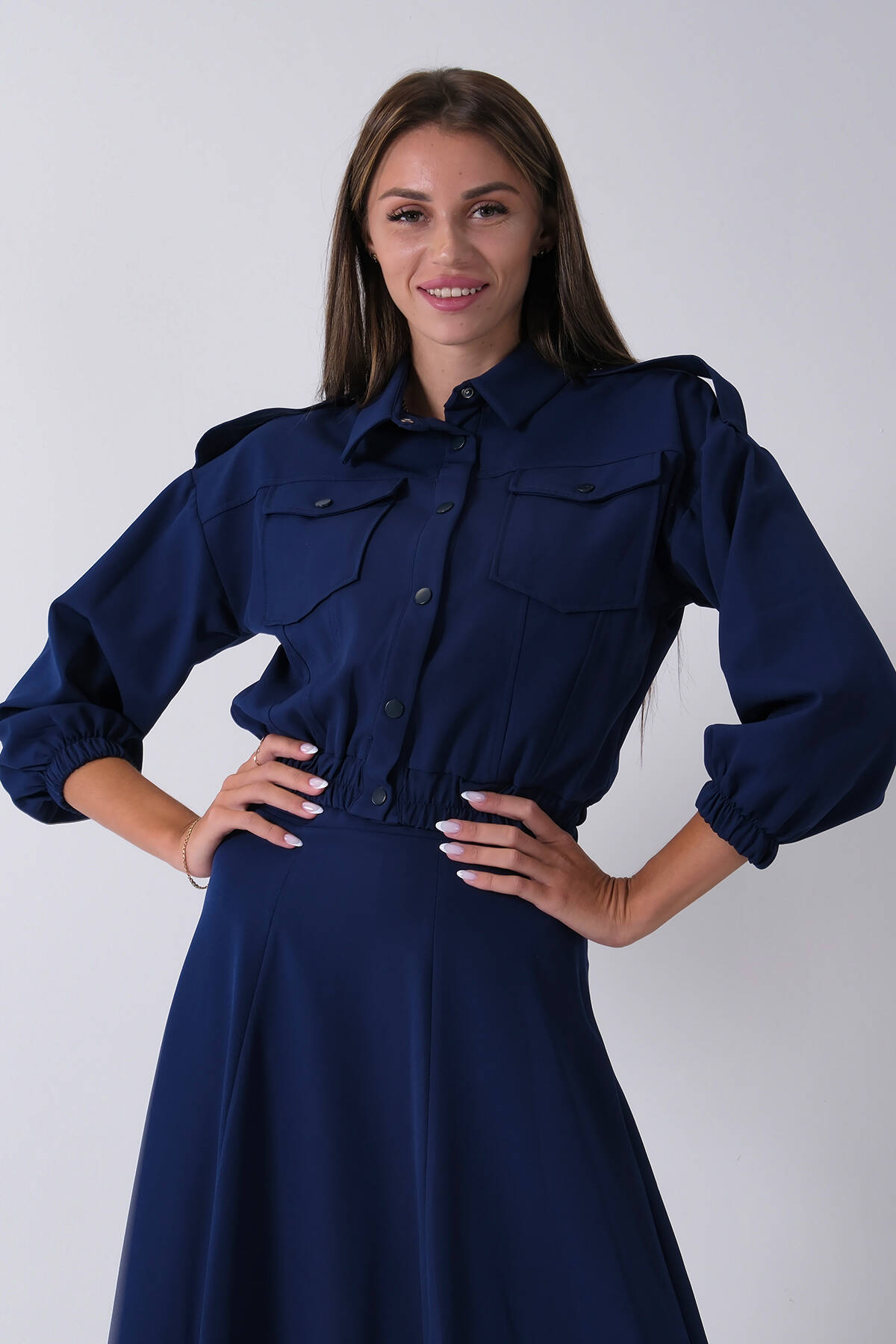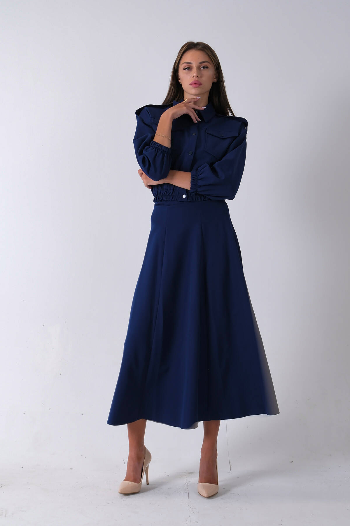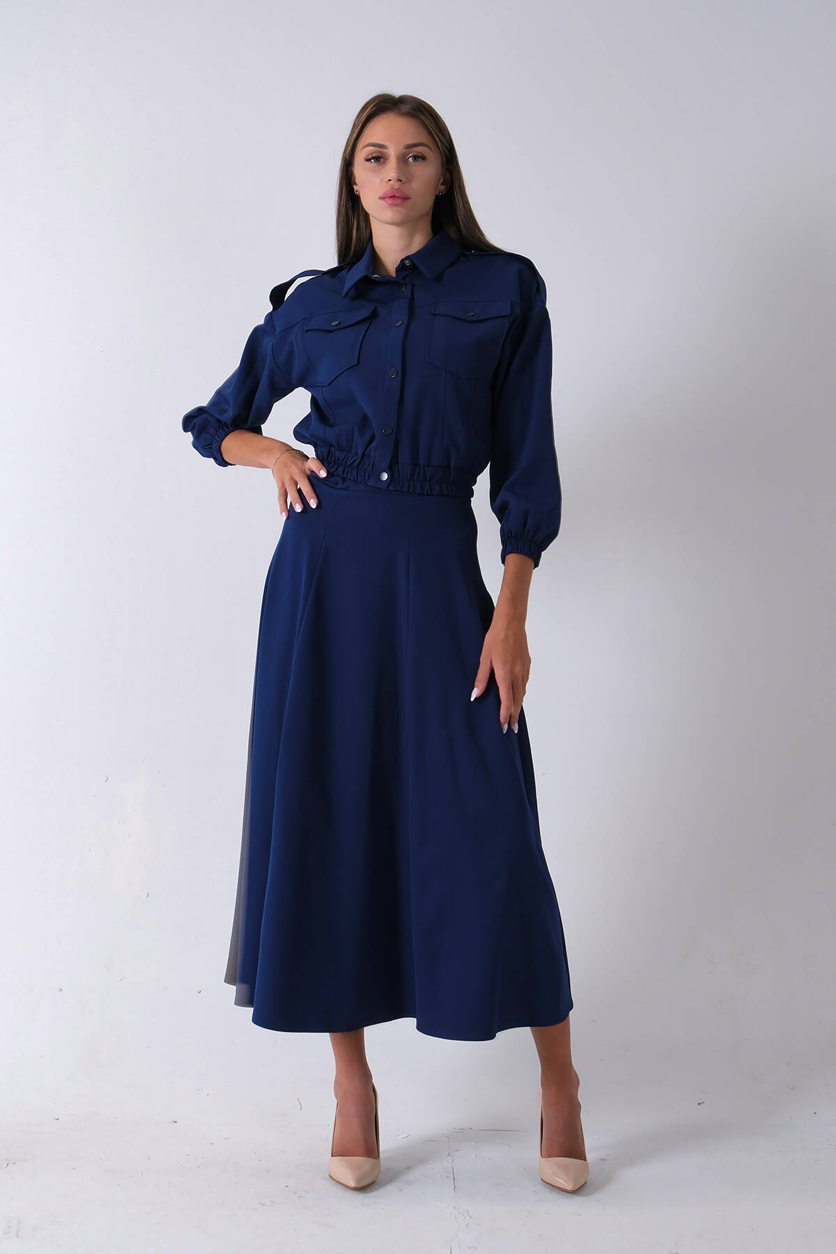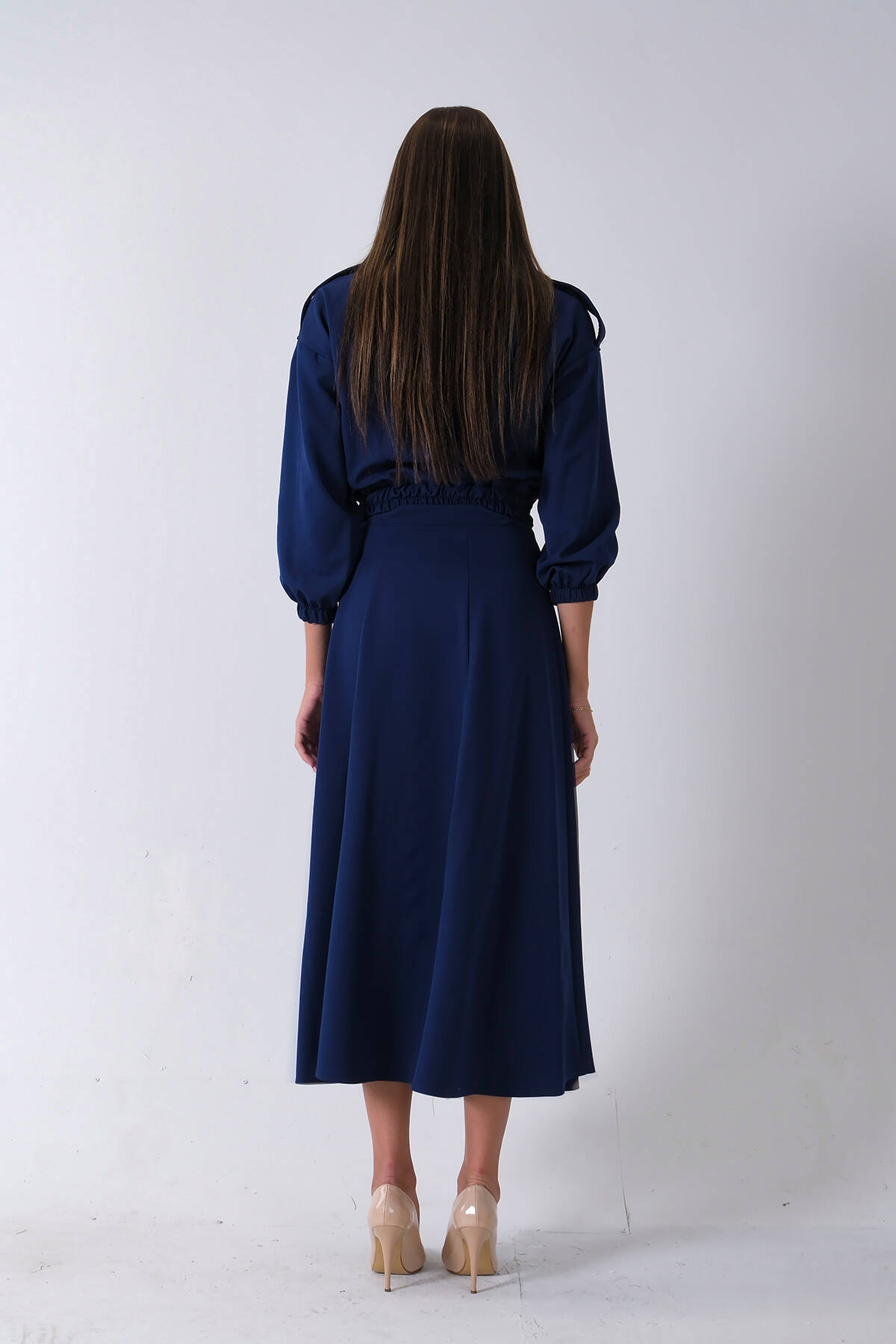 Lacivert Beli Lastikli Cepli Ceket ve Etek İkili Takım 4595053.02