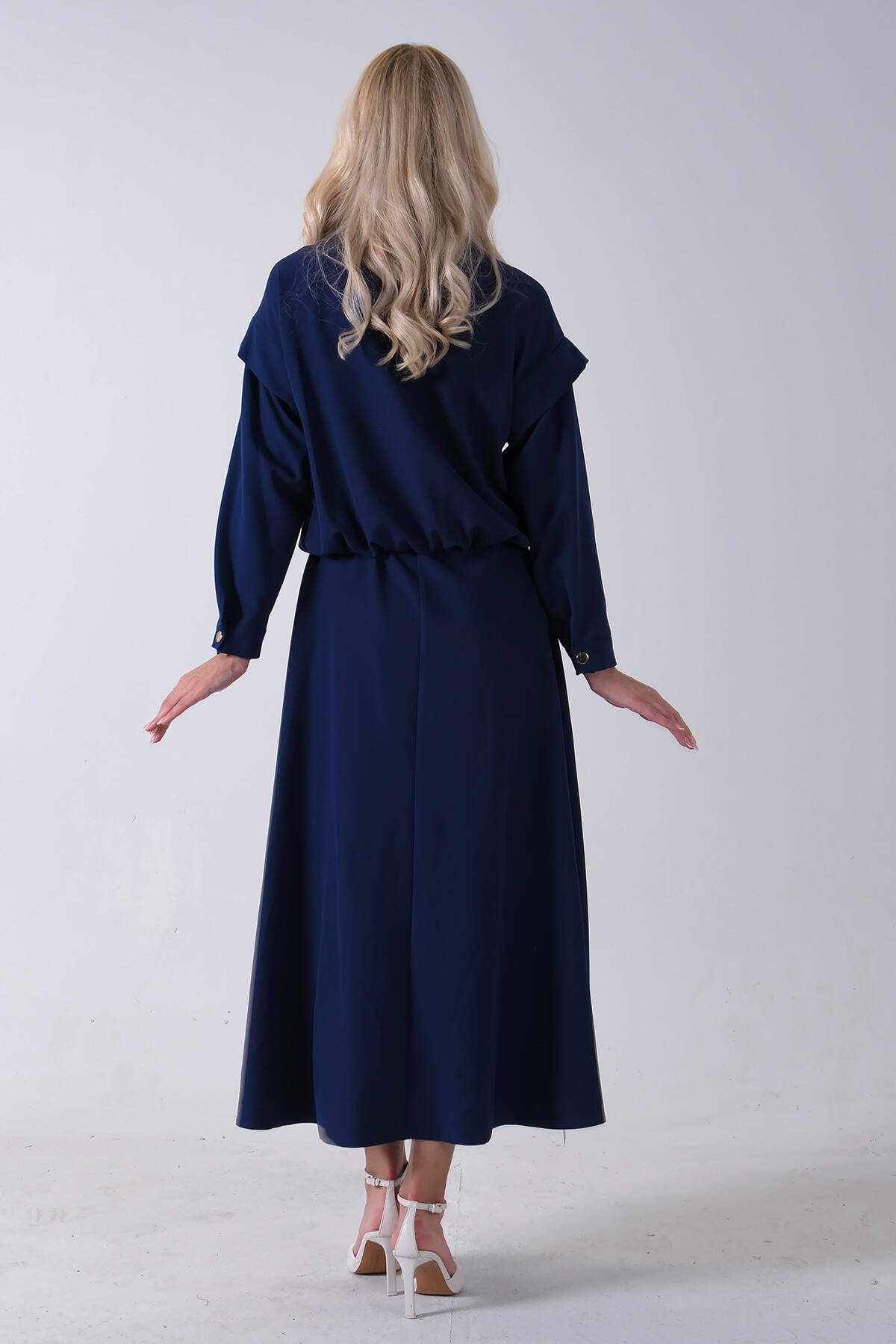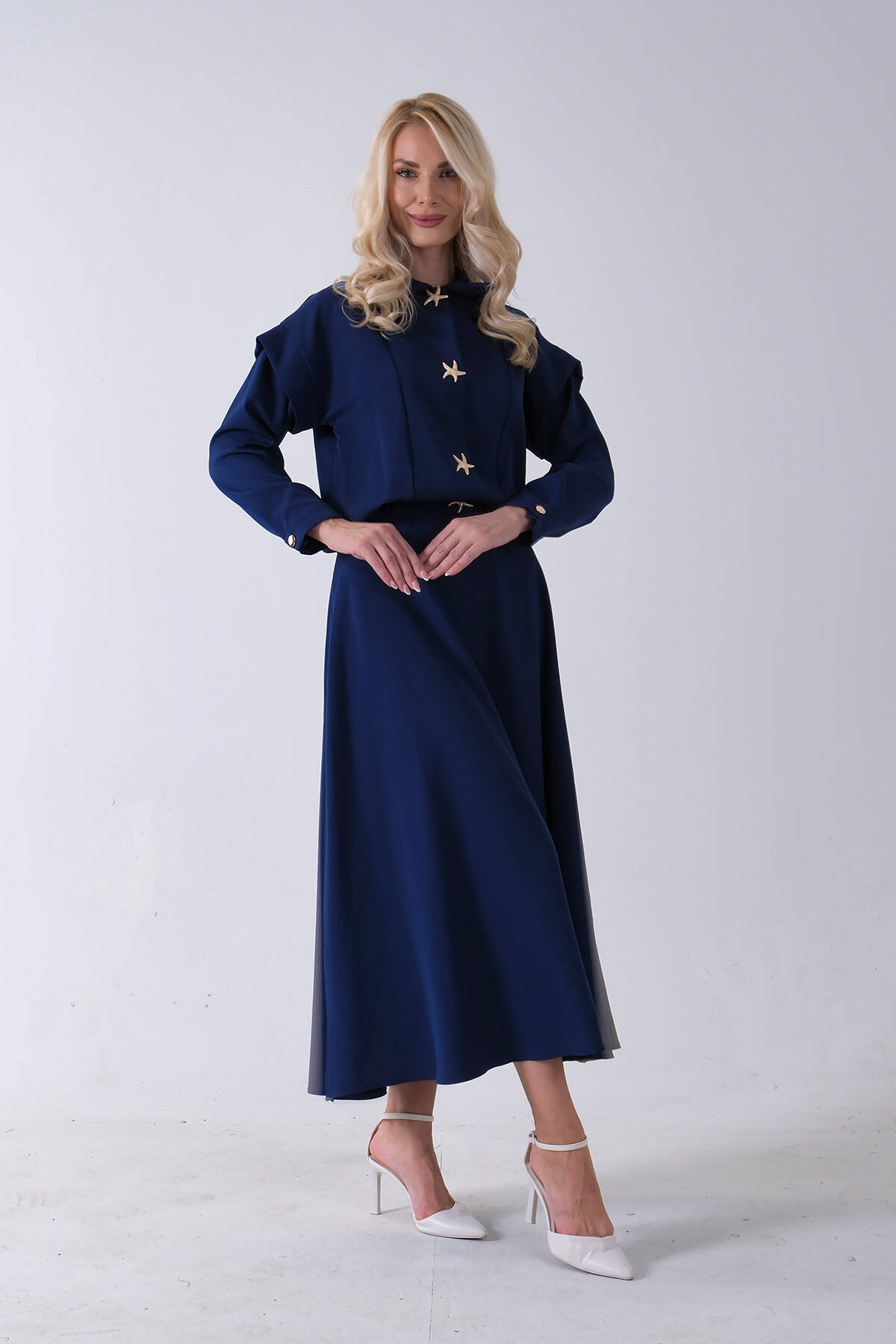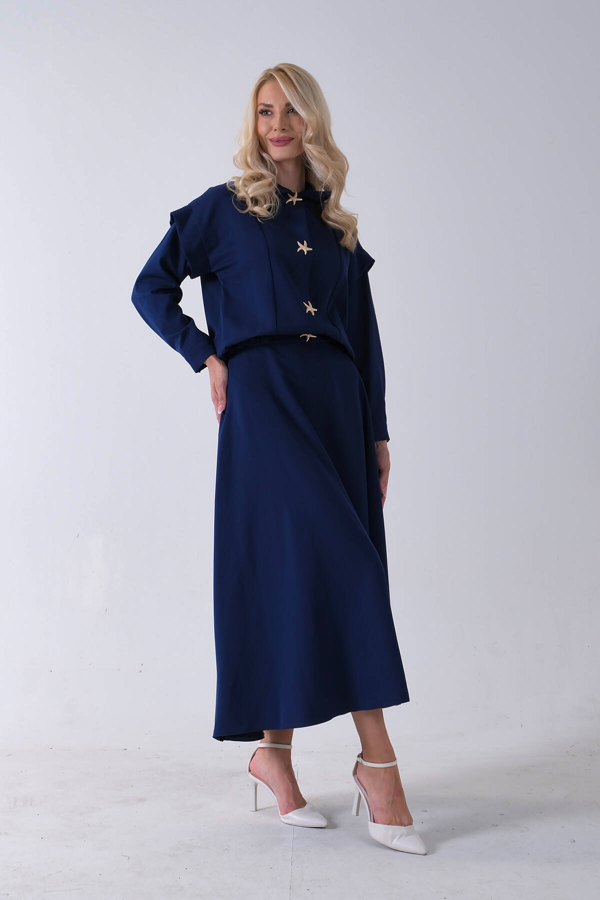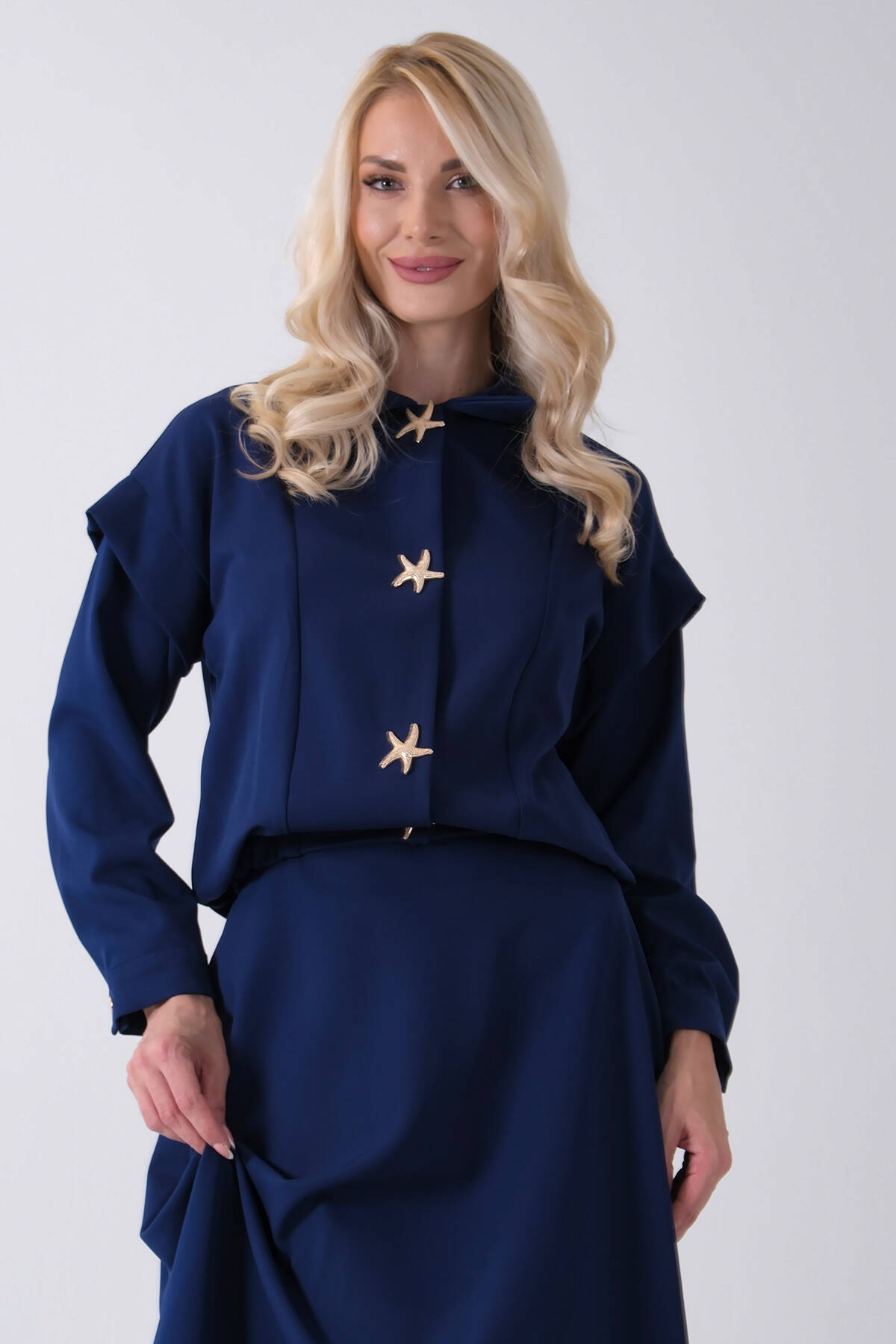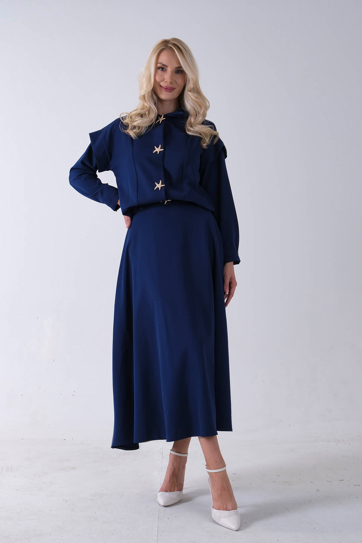 Lacivert Beli Lastikli Deniz Yıldızı Çıt Çıt Kapamalı Ceket Detaylı Etekli Takım 4592269.02