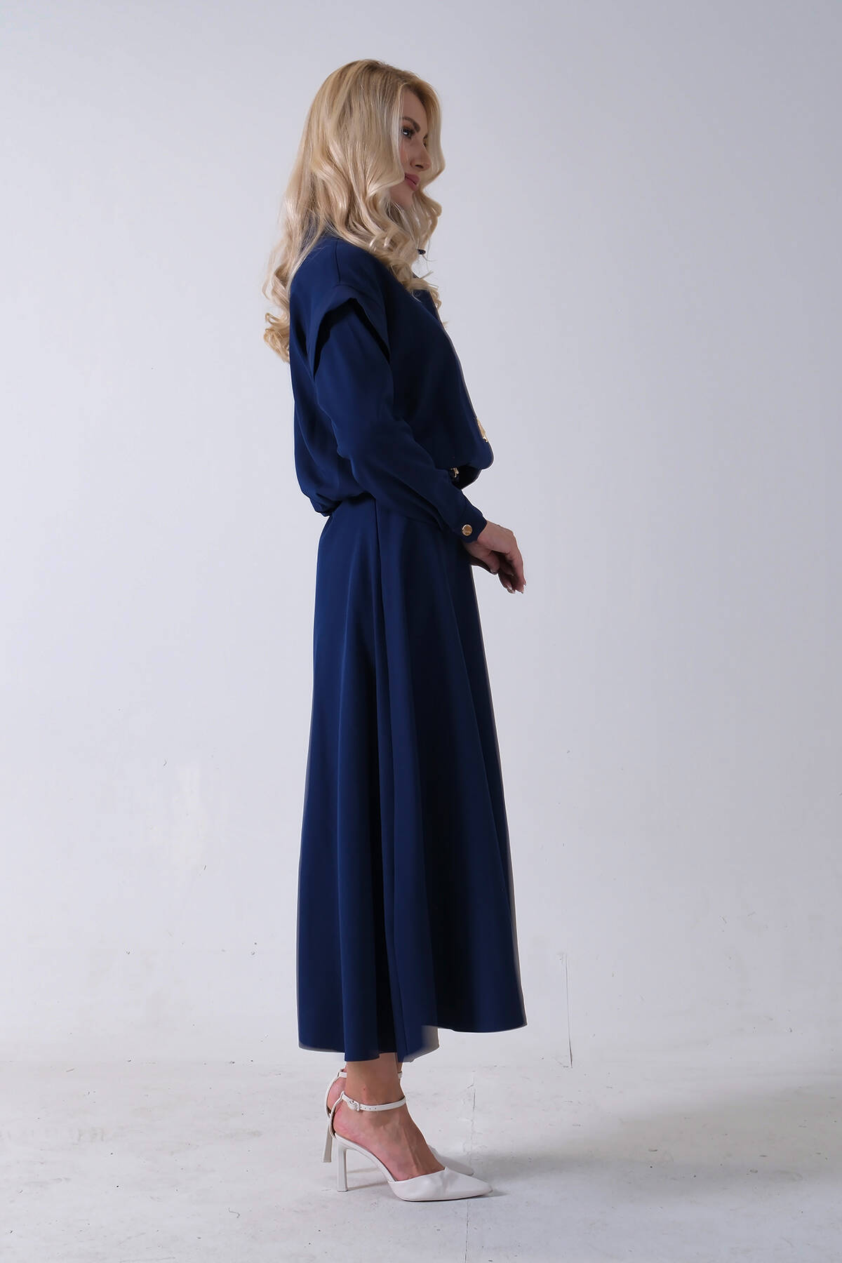 Lacivert Önü Düğme Kapamalı Crop Ceket Etekli Tüvid Takım 45950601.02