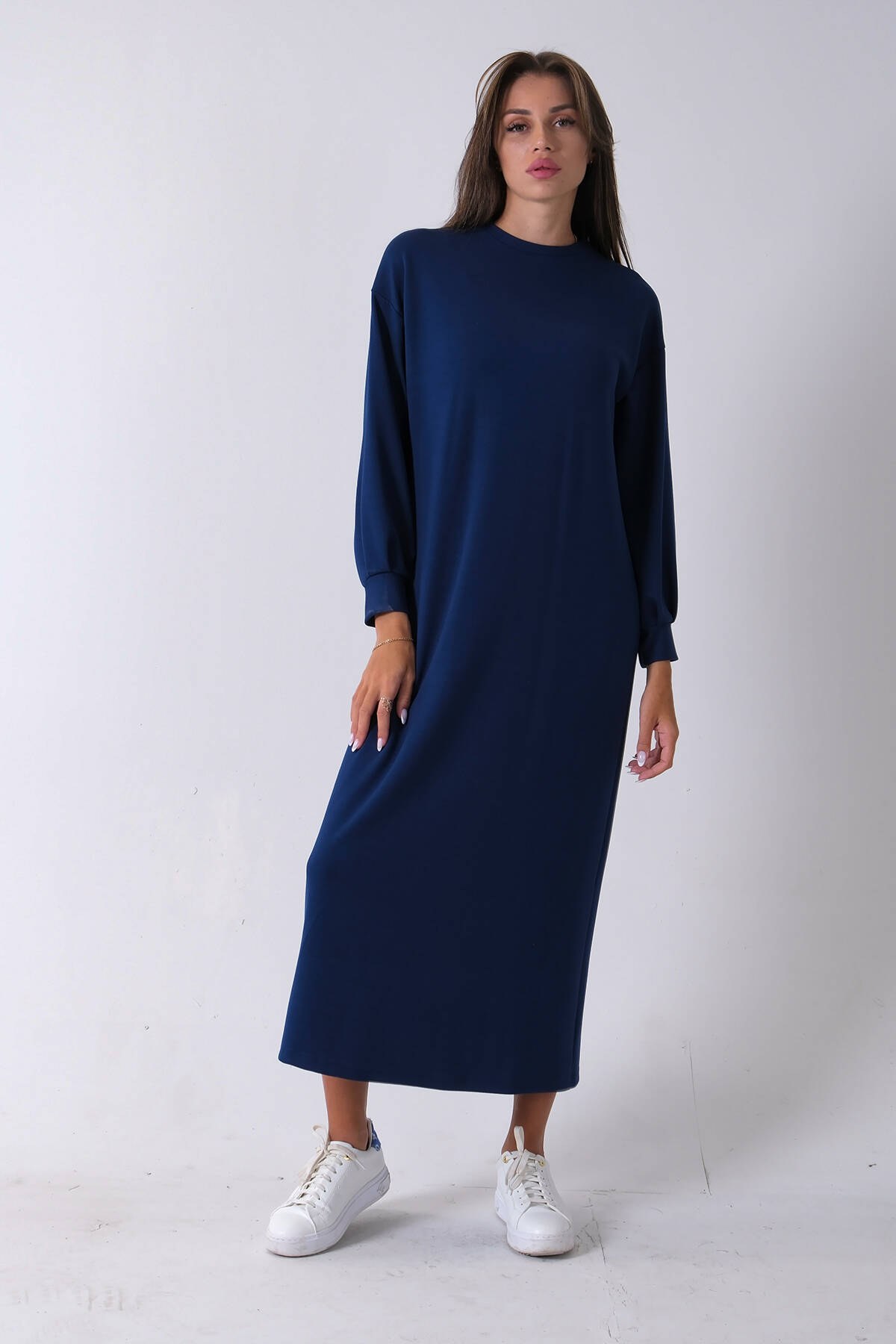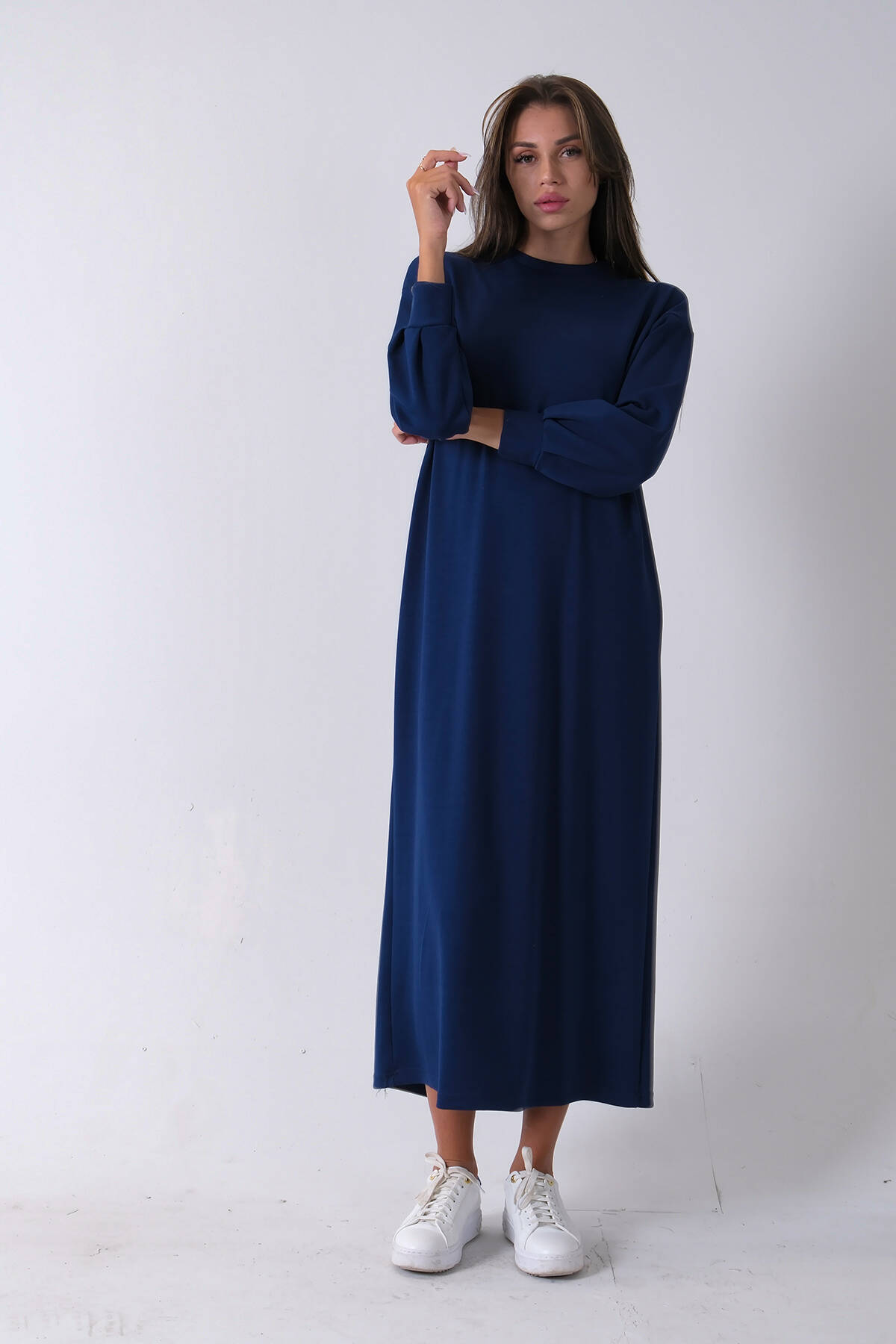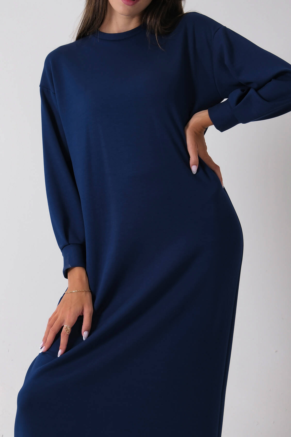 Lacivert Bisiklet Yaka Scuba Tesettür Elbise 4593445.02