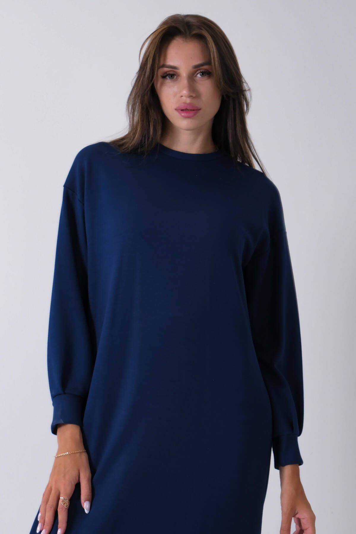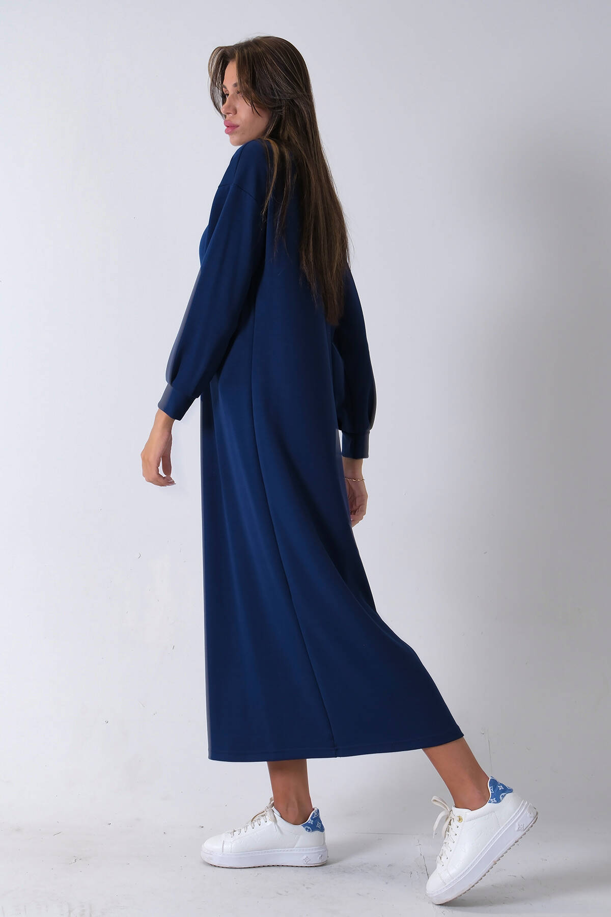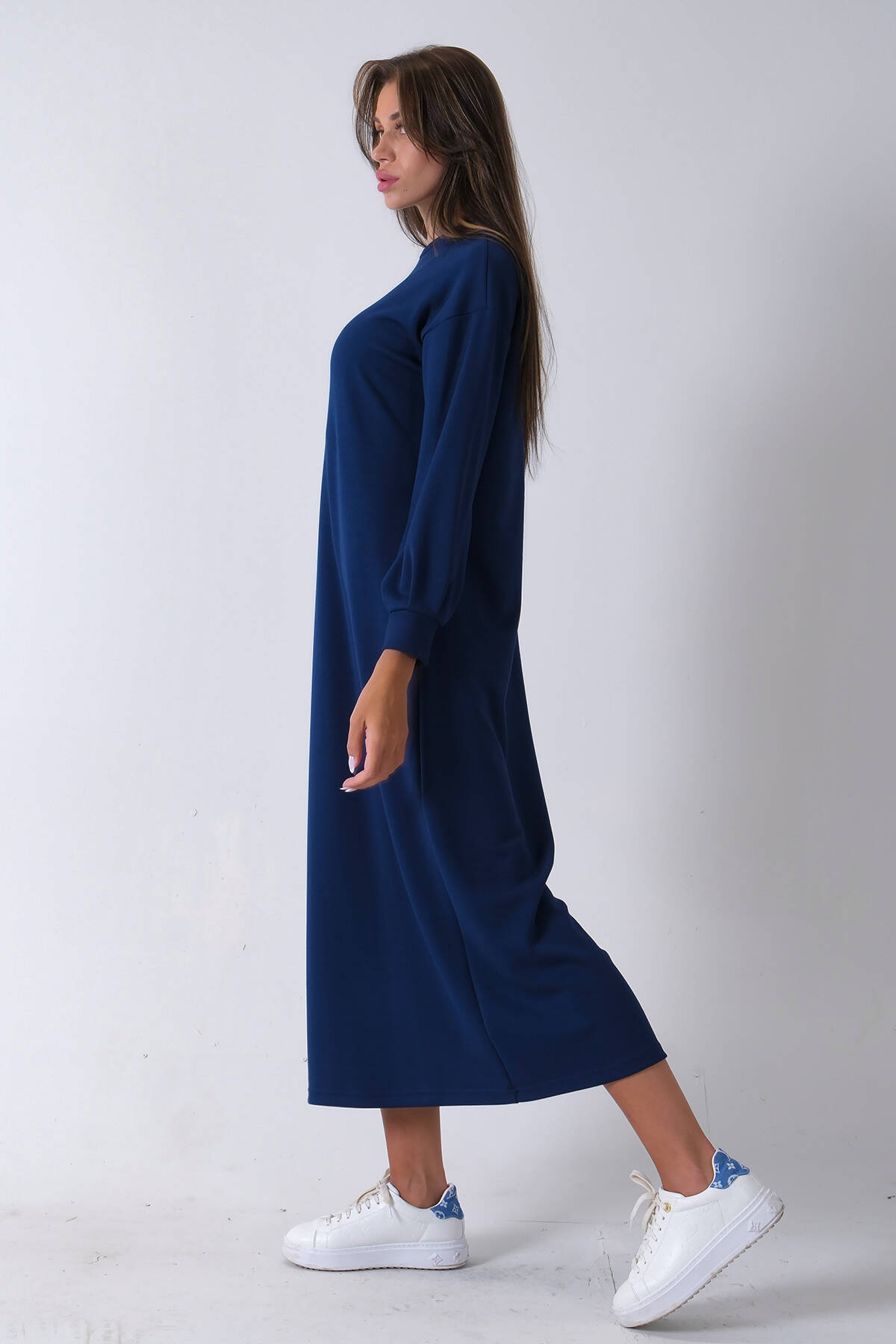 Lacivert Bisiklet Yaka Scuba Tesettür Elbise 4593445.02