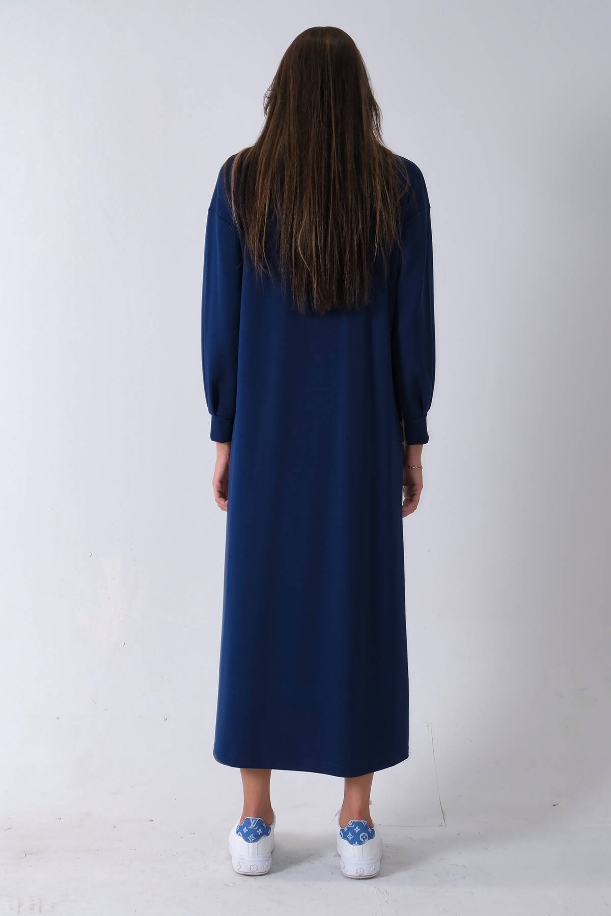 Lacivert Bileği Lastikli Bisiklet Yaka Tesettür Elbise 31061510.02