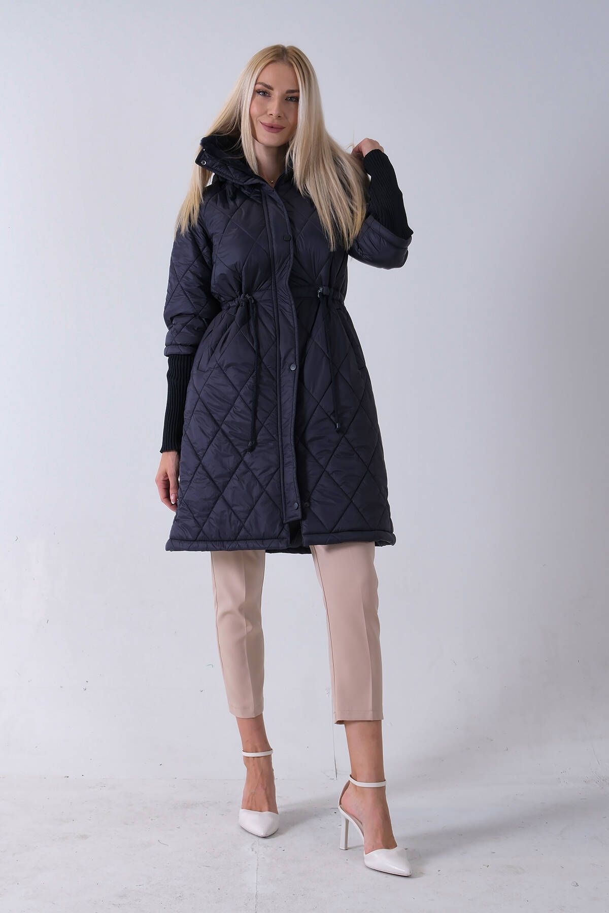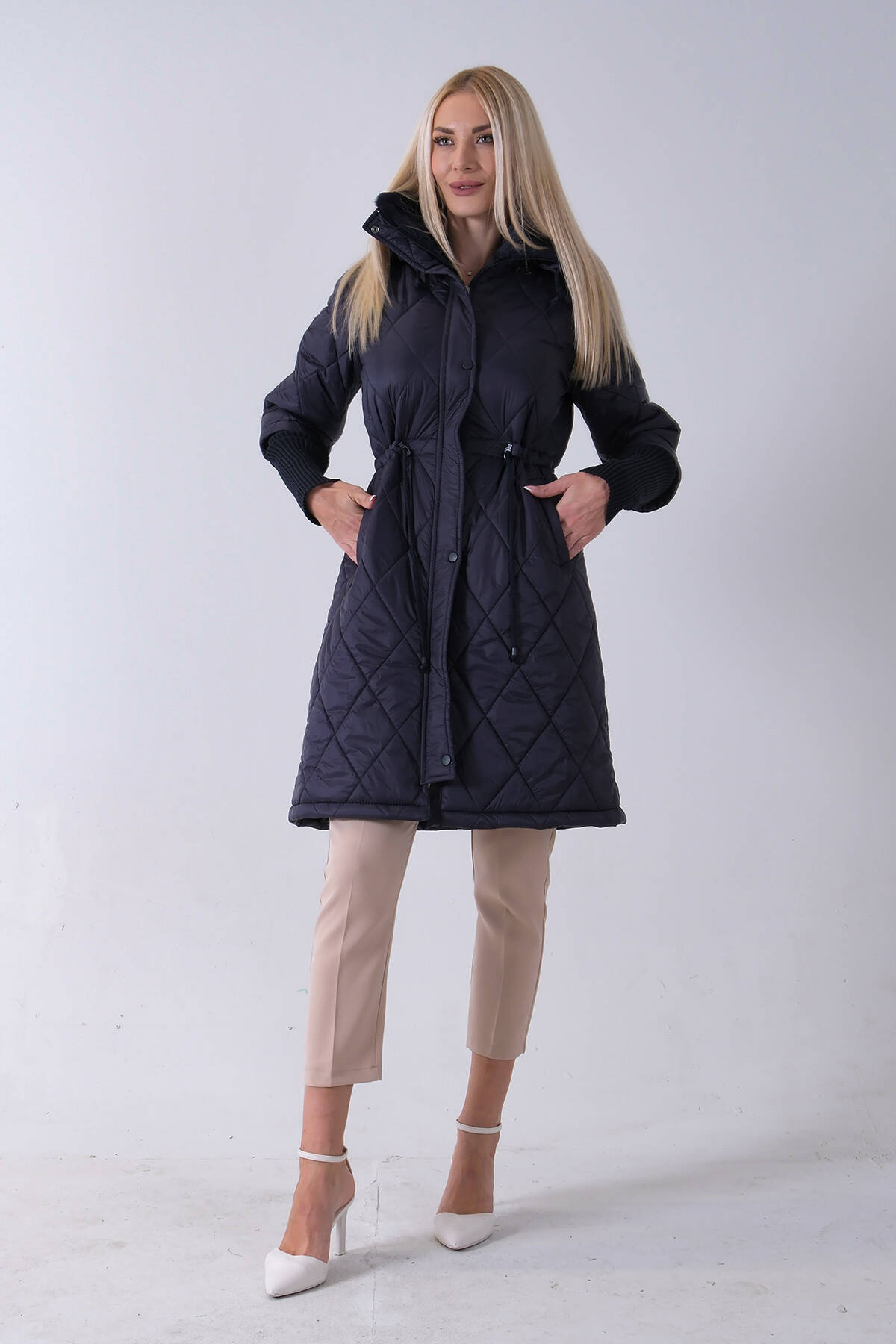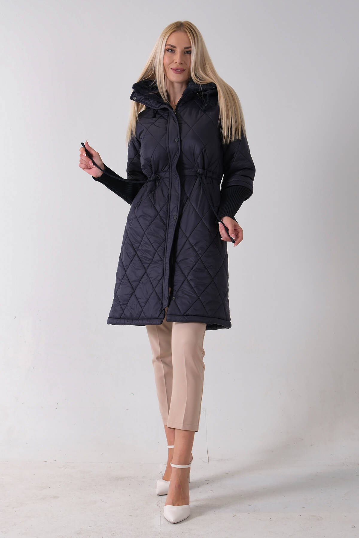 Lacivert Bileği Lastikli Kapüşonlu Baklava Desenli Şişme Mont 44520207.02