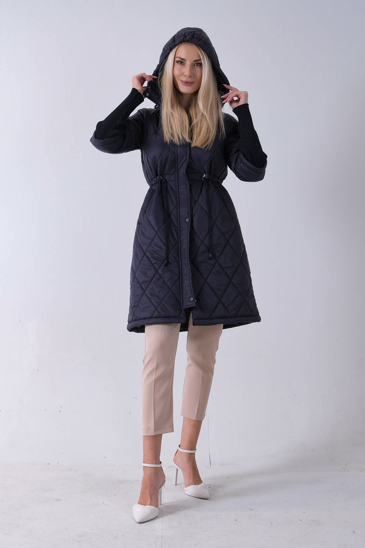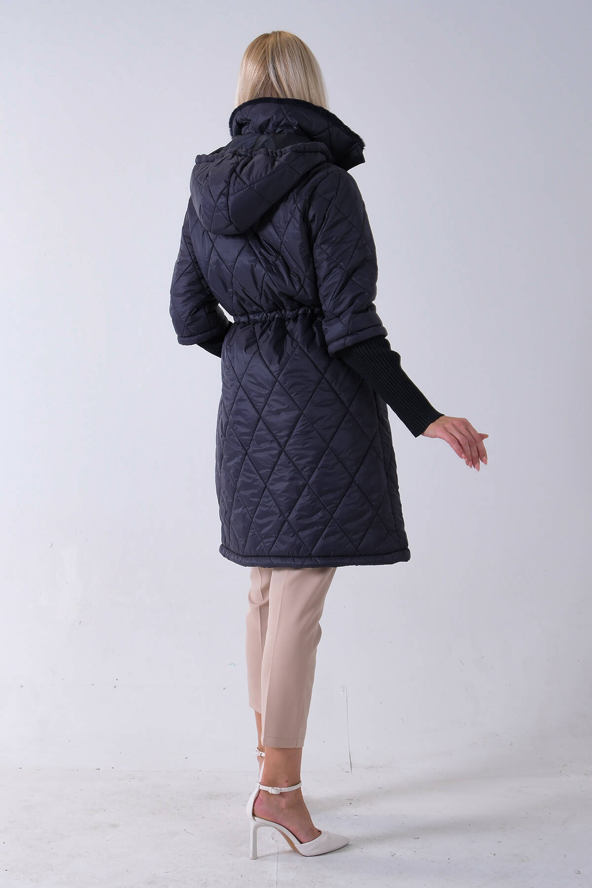 Taş Bileği Lastikli Kapüşonlu Baklava Desenli Şişme Mont 44520207.50