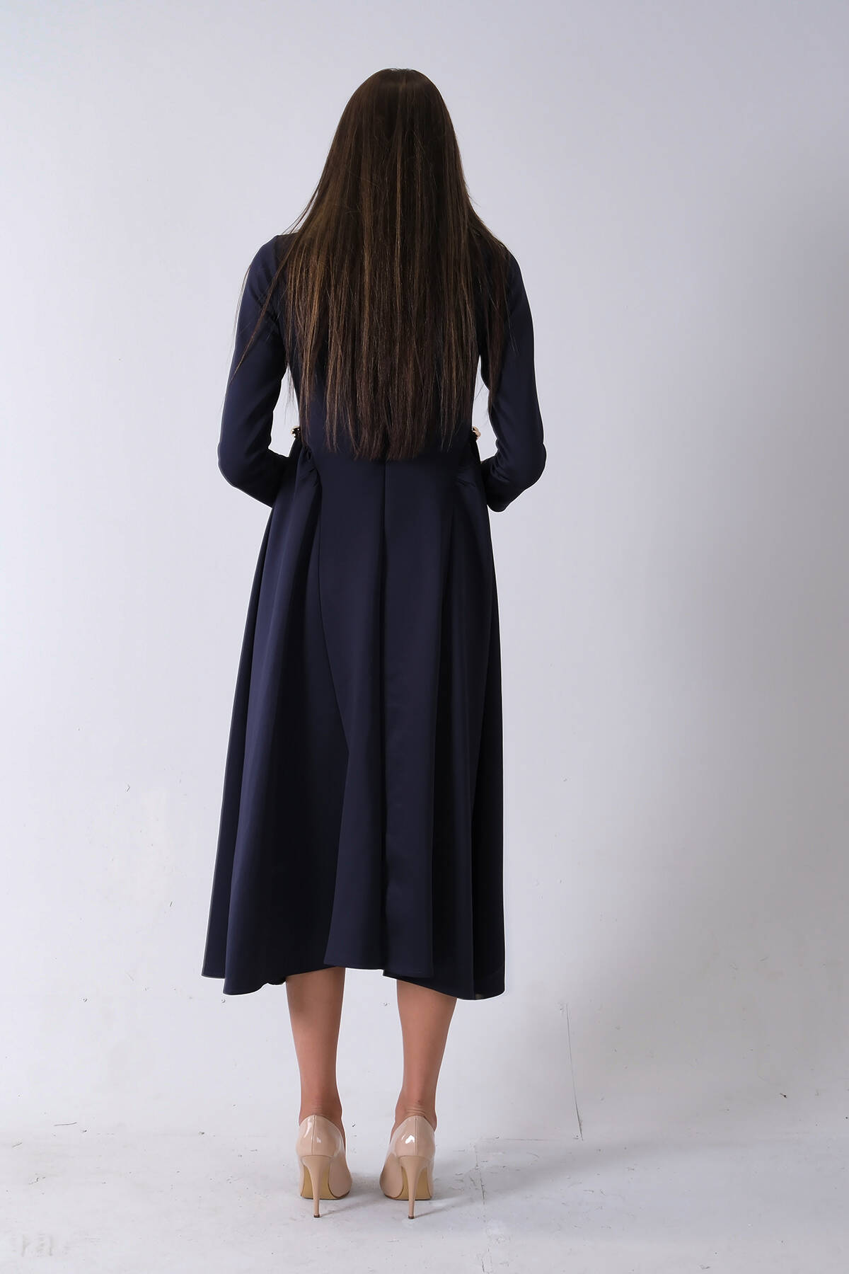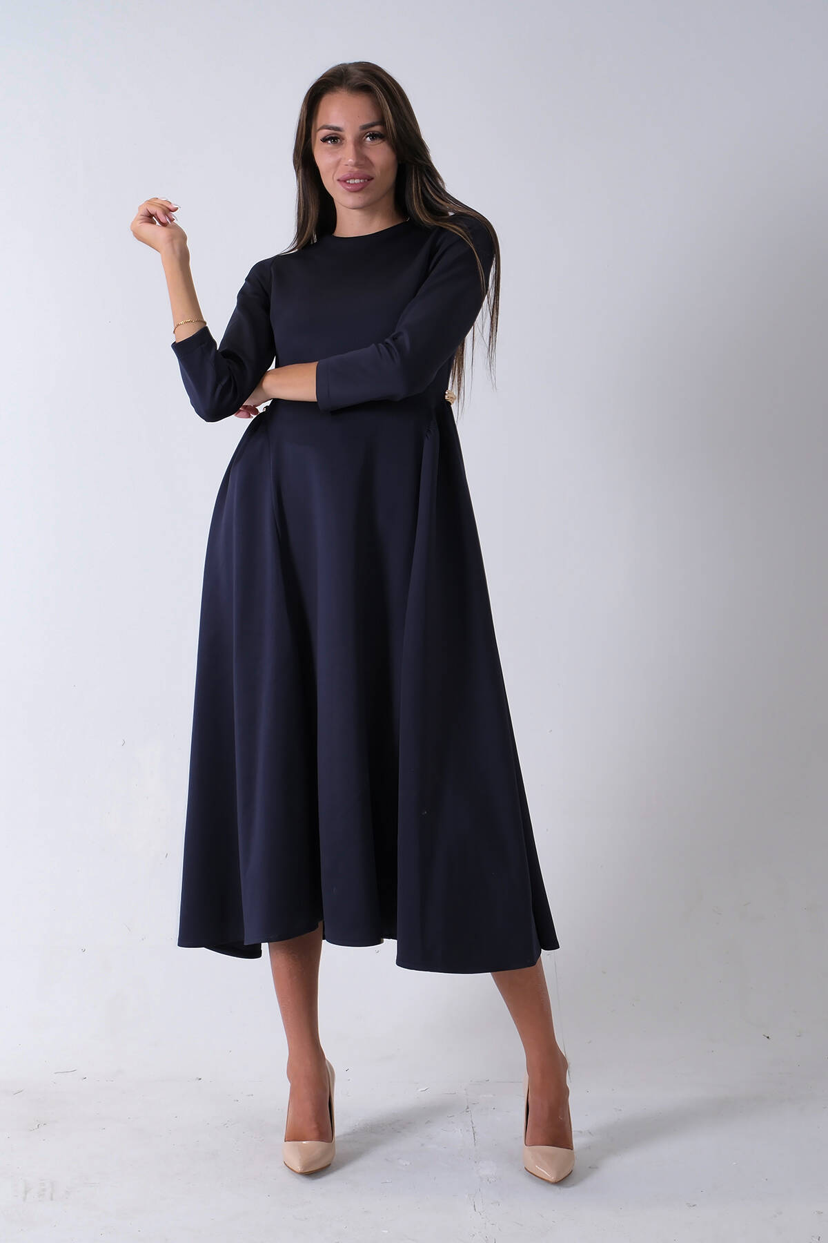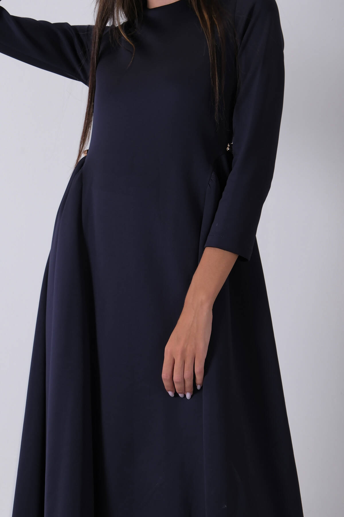 Lacivert Bisiklet Yaka Scuba Tesettür Elbise 4593445.02