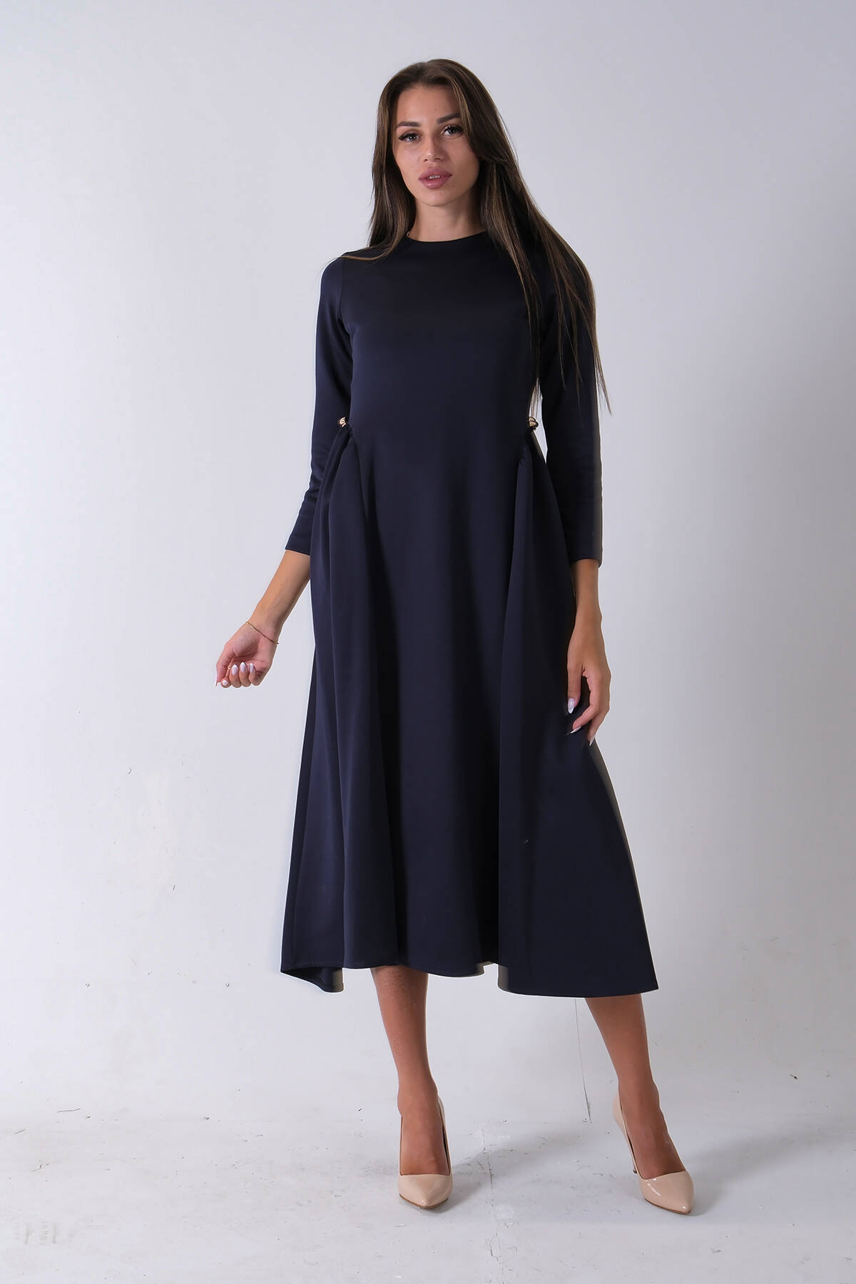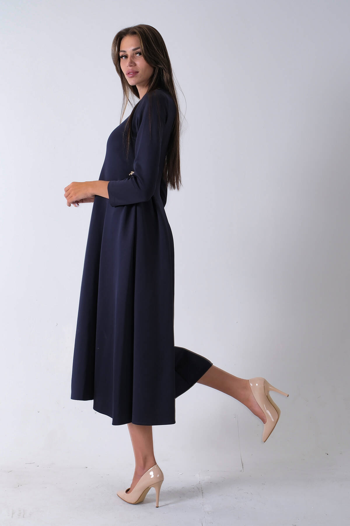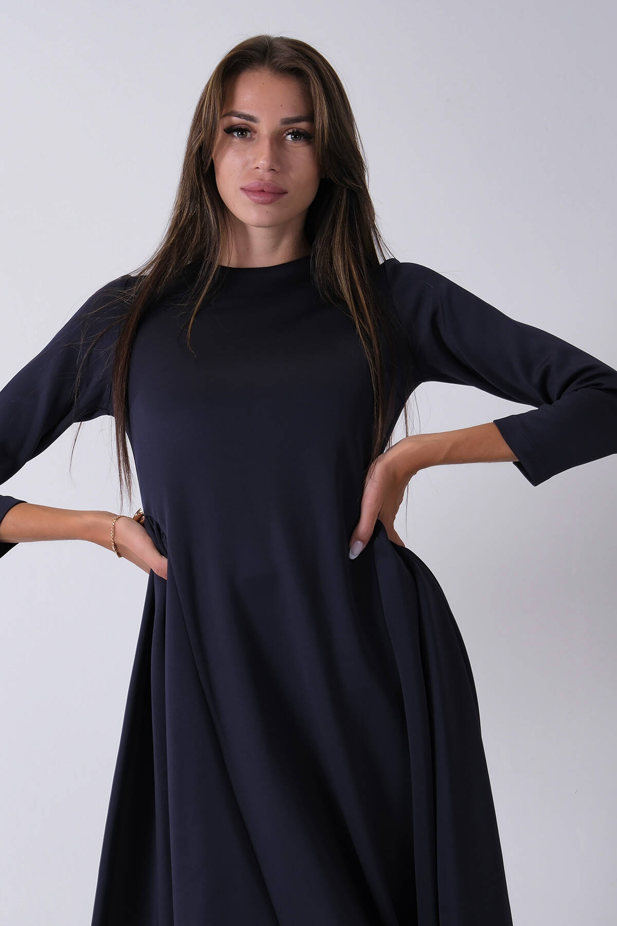 Lacivert Bisiklet Yaka Scuba Tesettür Elbise 4593445.02