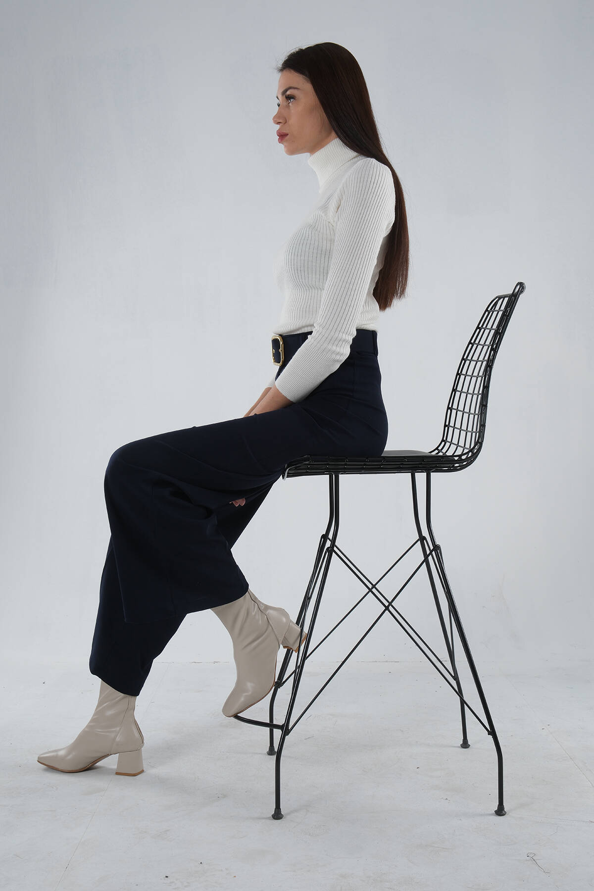 Modelin Ölçüleri : Boy: 1.80 cm / Göğüs: 85 cm / Bel: 69 cm /Basen : 94 cm Mankenin Üzerindeki Ürün M/38 Bedendir %100 Polyester Yüksek Bel Çift Düğmeli Önden Fermuarlı Beli Seyyar Kemerli Bol Paça Pantolon Ürün Boyu : 110 cm Stüdyo Çekimlerinde Renkler Işık Farklılıgından Dolayı Değişiklik Gösterebilir