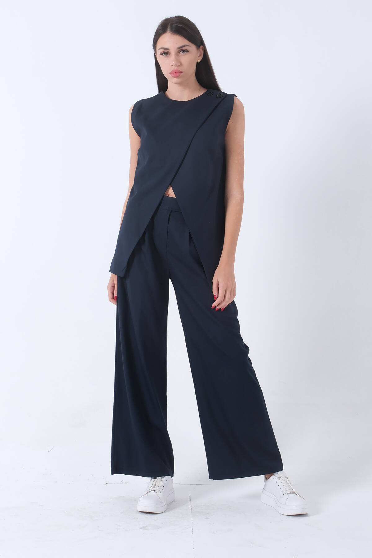 Lacivert Çapraz Düğme Detaylı Yelekli Takım 41680006.02