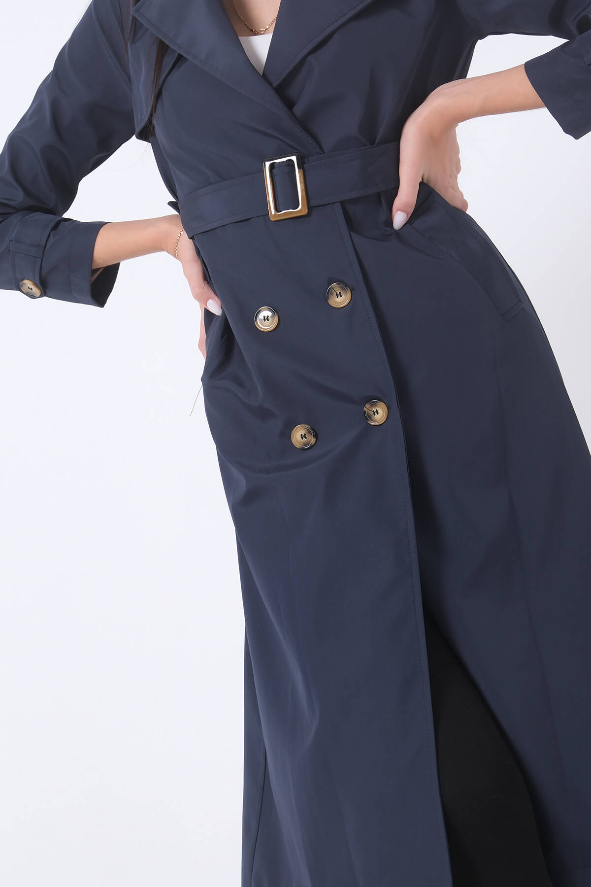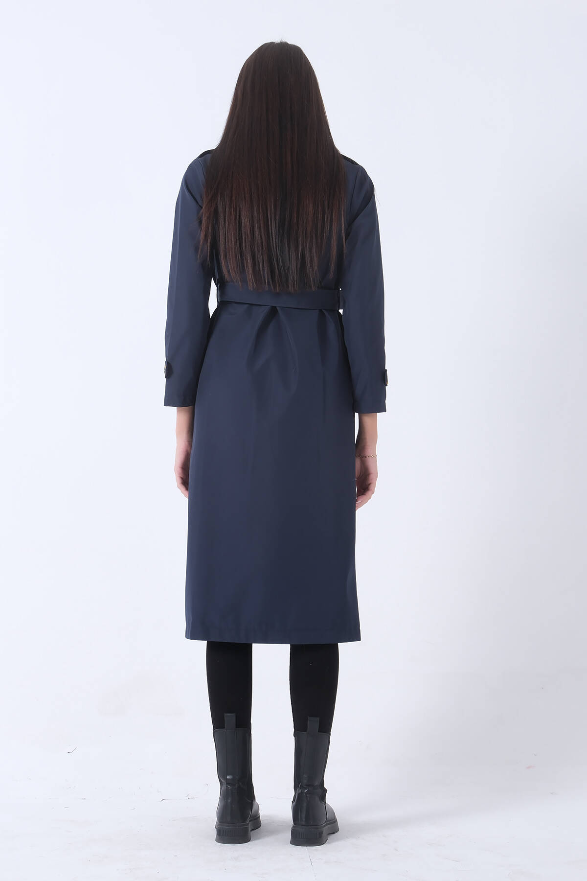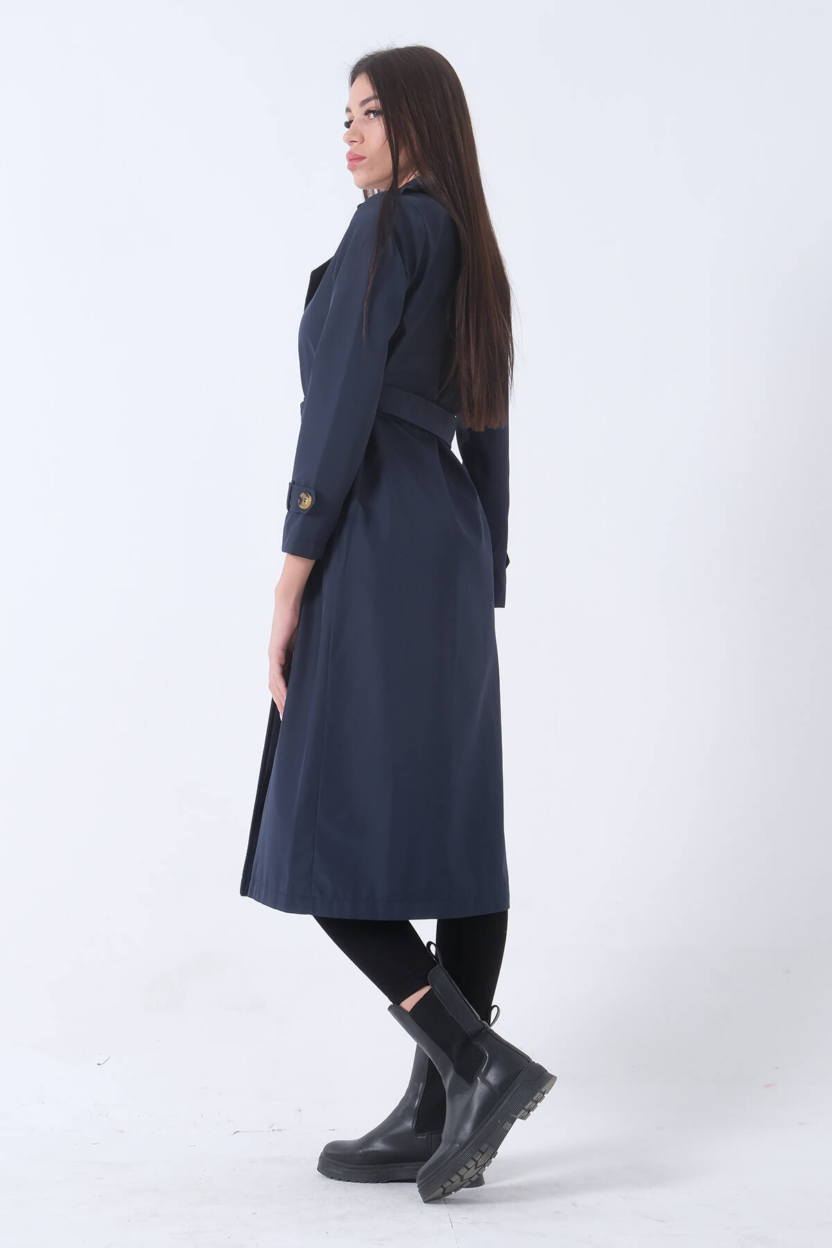 Lacivert Düğme Kapamalı Kuşaklı Yandan Cepli Trenç 422235.02