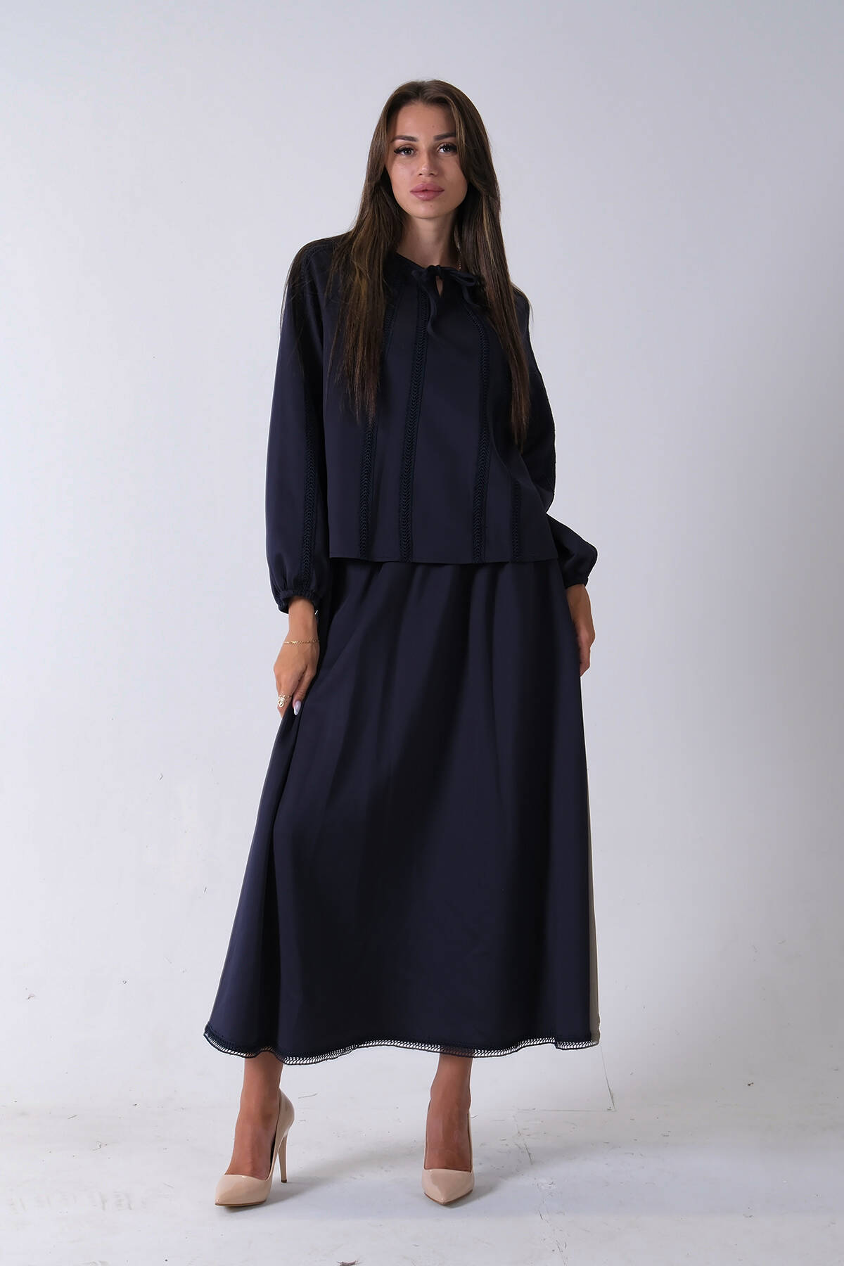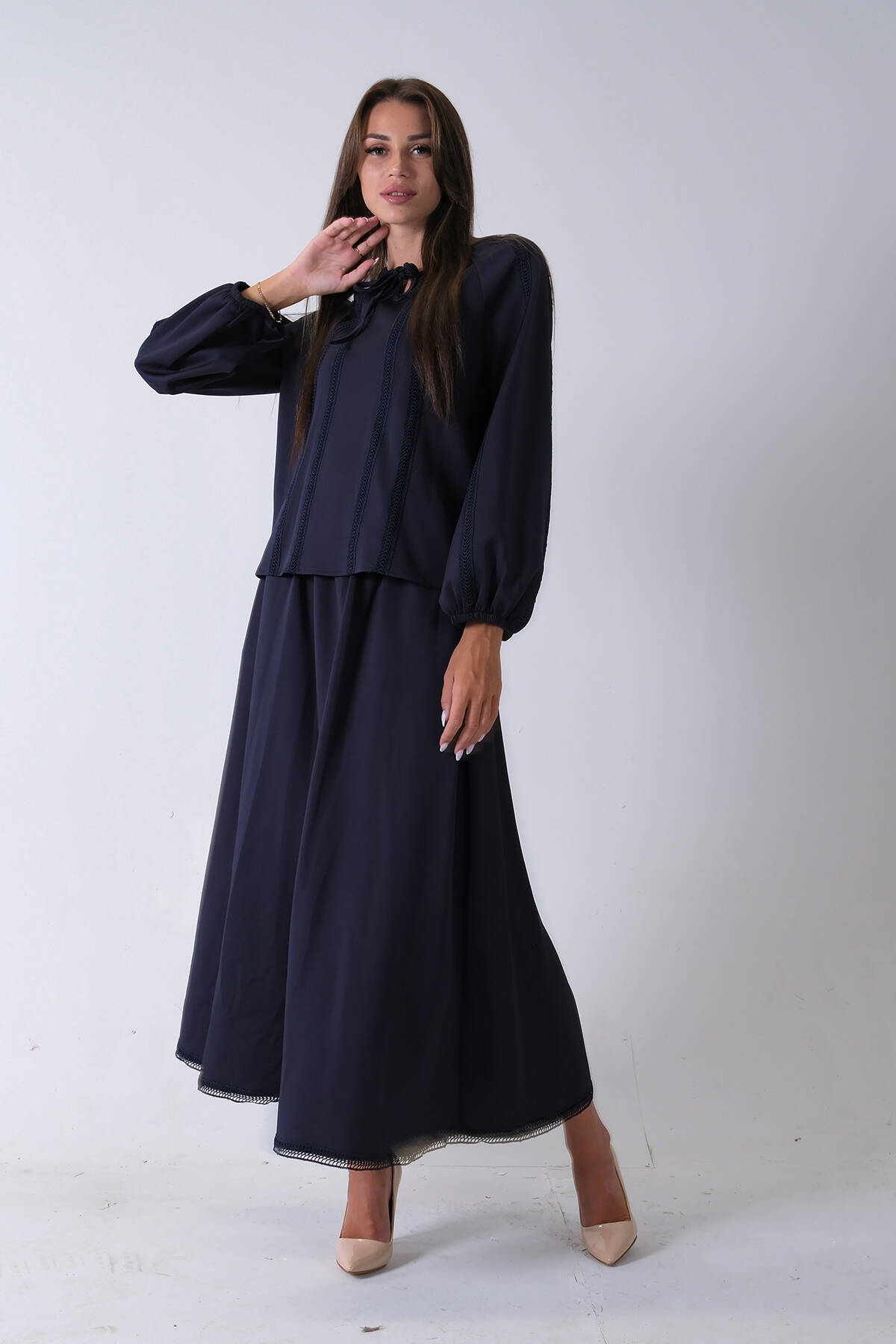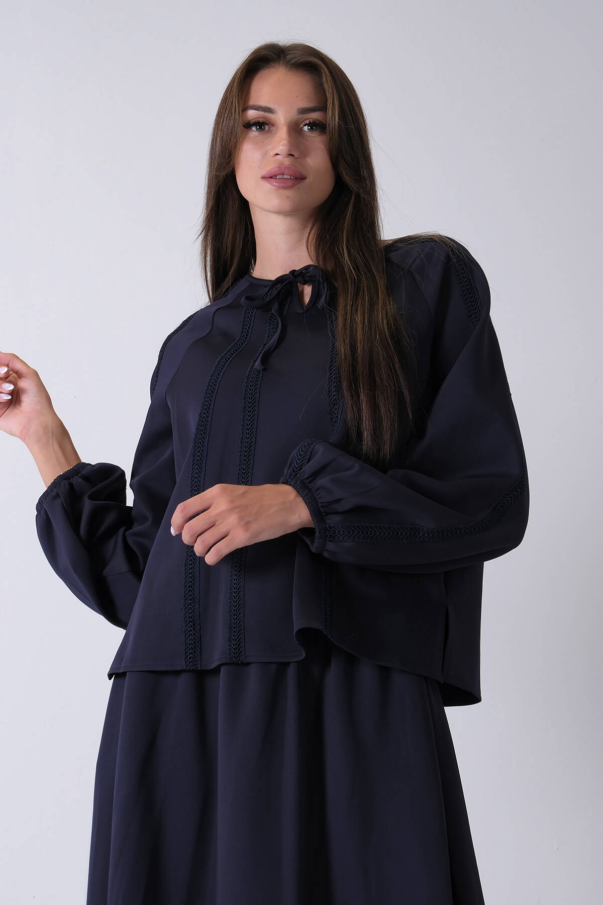 Lacivert Etek Ucu Dantel Detaylı Yaka Bağlamalı 2'li Takım 4592262.02