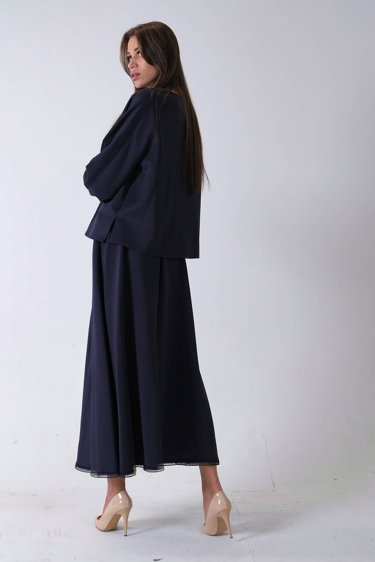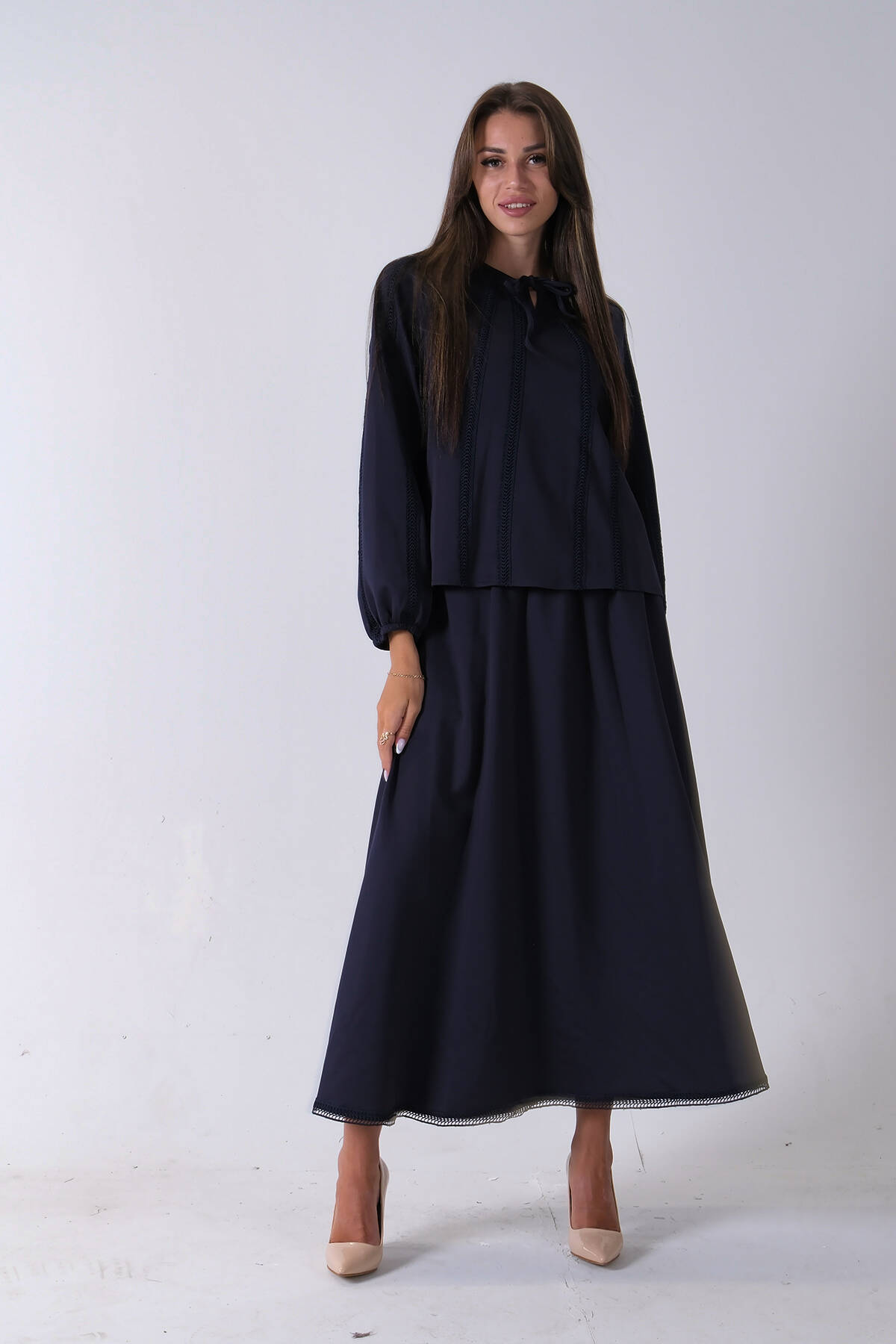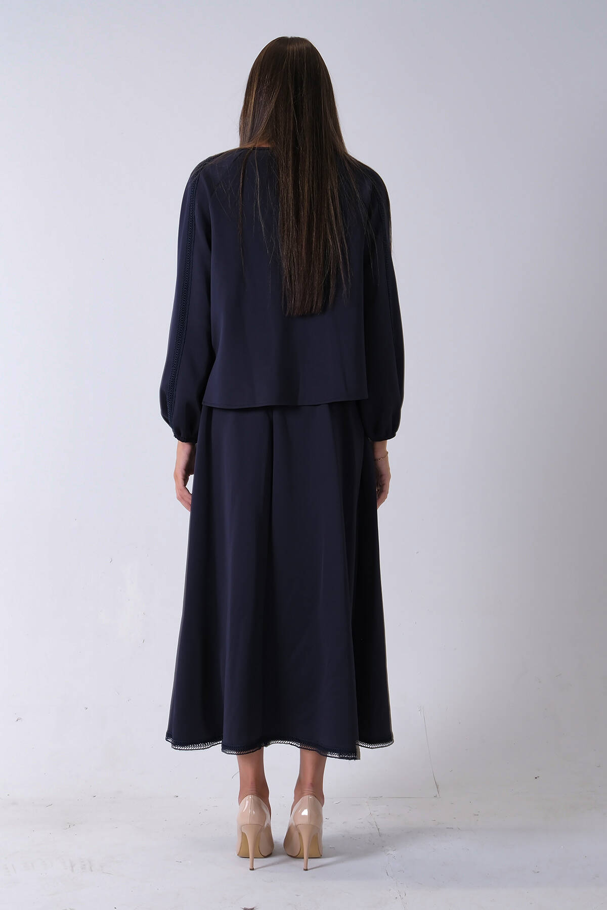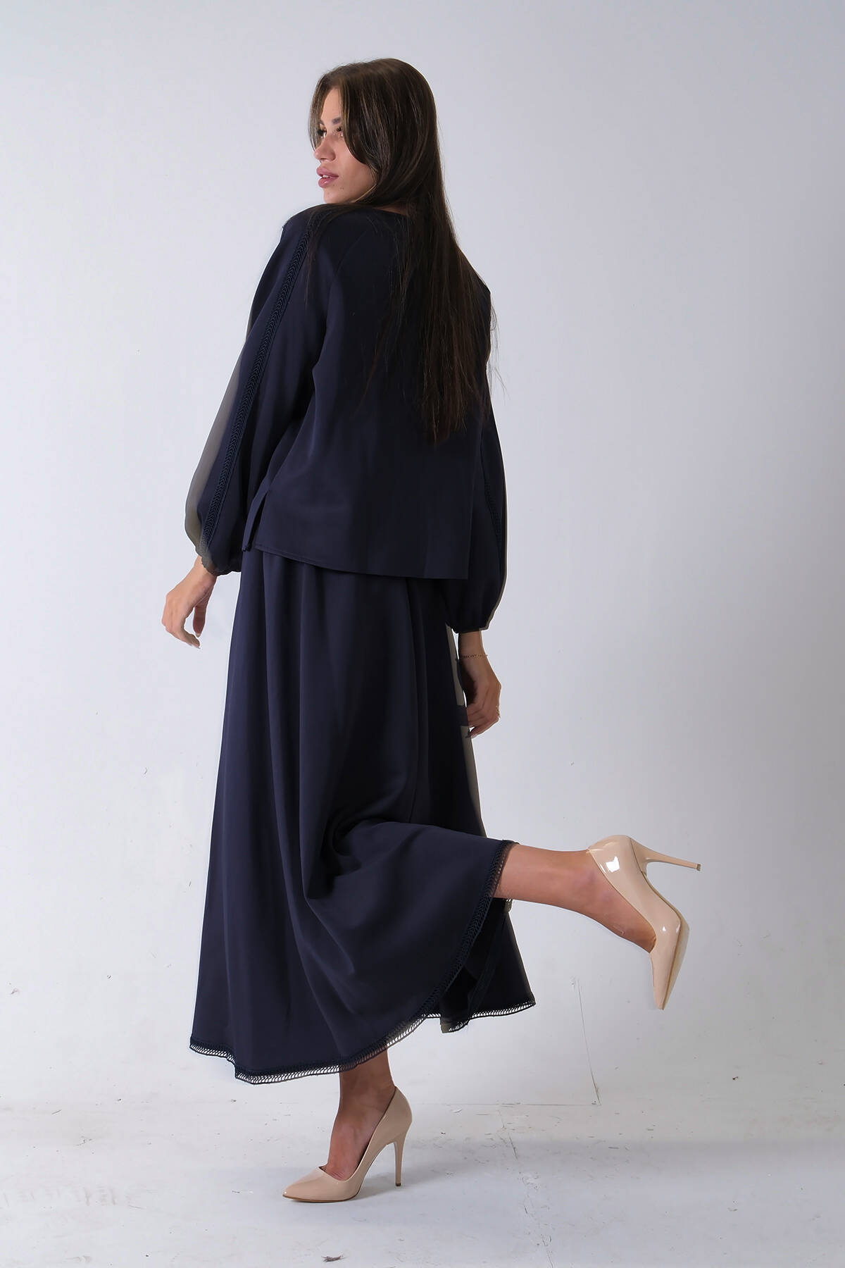 Lacivert Etek Ucu Dantel Detaylı Yaka Bağlamalı 2'li Takım 4592262.02
