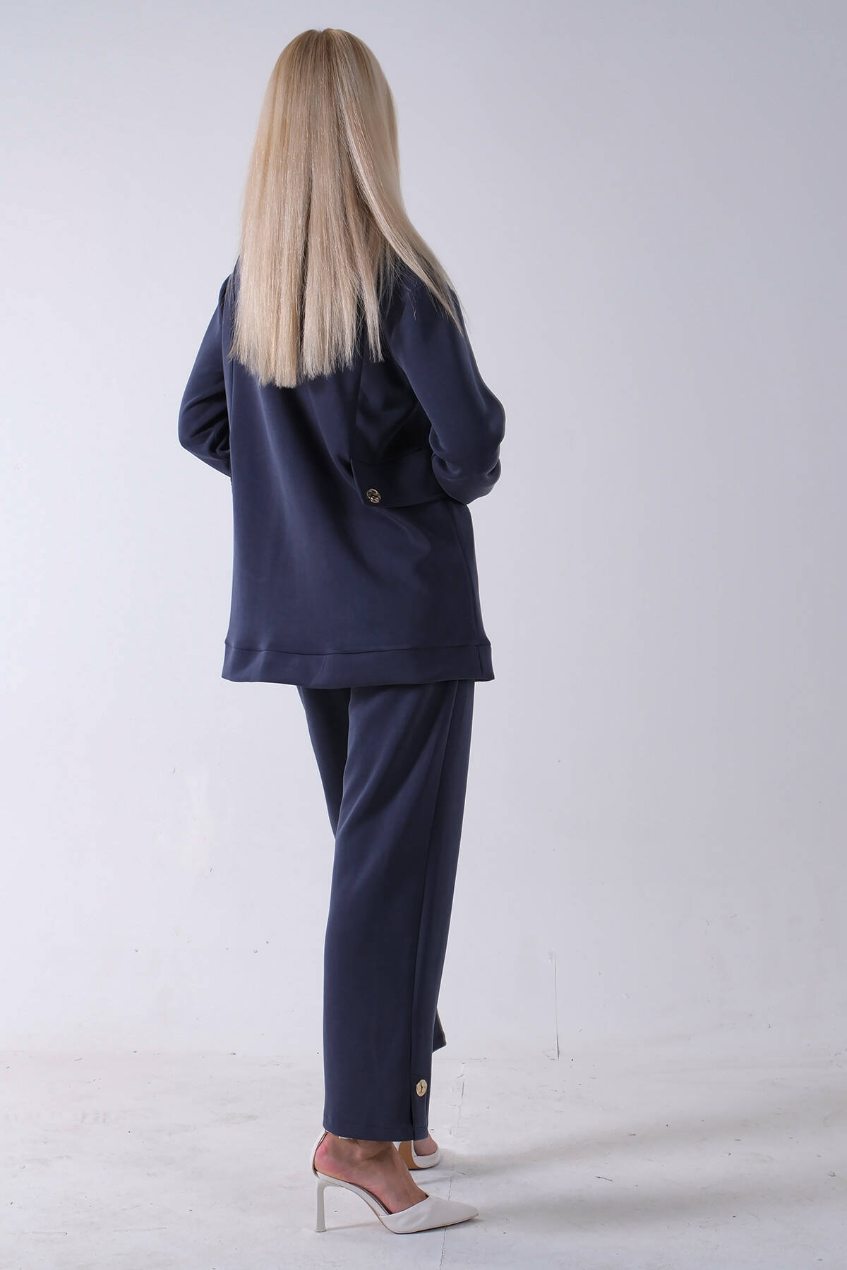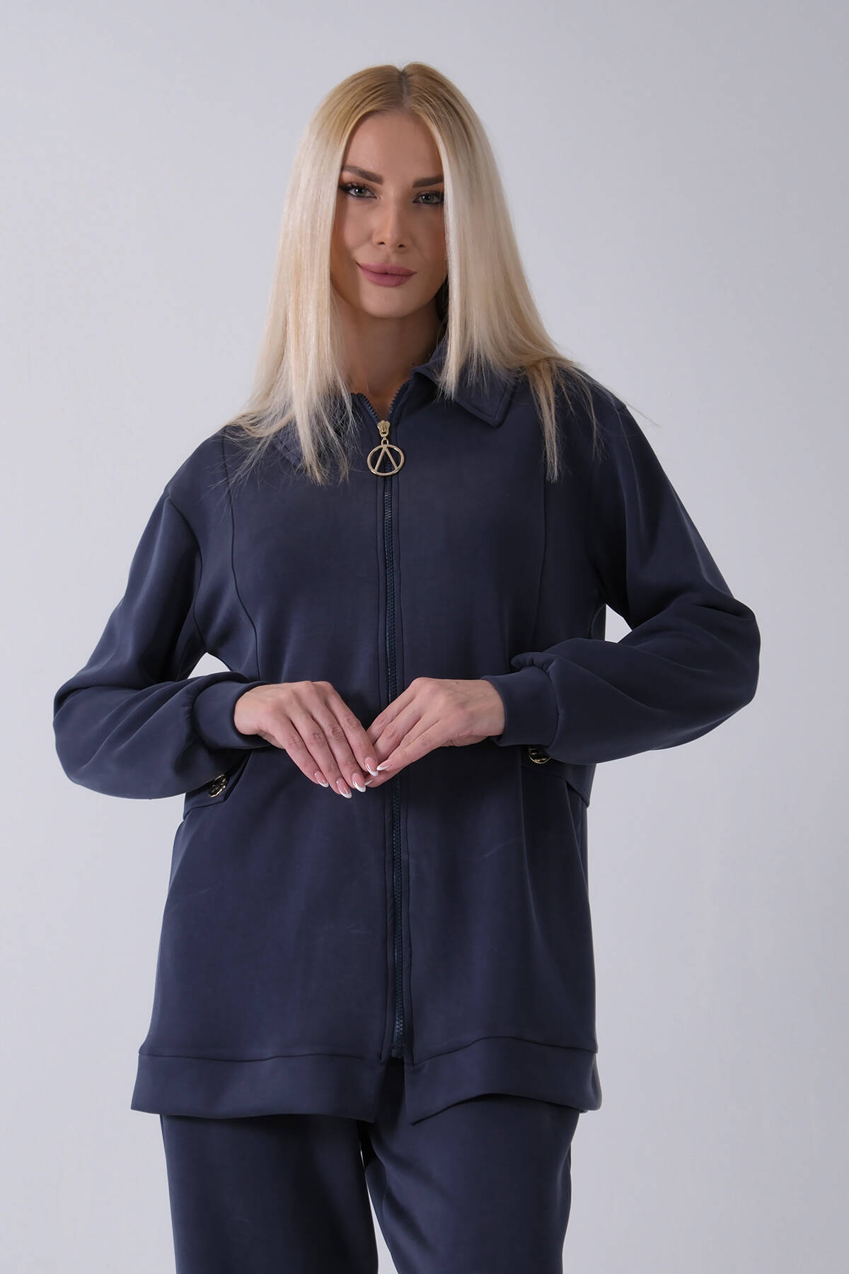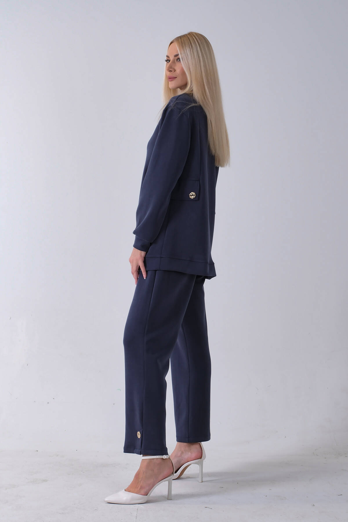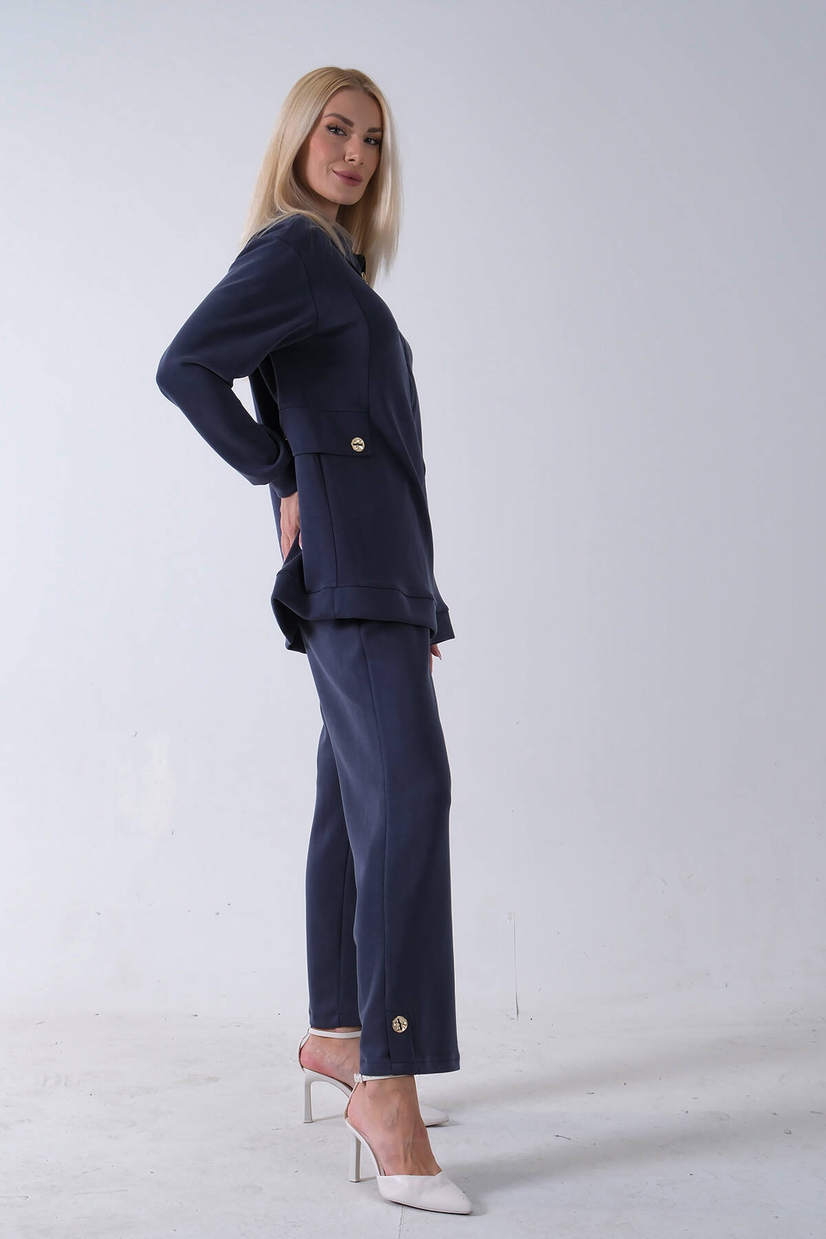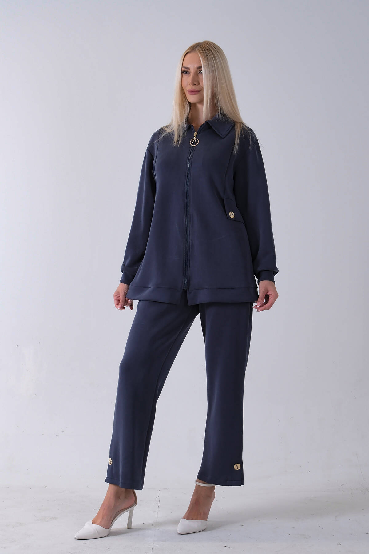 Lacivert Fermuar Kapamalı 2 Cep Görünüm Detaylı Sweat Pantolonlu Takım 4577266.02