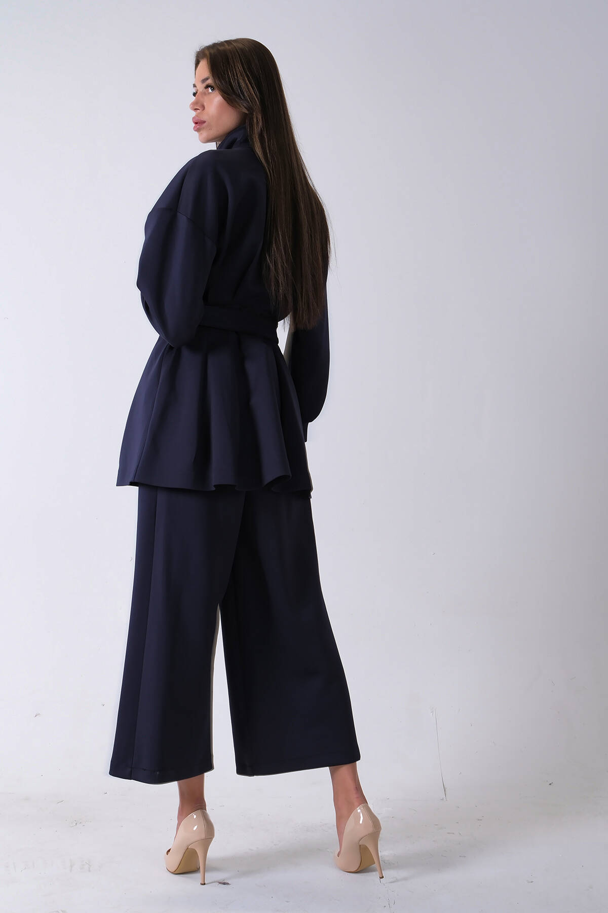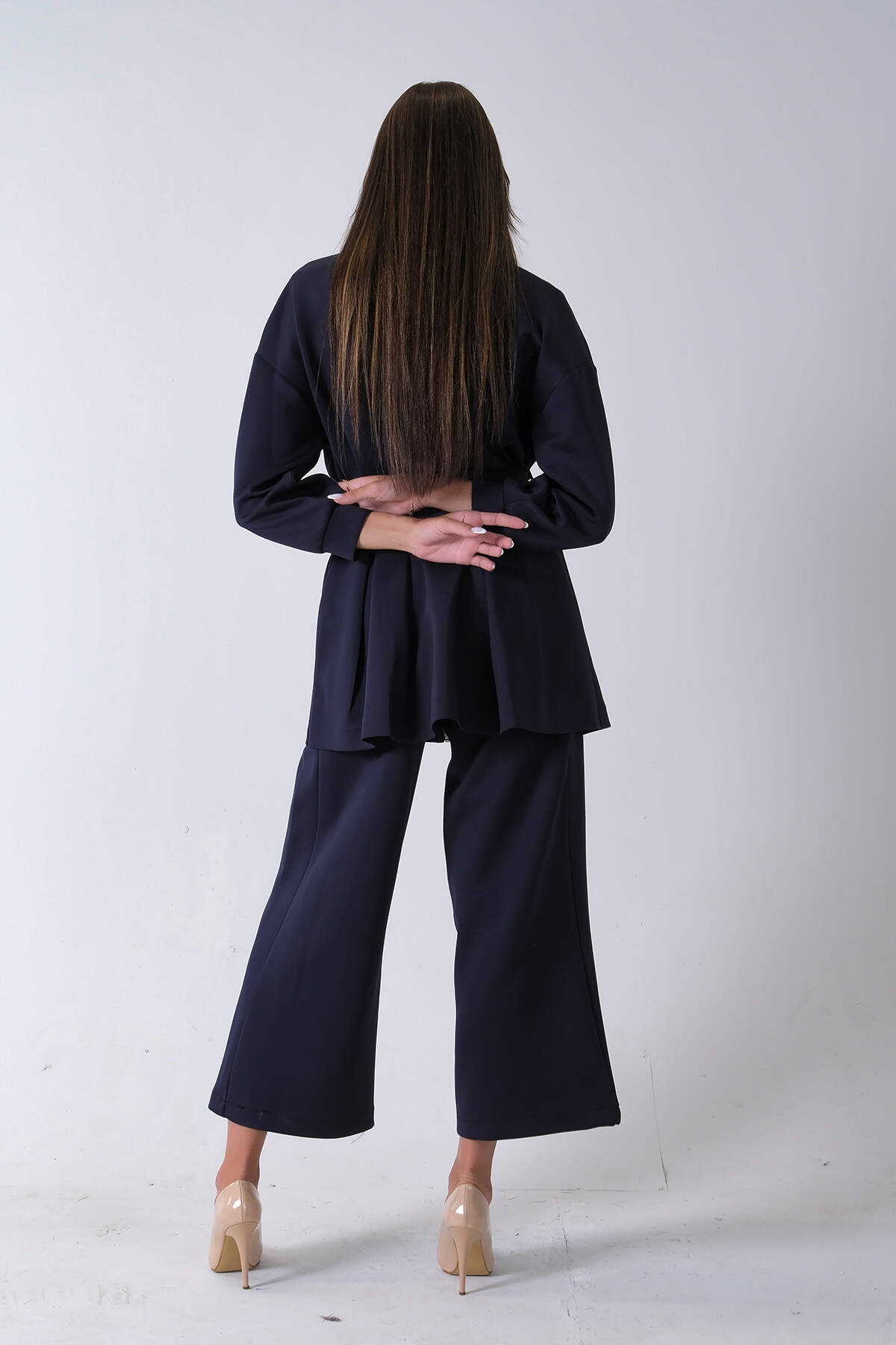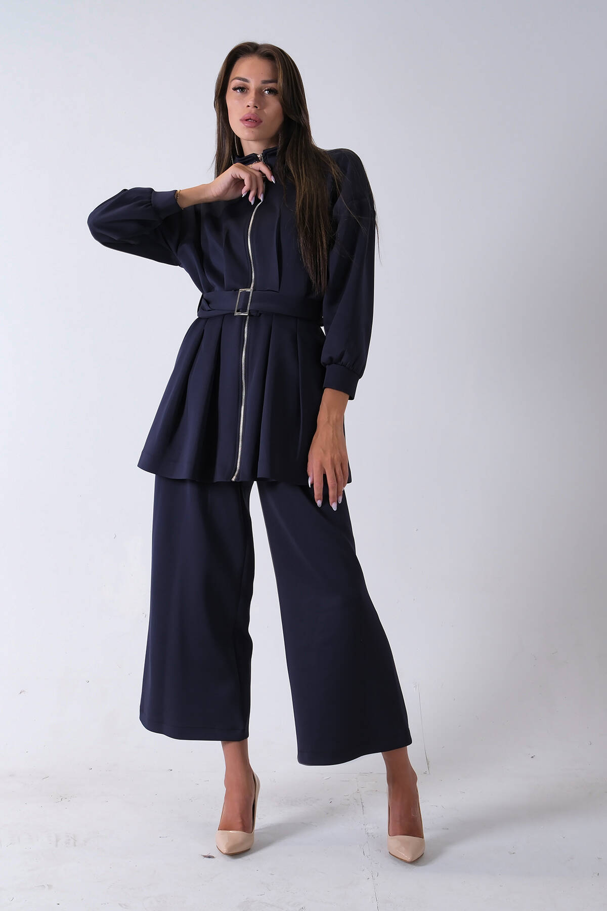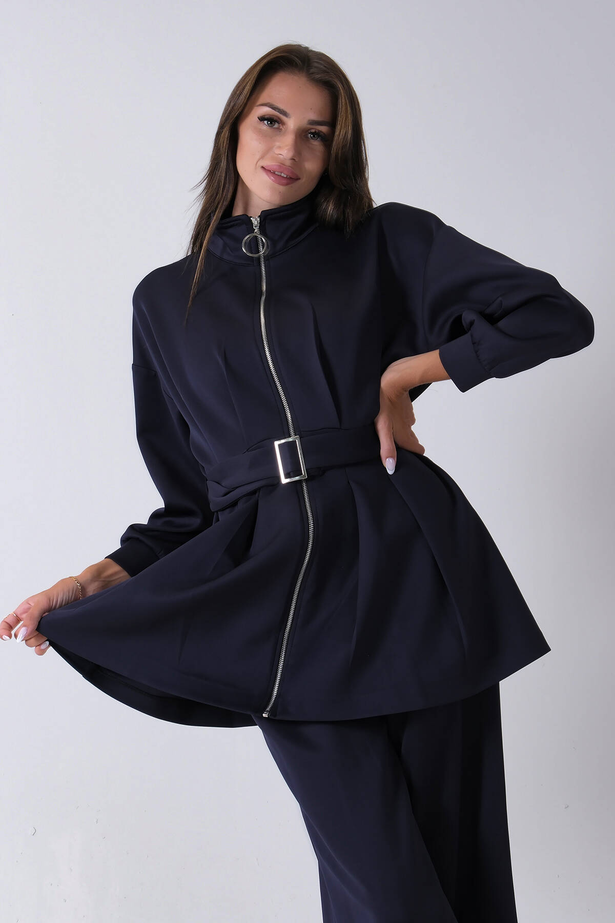 Lacivert Fermuar Kapamalı Beli Kemerli Pantolonlu Scuba Takım 4592264.02