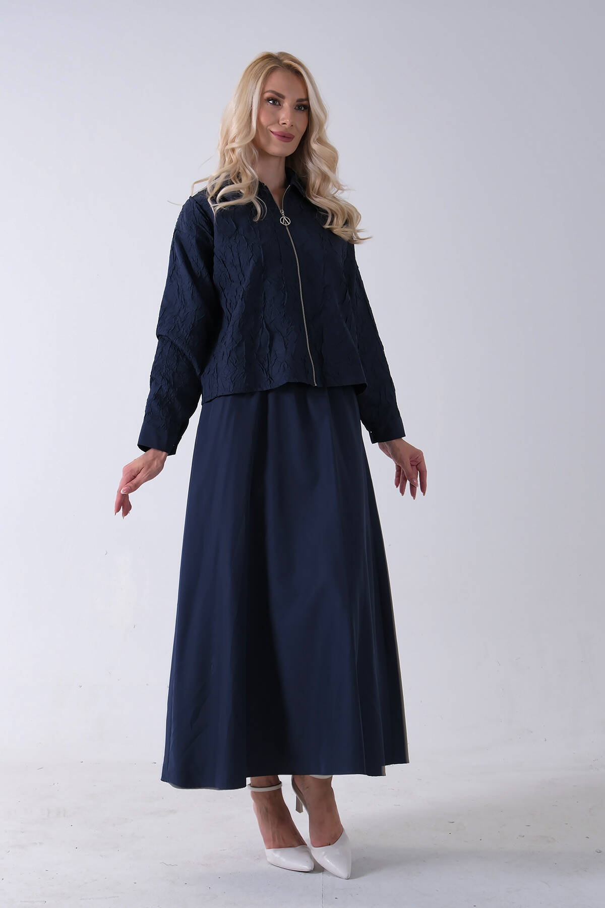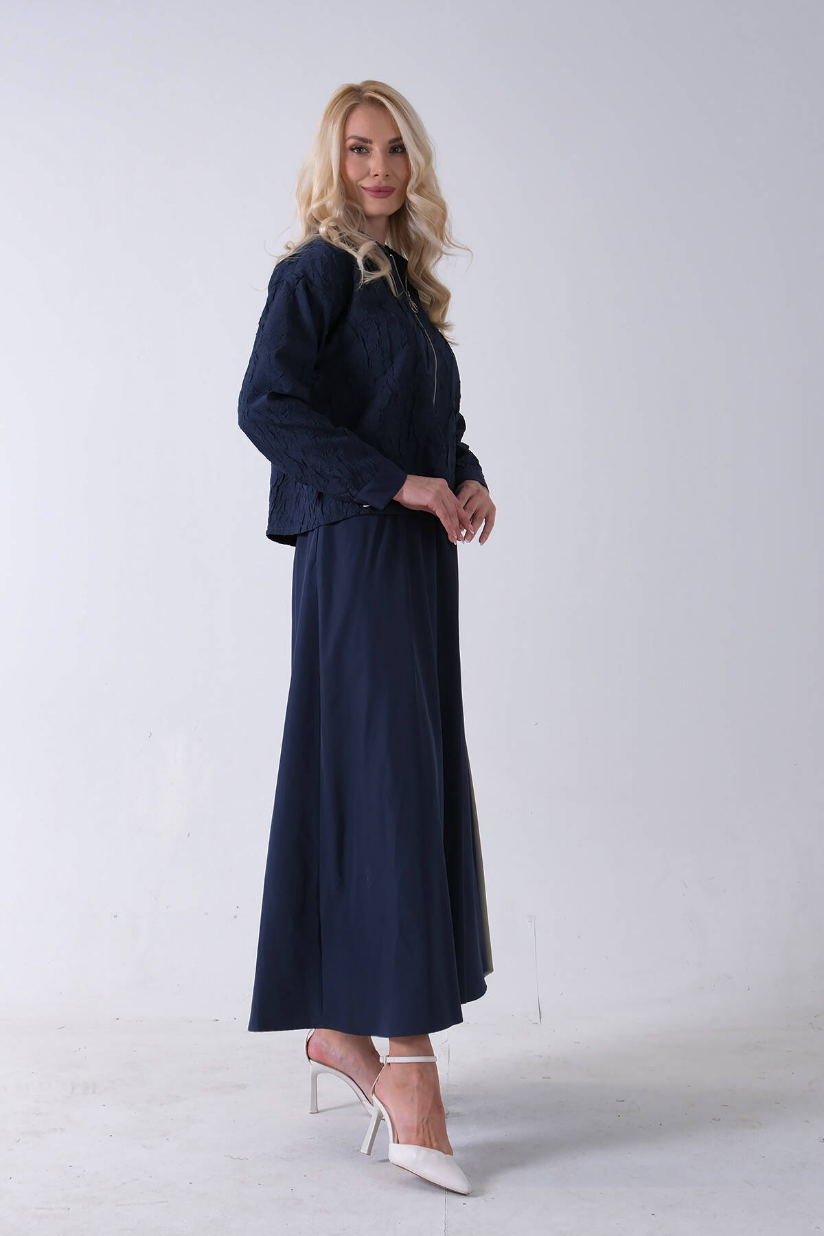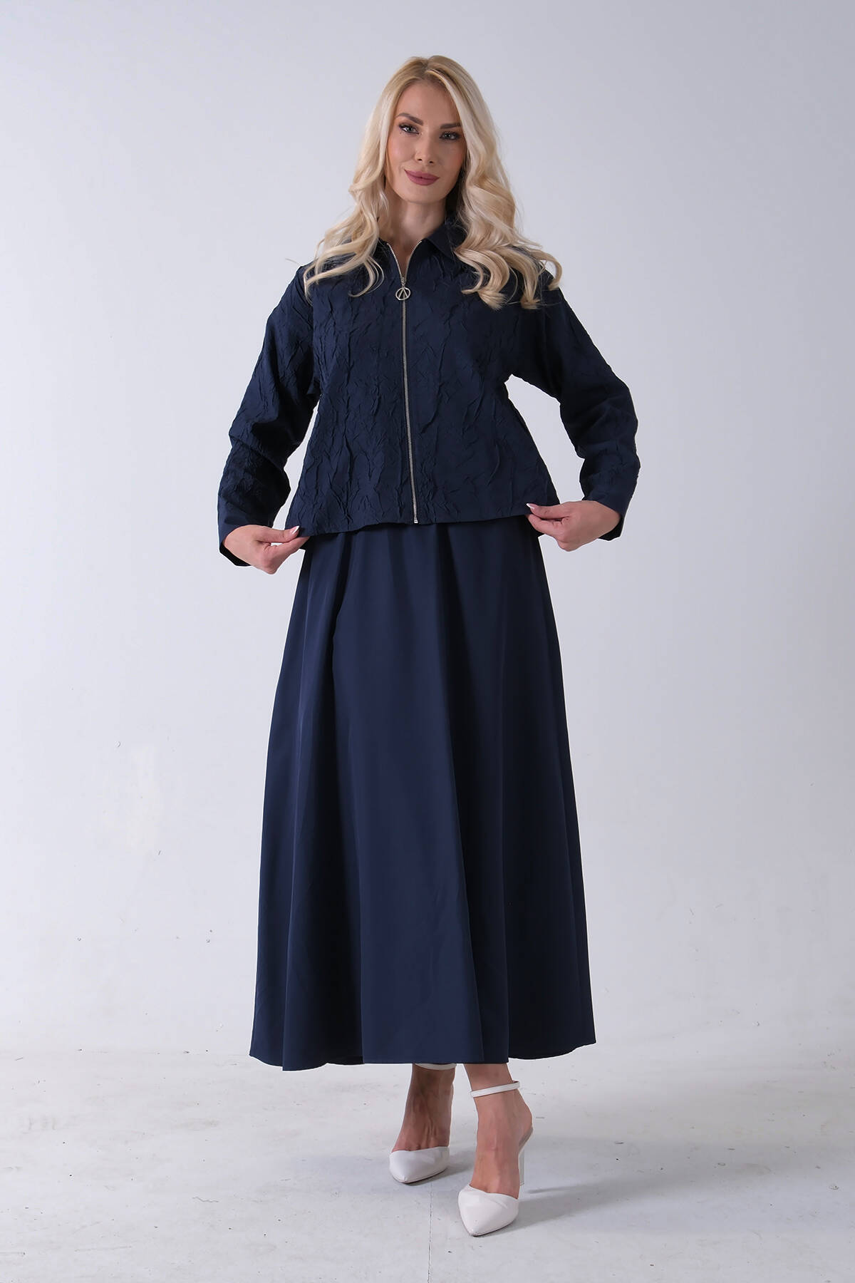 Lacivert Fermuar Kapamalı Ceket Üzeri Desenli Etekli Takım 4577259.02