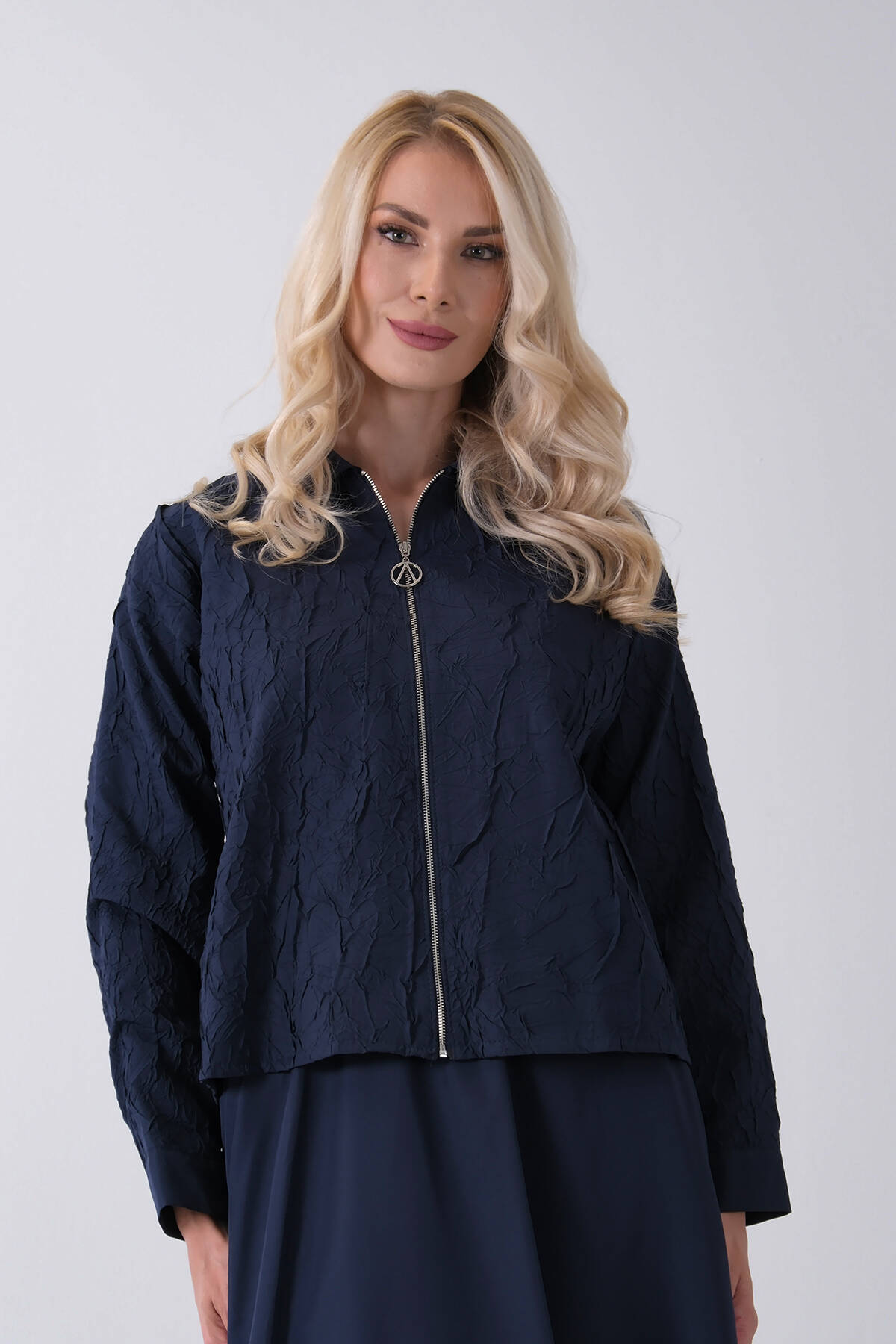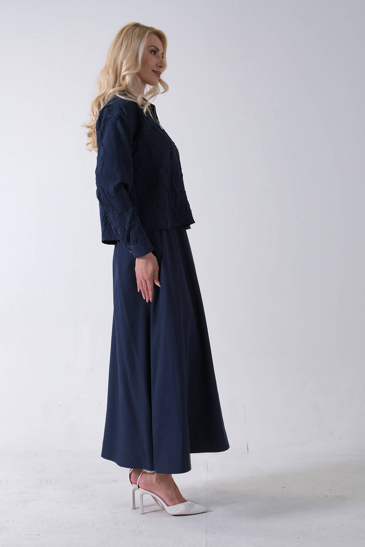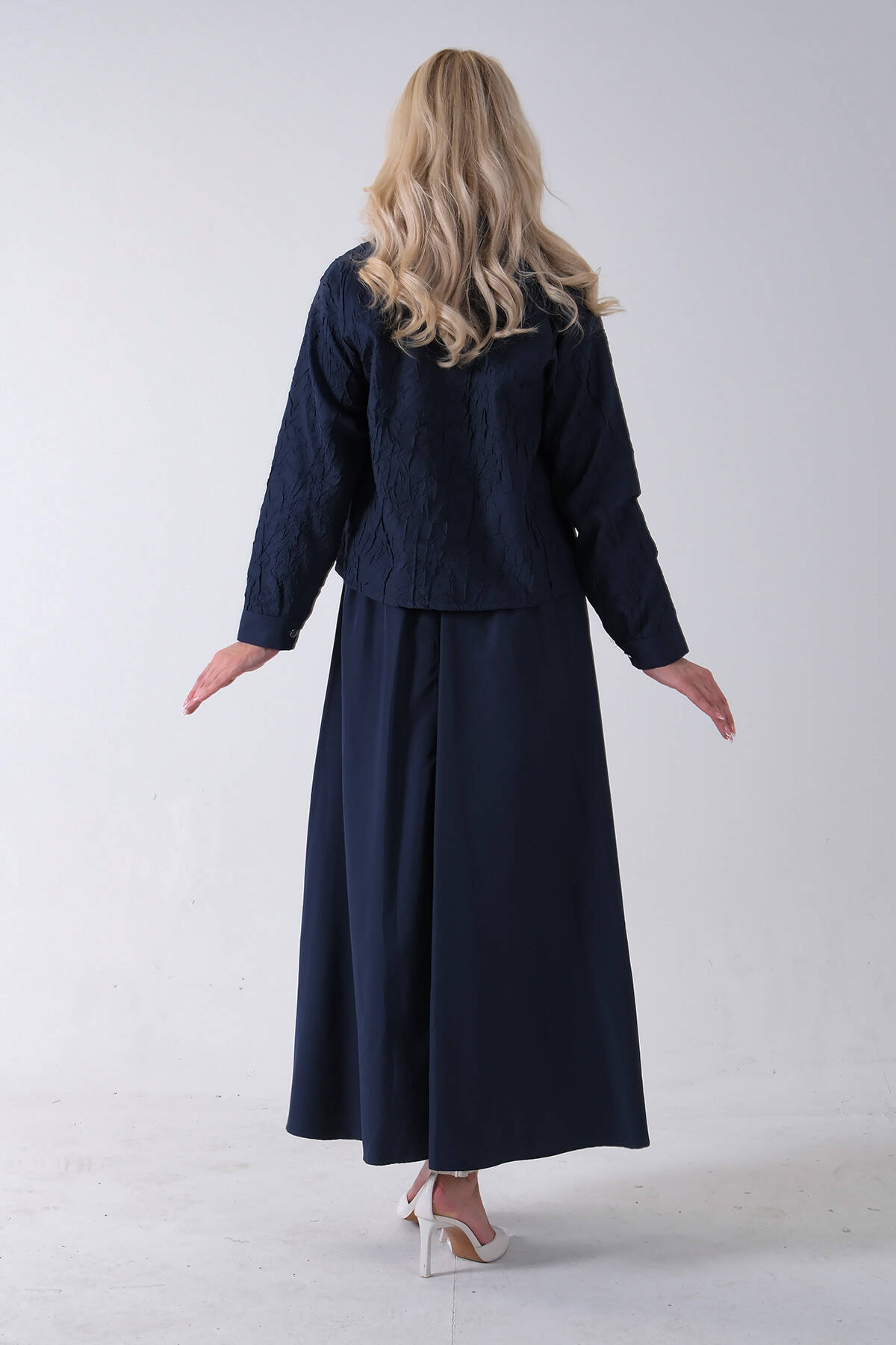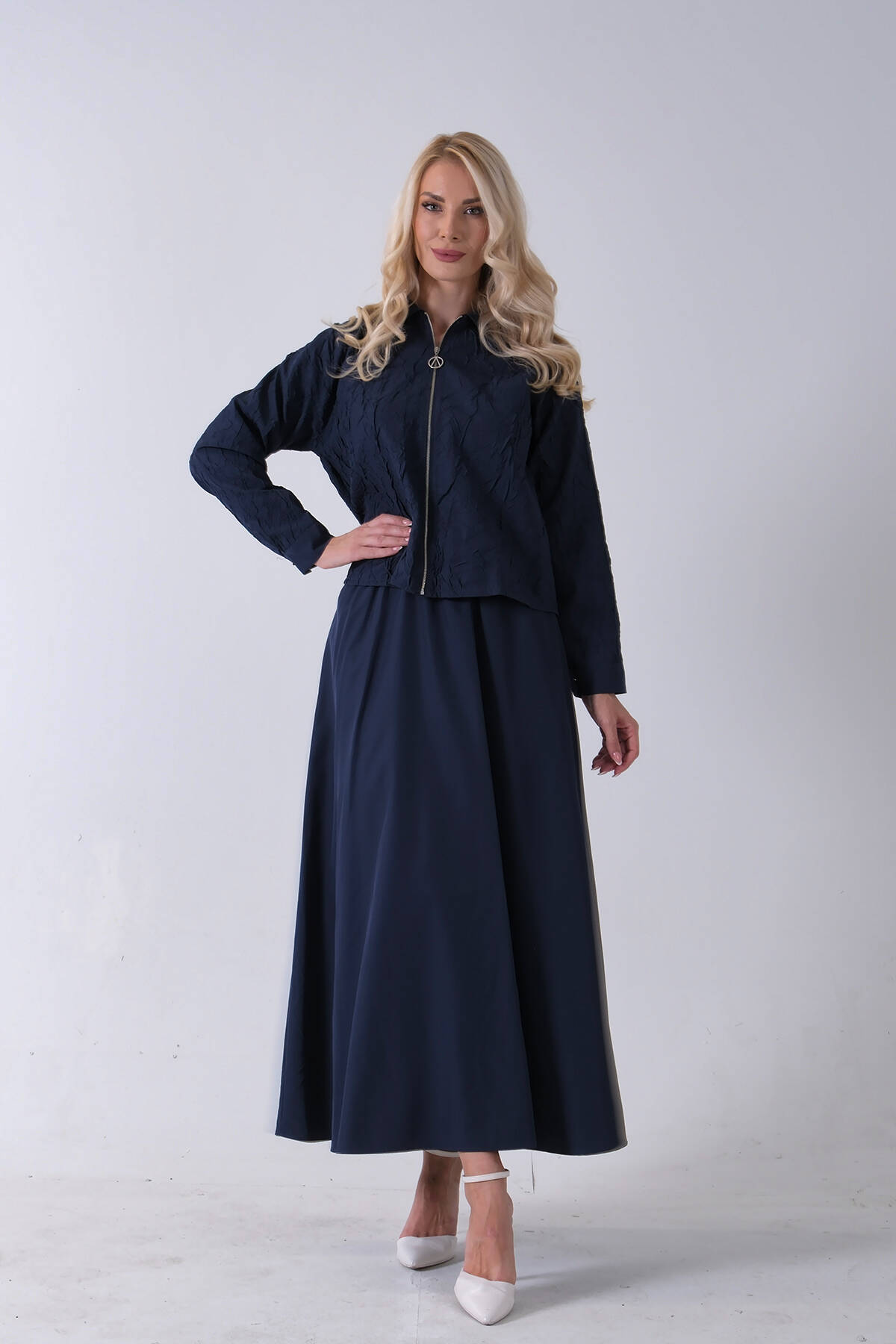 Lacivert Fermuar Kapamalı Ceket Üzeri Desenli Etekli Takım 4577259.02