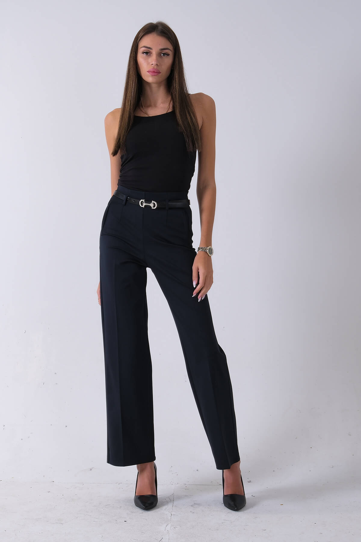 Lacivert İnce Kemerli Cepsiz Bol Paça Uzun Pantolon 03030306.02